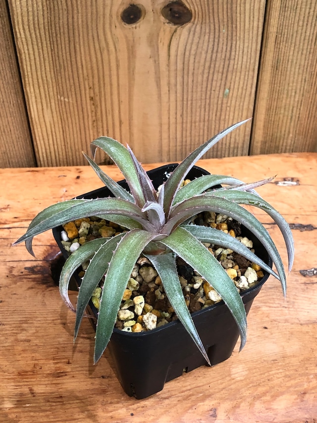ペルー原産の高山系の植物で、ディッキアによく似ていますが本種は花が一度しか咲かず、咲き終わると子株を残して親は枯れて世代交代します。 性質もディッキアとは違い、涼しい環境を好みますので、夏場は明るい日陰等で涼しく過ごさせます。 ・高さ 約11.5㎝ (植物本体 約6㎝) ・幅 約10.5㎝ ・成長期は春・秋で屋外では直射日光に当てますが夏場は風通しを意識し、50%遮光や明るい日陰か半日陰等で用土が乾ききったら水遣りします。 ・屋内では窓際等の陽当たりの良い場所に置くか、植物育成ライト下で用土が乾ききったら水遣りします。 ・冬の休眠期は屋内に移動させ窓際等の陽当たりの良い場所に置くか、植物育成ライト下で用土が乾ききってから数日置いて水遣りします。 ⚫︎冬の窓際は朝・夜は冷え込みますので朝・夜は暖かい場所に移動させます。 ⚫︎休眠期に気温の低い場所や陽当たりのあまり良くない場所に置く場合は根を湿らせる程度の水遣りをします。