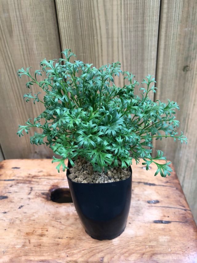 南アフリカ原産の冬型塊根植物で赤茶色の木の様な塊根部から深い切れ込みのあるモフモフの柔らかい葉を展開します。 葉は茎の部分から繊毛が生えており光の下では発光している様にも見える美しい品種です。 ・高さ 約19㎝ (植物本体 約12.5㎝) ・幅 約19㎝ (塊根部直径 約3㎝) ・成長期は秋〜春で屋外では直射日光に当てながら用土が乾ききったら水遣りします。 ハウスや加温出来る設備がある場合は屋外で越冬出来ますが、無い場合は屋内の窓際等の陽当たりの良い場所に置くか、植物育成ライト下で用土が乾ききったら水遣りします。 ・夏の休眠期は屋外では50%遮光下や半日陰・明るい日陰等で月1回〜2回を目安に根を湿らせる程度の水遣りをします。 屋内では窓際のレースのカーテン越し等や植物育成ライト下で月1回〜2回を目安に根を湿らせる程度の水遣りをします。 ⚫︎冬の窓際は朝・夜は冷え込みますので朝・夜は暖かい場所に移動させます。 ⚫︎冬型ですが霜・雪・寒風に長時間晒される等はNGですので、環境が整わない限りは屋外で越冬出来る訳ではありません。