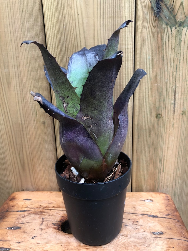 ブラジル原産のタンクブロメリアでビルベルギアに比べて太短く葉幅が広い品種が多い印象です。 陽当たりの良い場所では通常のレオポルドホルスティーよりも黒く発色します。 筒状になった葉の間に水を貯めて管理します。 ・高さ 約27.5㎝ (植物本体 約20㎝) ・幅 約13㎝ ・成長期は春〜秋で屋外では直射日光に当てますが夏場は葉焼けしますので30%〜50%程度の遮光や半日陰等で週3回を目安に水遣りします。 ・屋内では窓際等の陽当たりの良い場所に置くか、植物育成ライト下で週2回〜3回を目安に水遣りします。 ・冬の休眠期は屋内に移動させ窓際等の陽当たりの良い場所に置くか、植物育成ライト下で週1回を目安に水遣りします。 ⚫︎冬の窓際は朝・夜は冷え込みますので朝・夜は暖かい場所に移動させます。 ⚫︎冬場に陽当たりのあまり良くない場所や気温の低い場所に置く場合は水遣り後には葉の間に貯まった水は抜いておき乾燥気味に管理します。