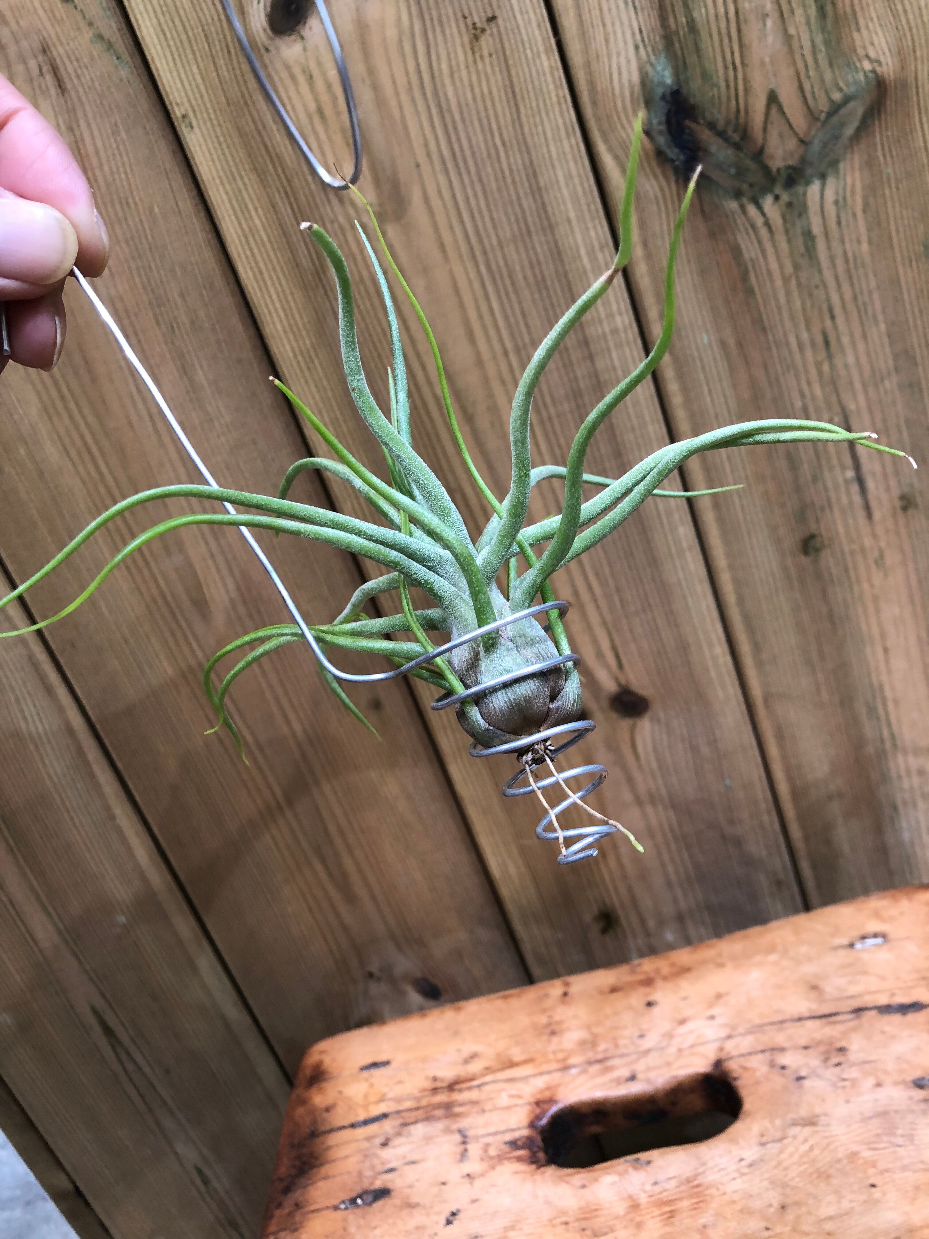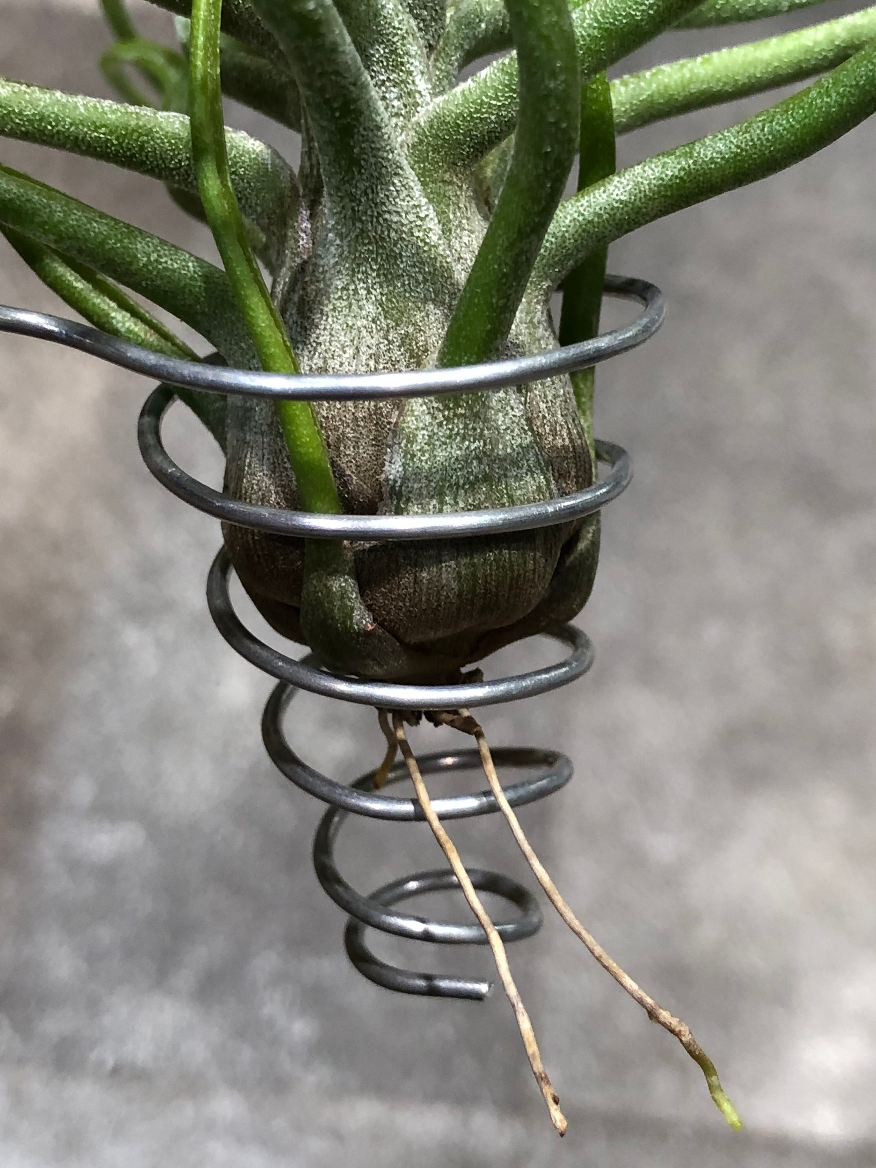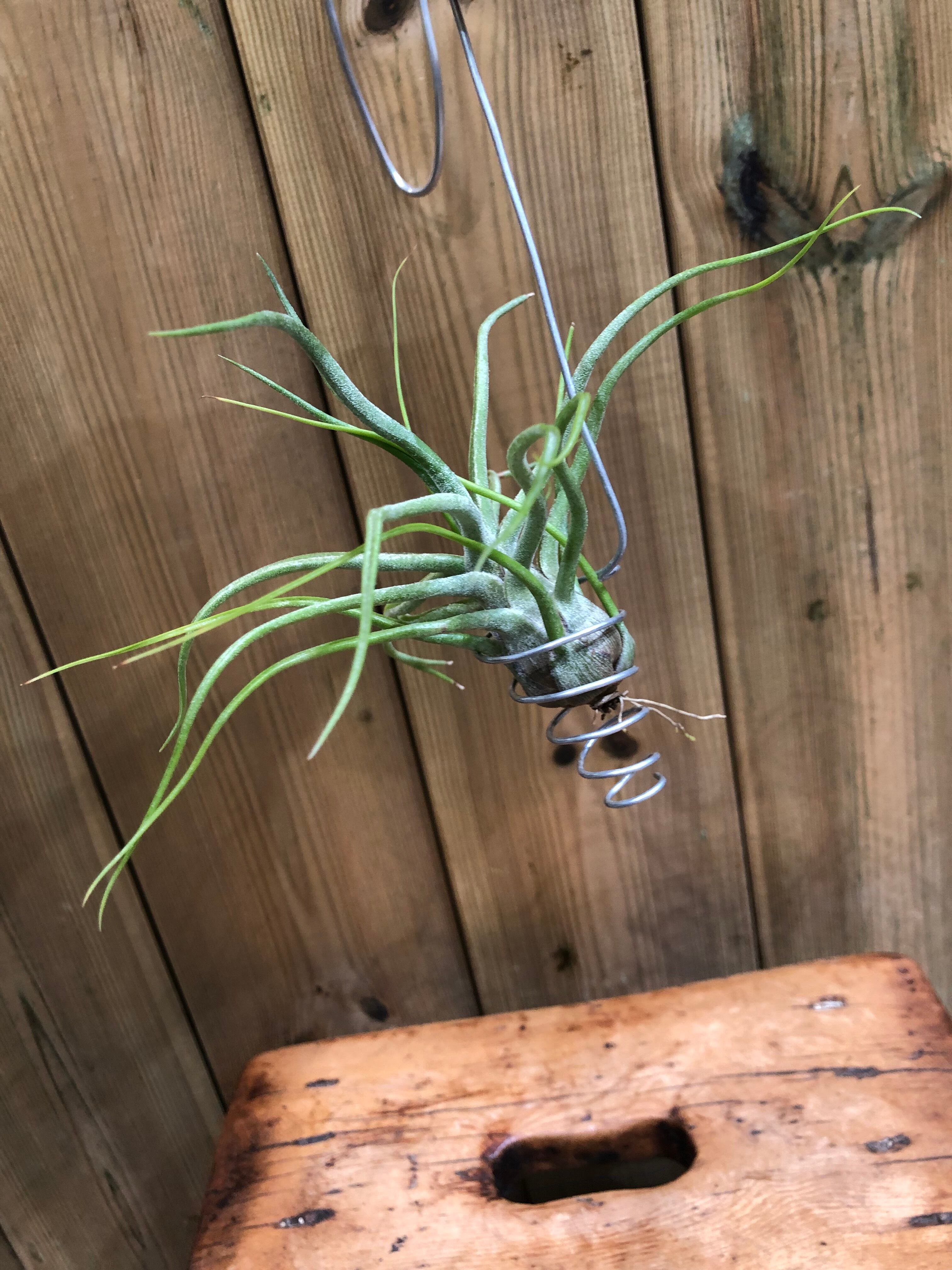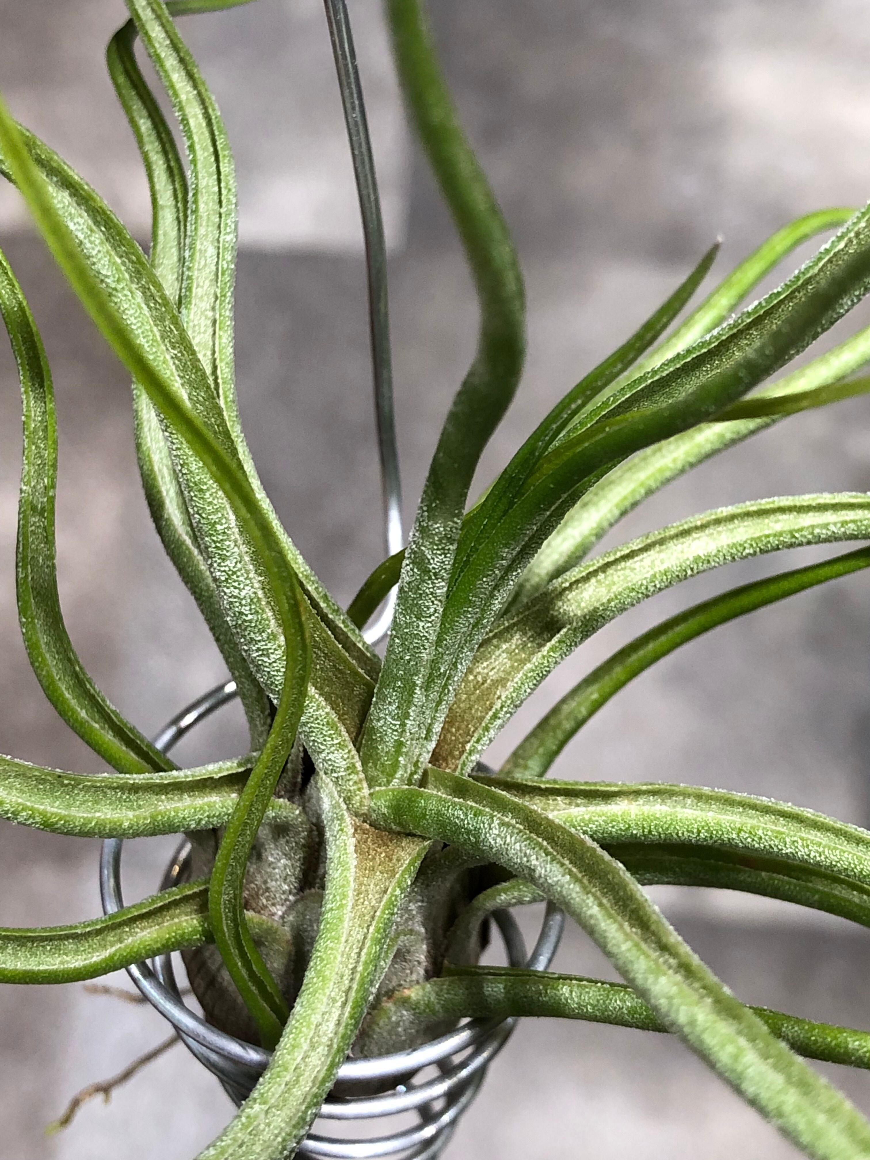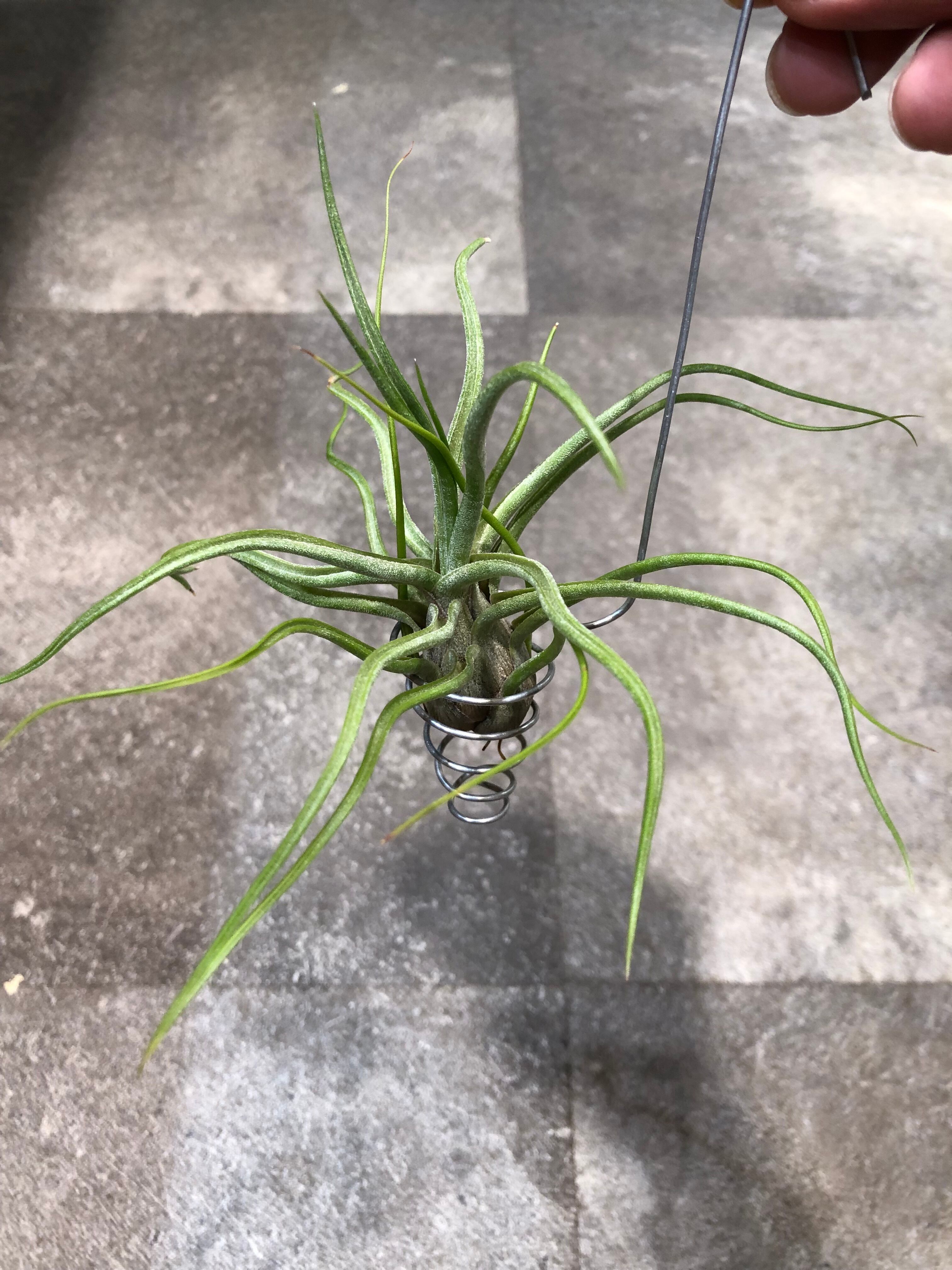 ティランジア・ブルボーサと別の品種の交配種で詳細は不明ですが、通常のブルボーサよりも葉色は黄緑色が強く基部の壺の部分も少し白っぽい見た目で性質は丈夫で育て易い印象があります。
