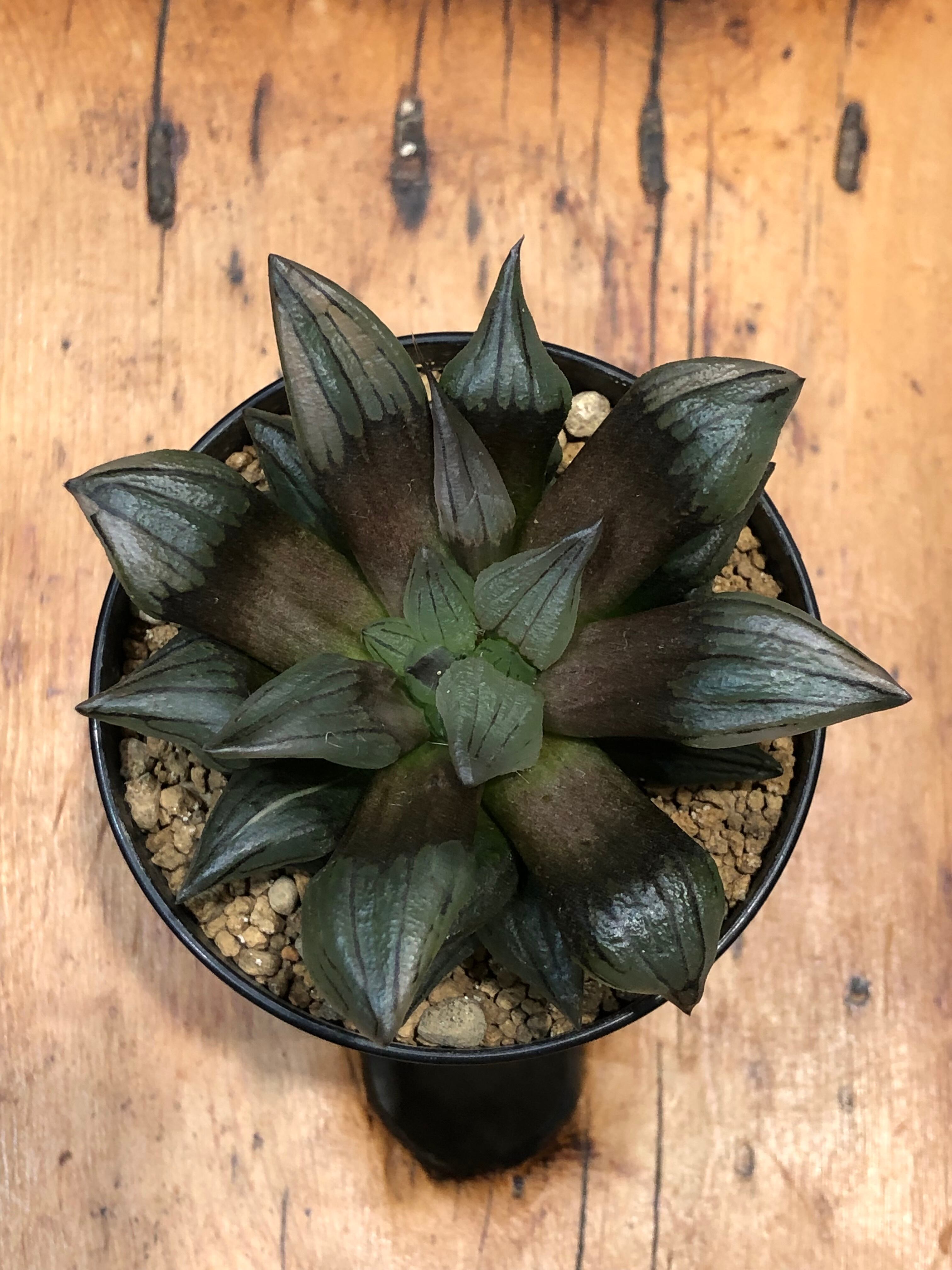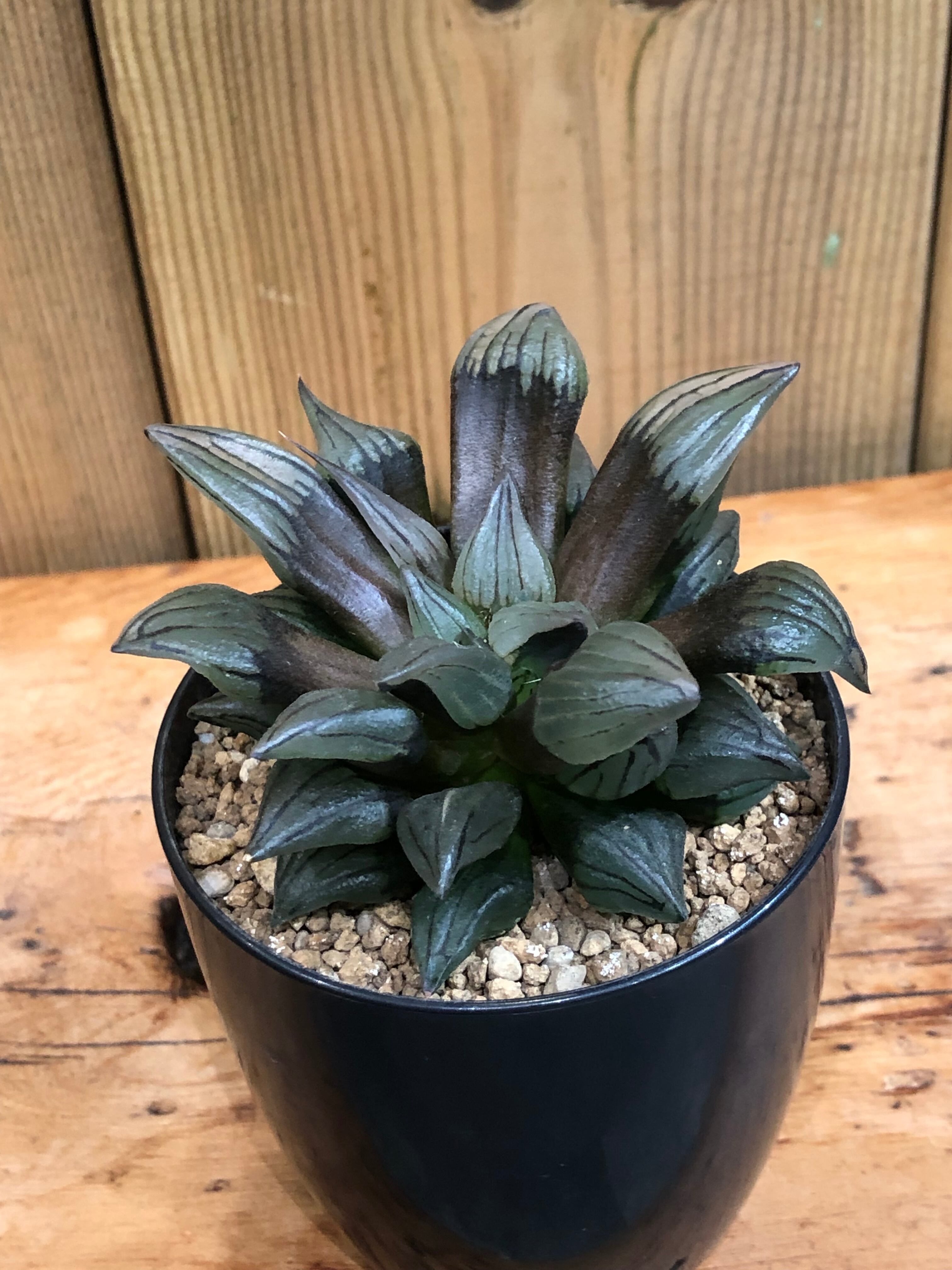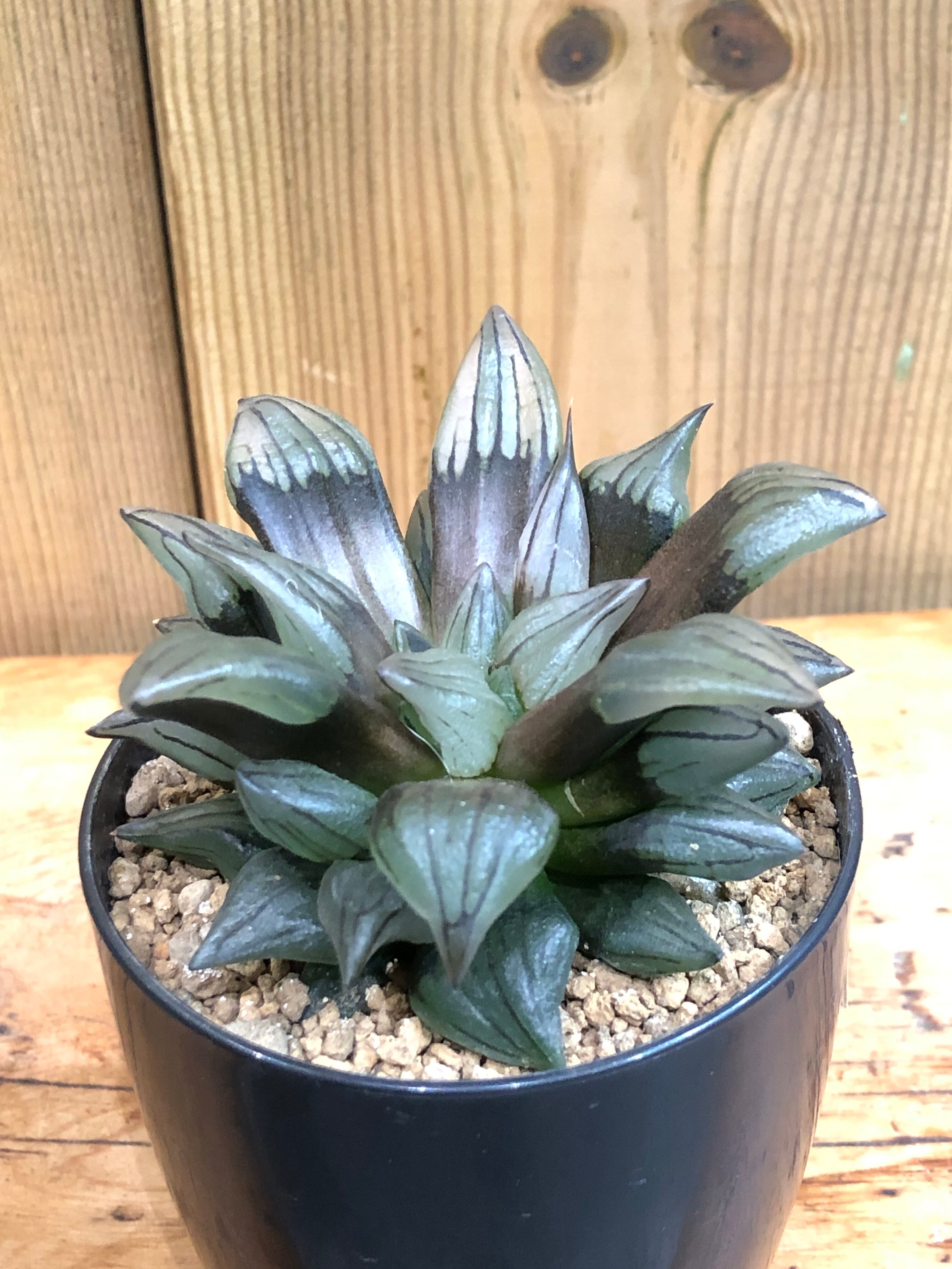 ハオルチアの組織培養中に突然変異で出来た品種で葉先の半透明な窓が表裏にあり範囲も広く縞模様が入る葉が美しい品種であります。