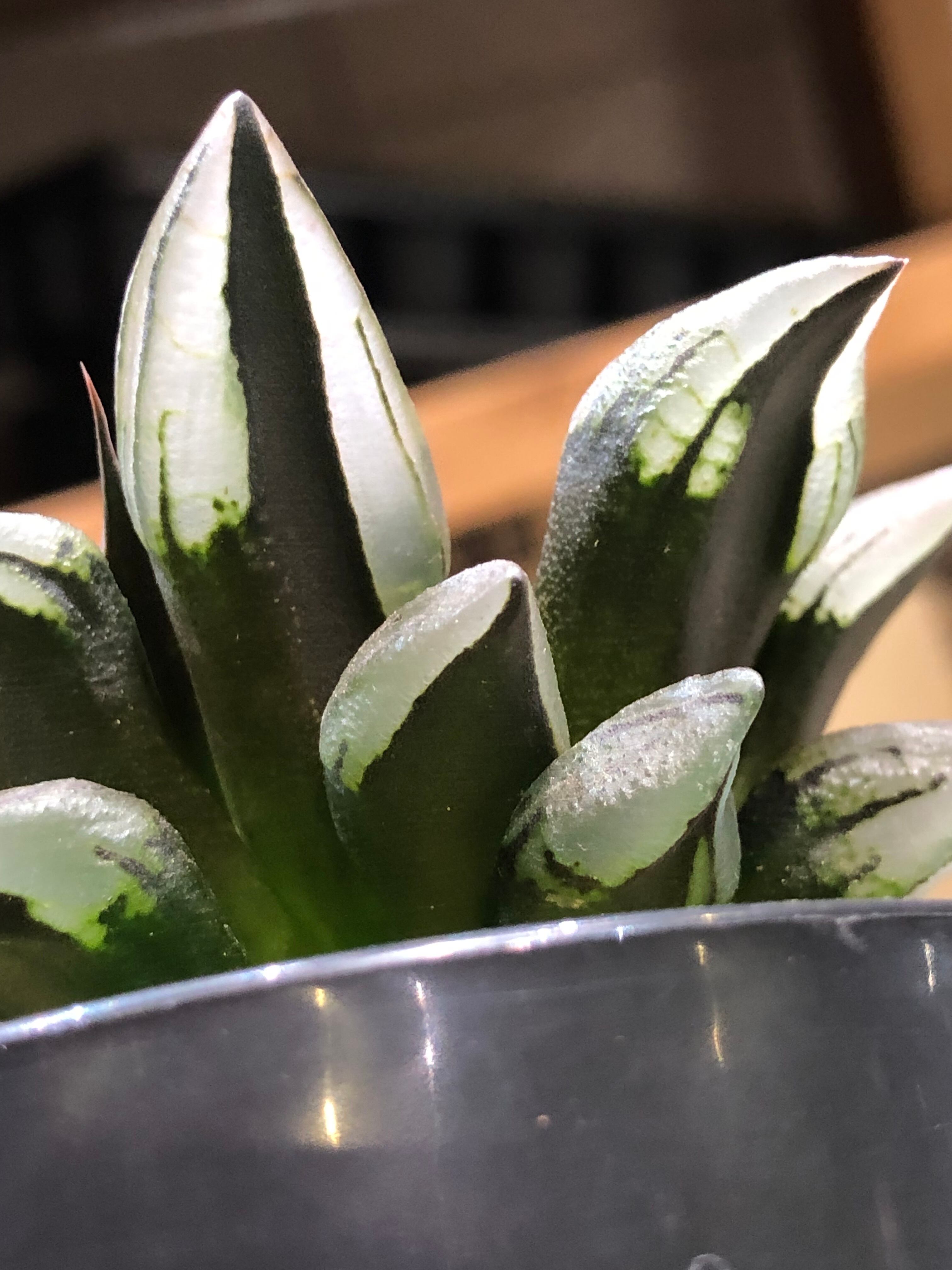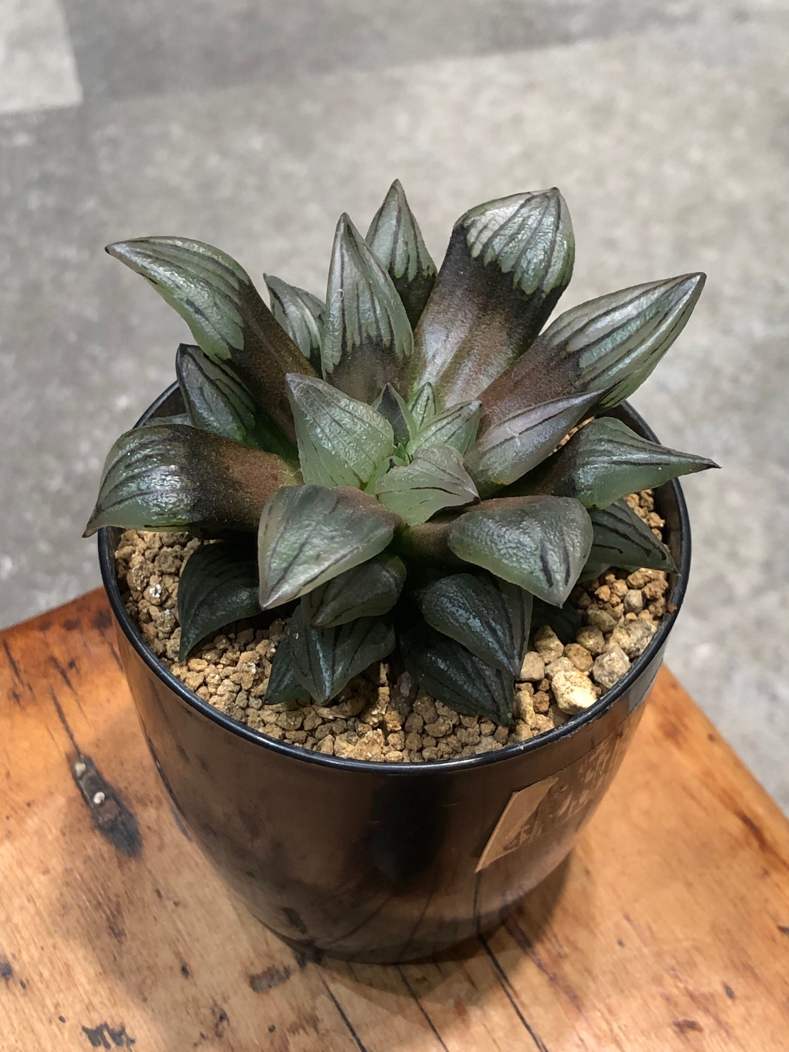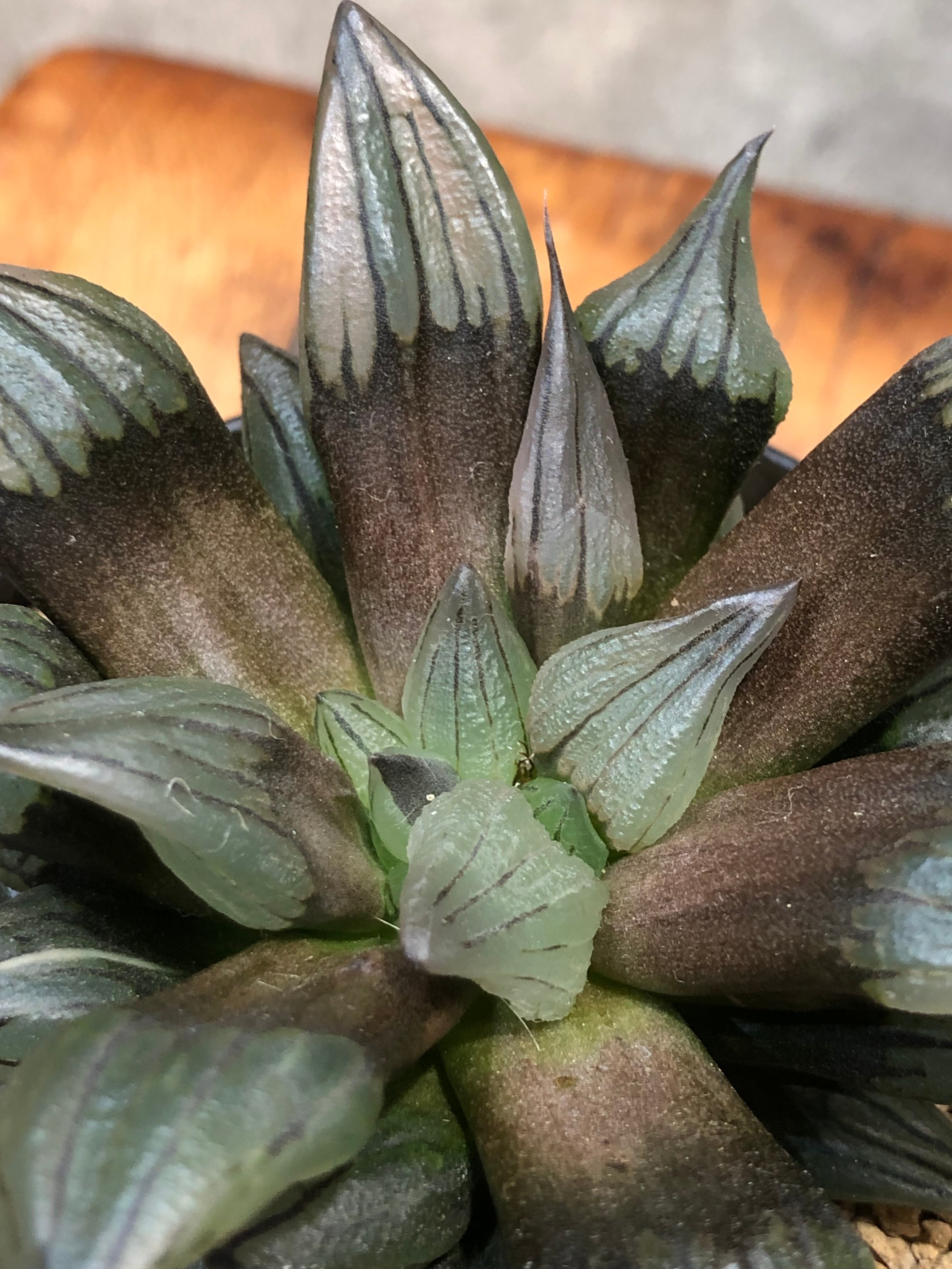 ハオルチアの組織培養中に突然変異で出来た品種で葉先の半透明な窓が表裏にあり範囲も広く縞模様が入る葉が美しい品種であります。