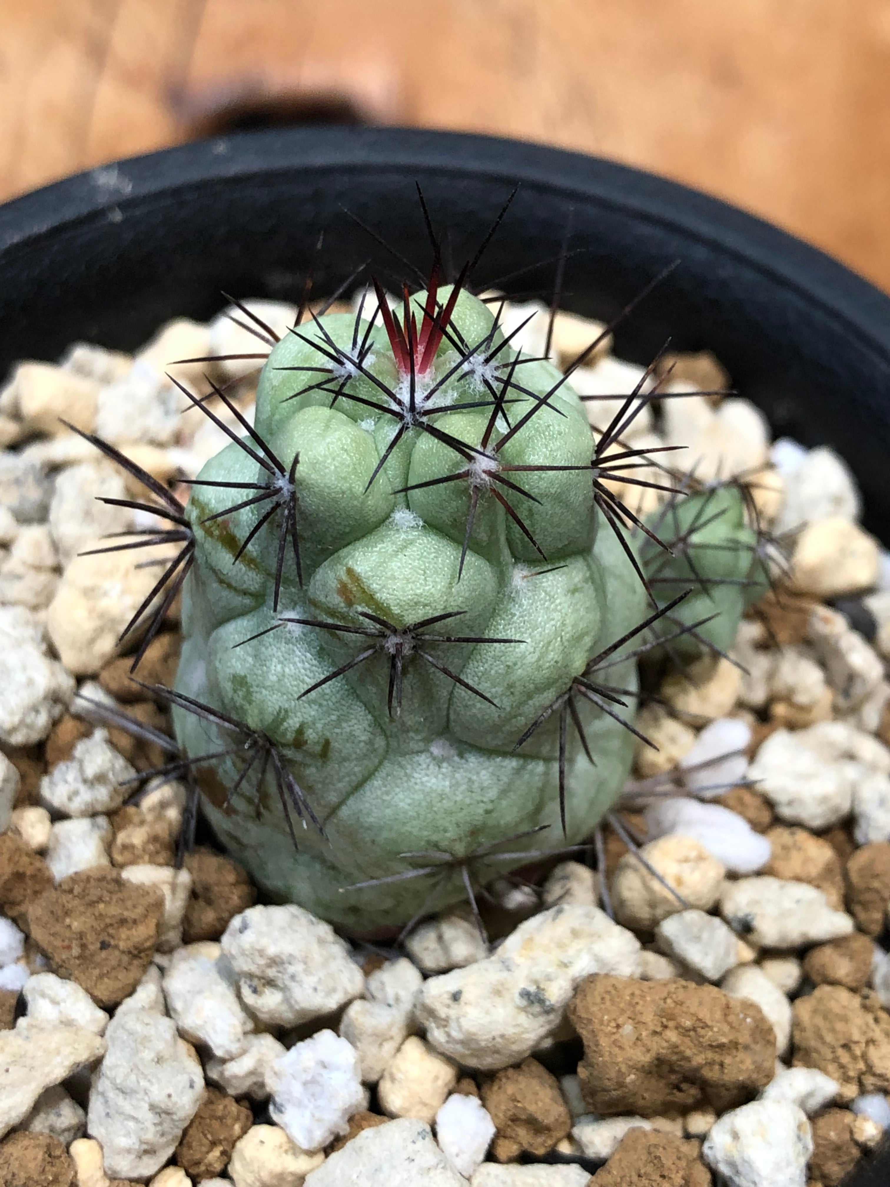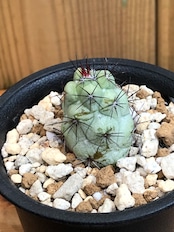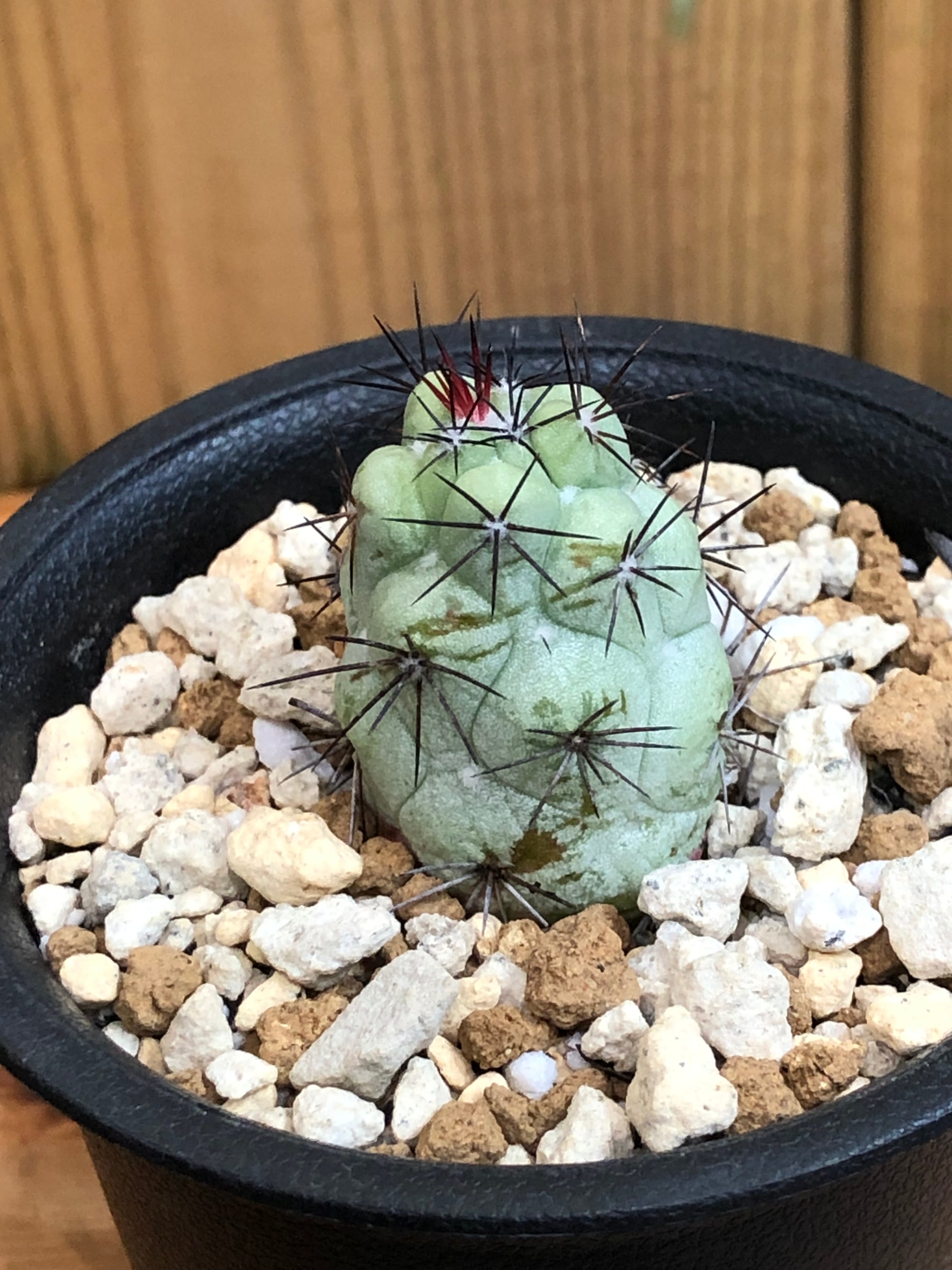 メキシコ原産の希少なサボテンで青白い肌に黒い棘が渋い品種です。