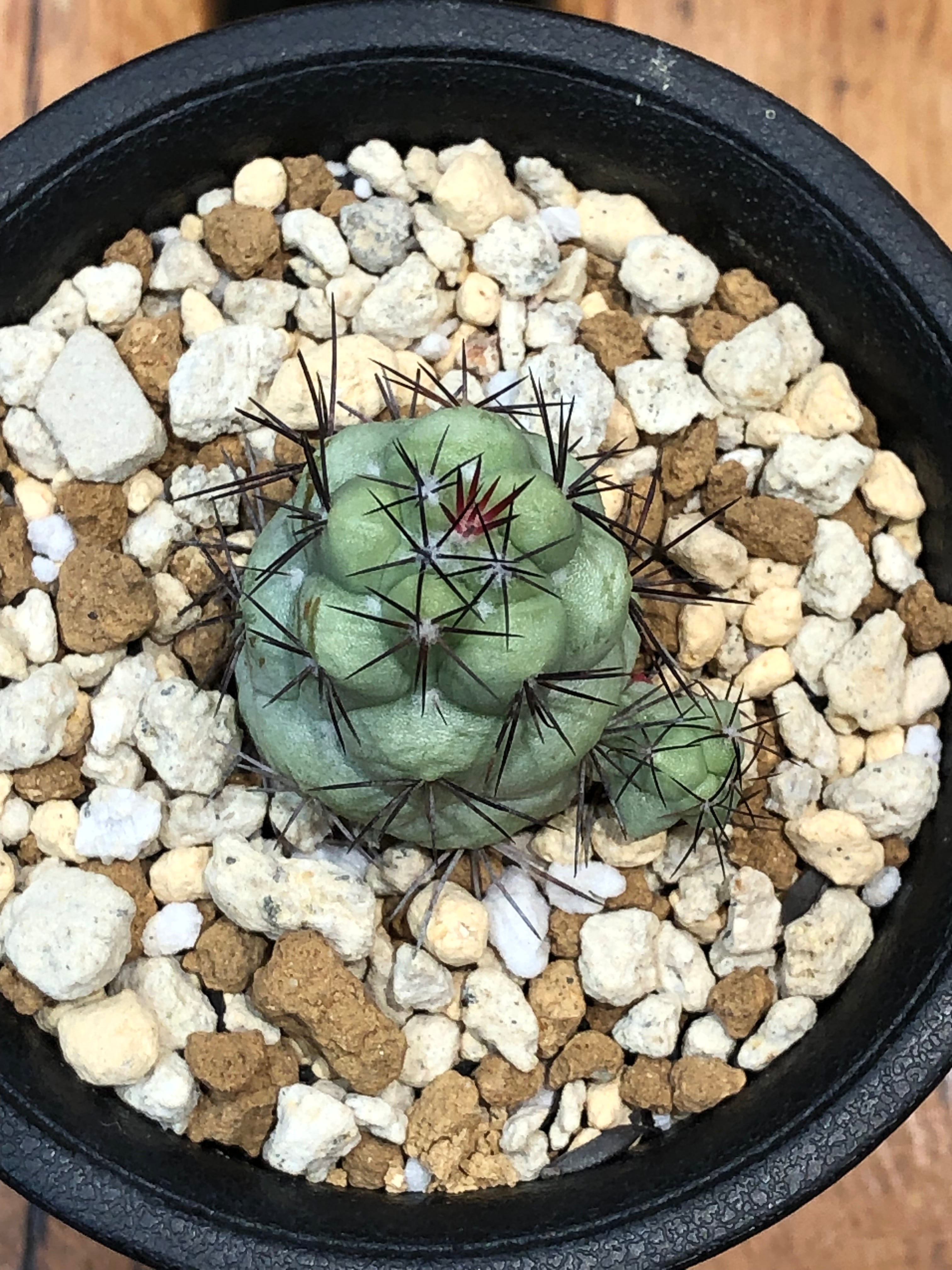 小型のサボテンで大きくなっても10㎝くらいで子株を出しながら群生して育ちます。