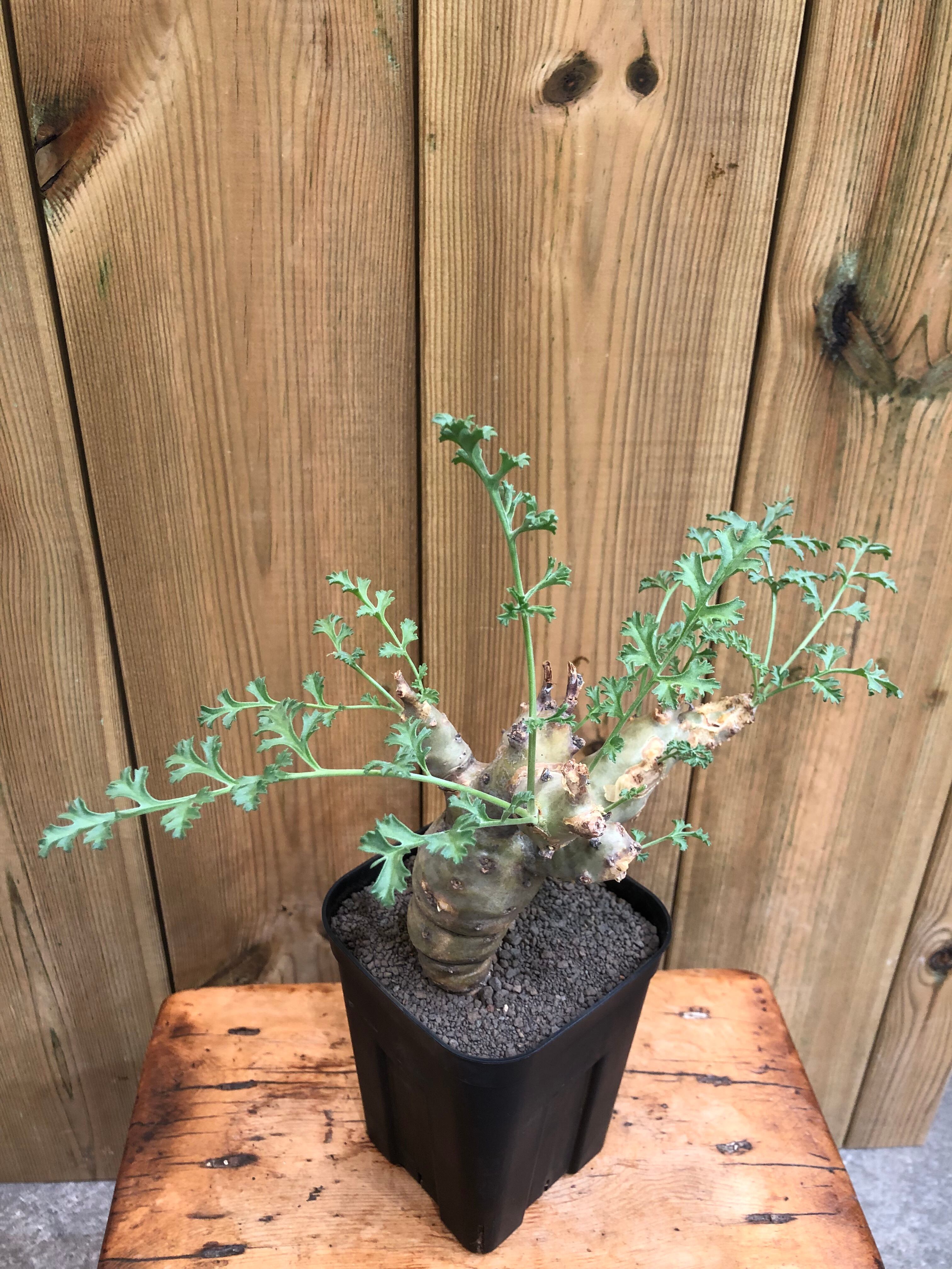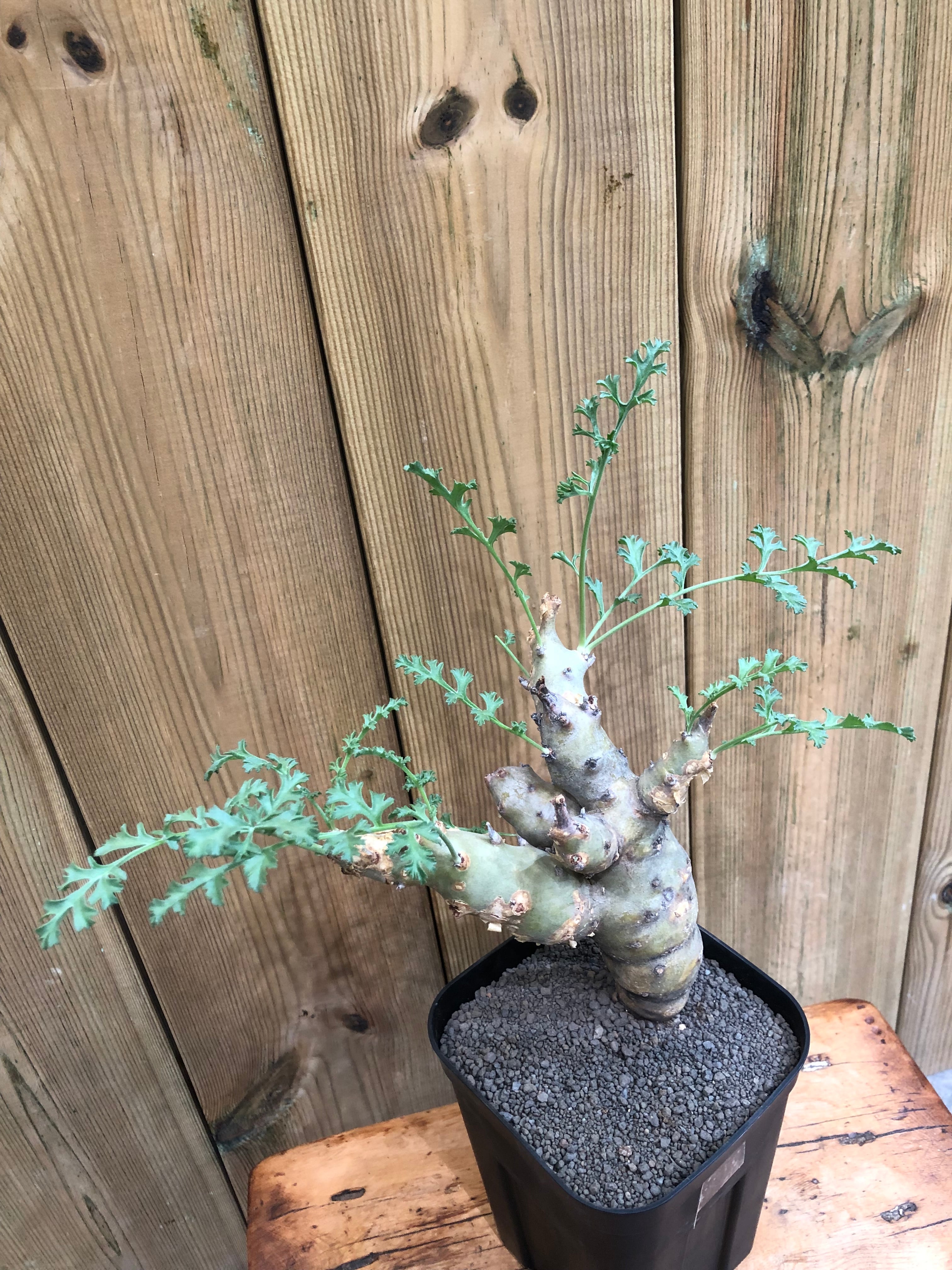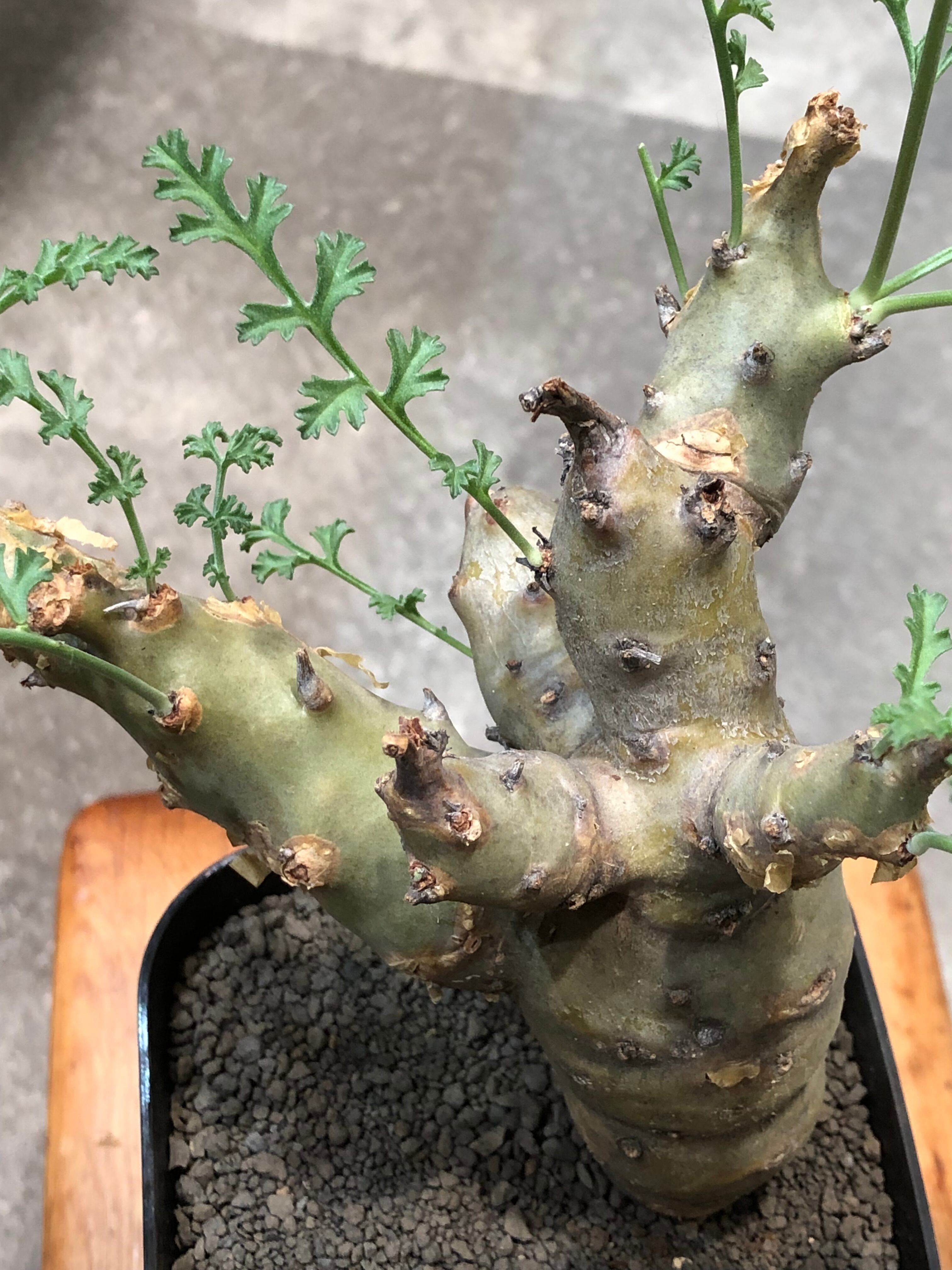 少しゴツゴツした幹から繊細そうな葉が生える様子が面白い植物です。