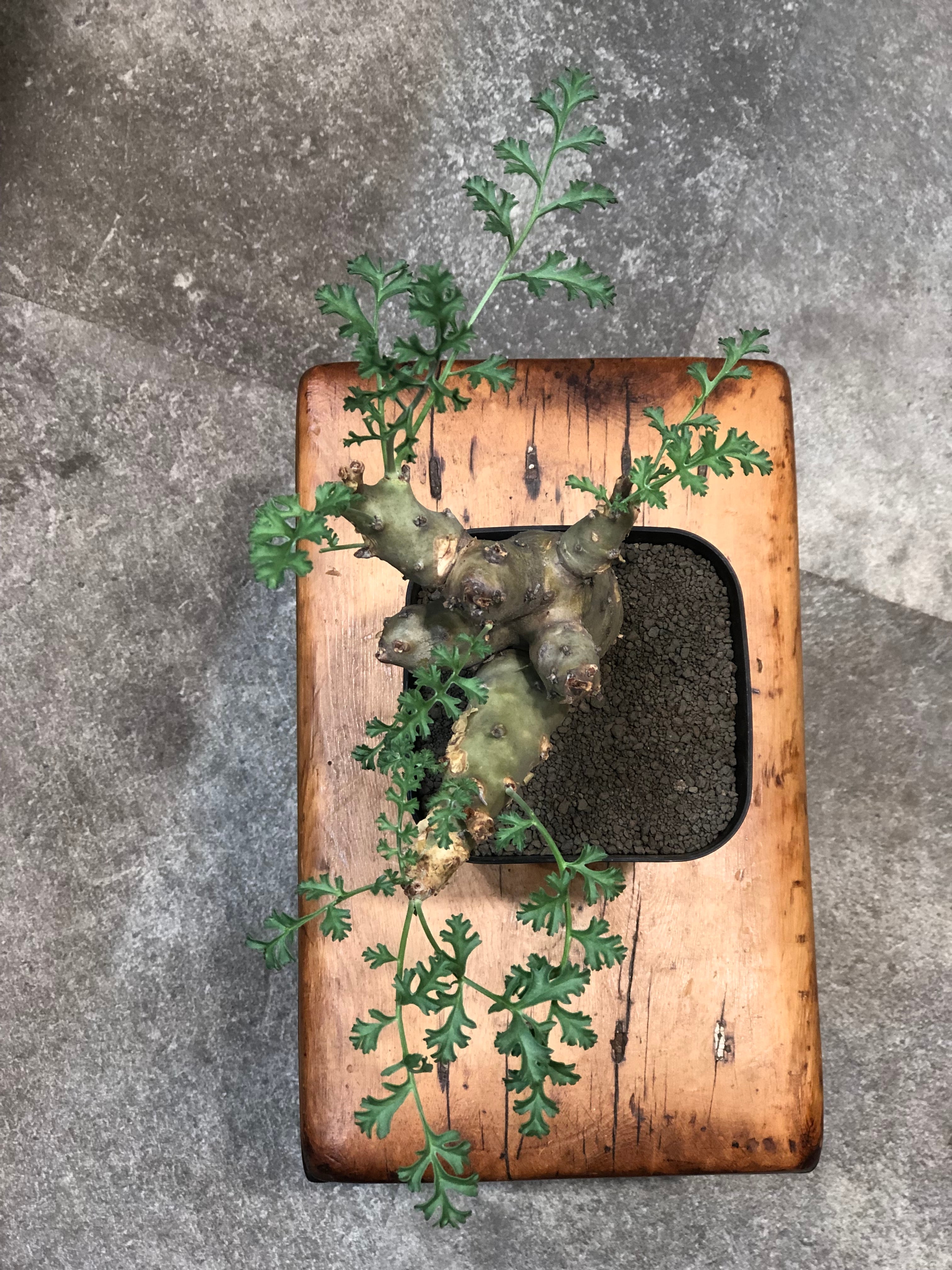 南アフリカ原産の冬型塊根植物で小型ですが、盆栽の様な雰囲気のある品種です。