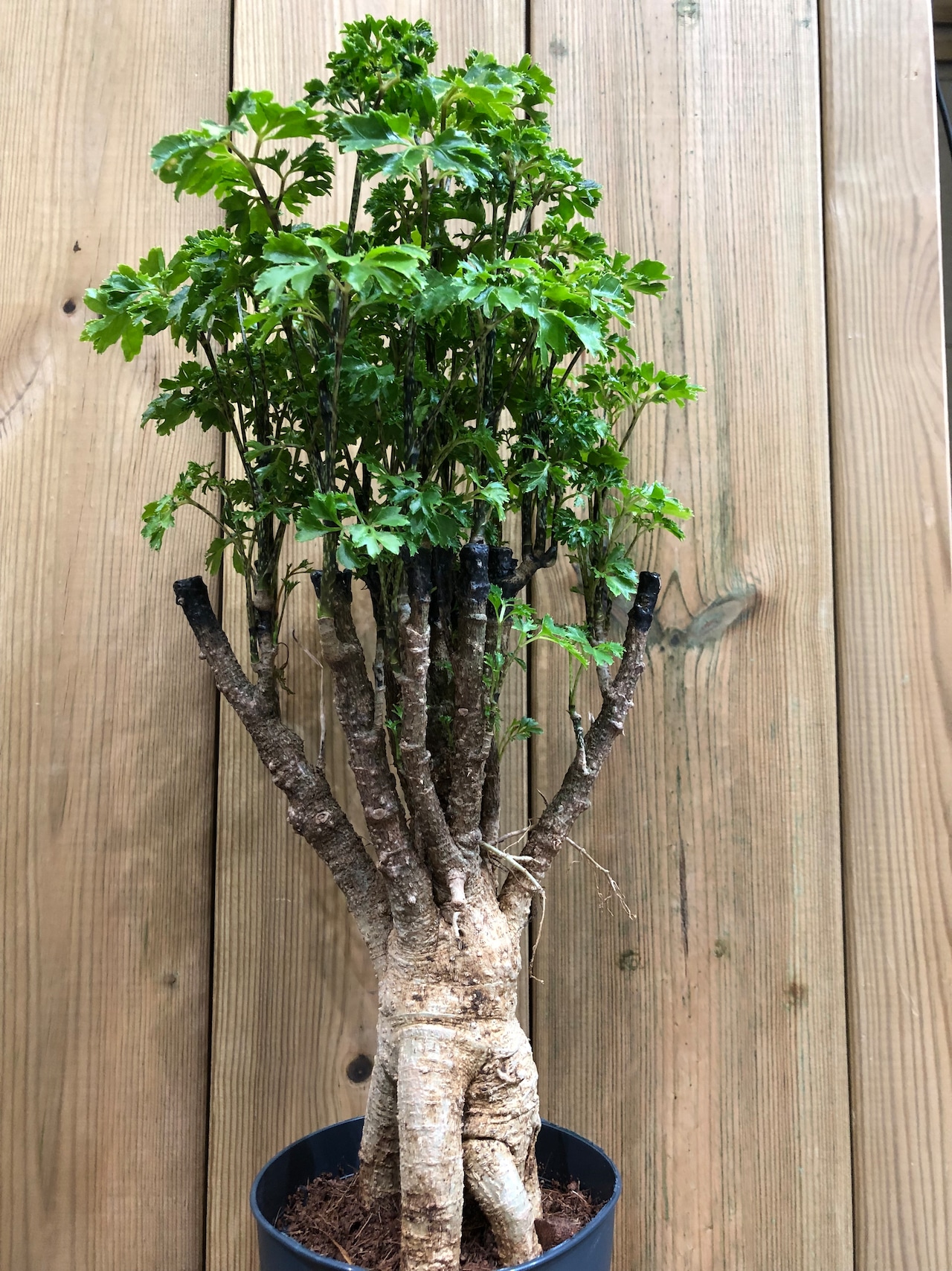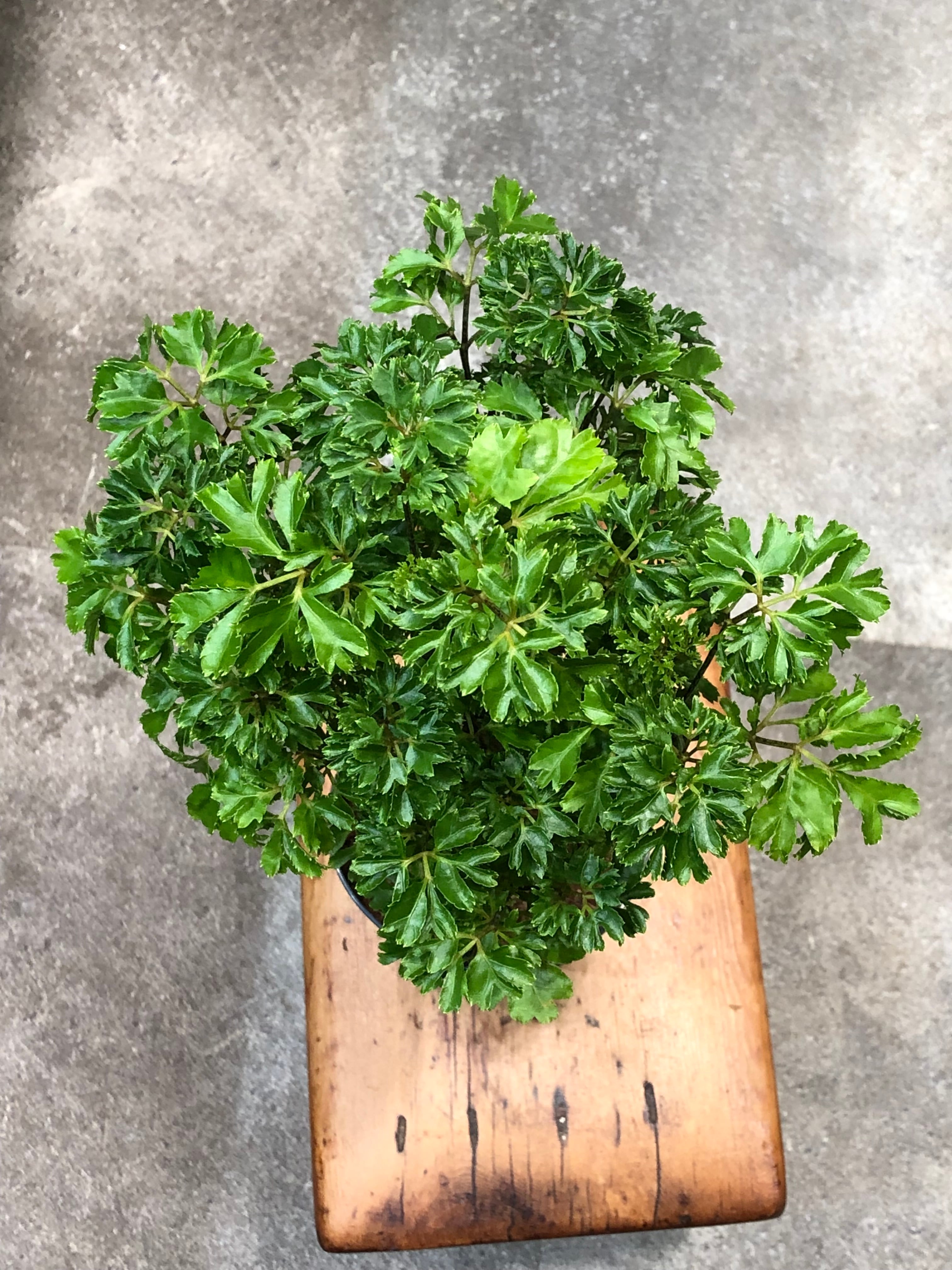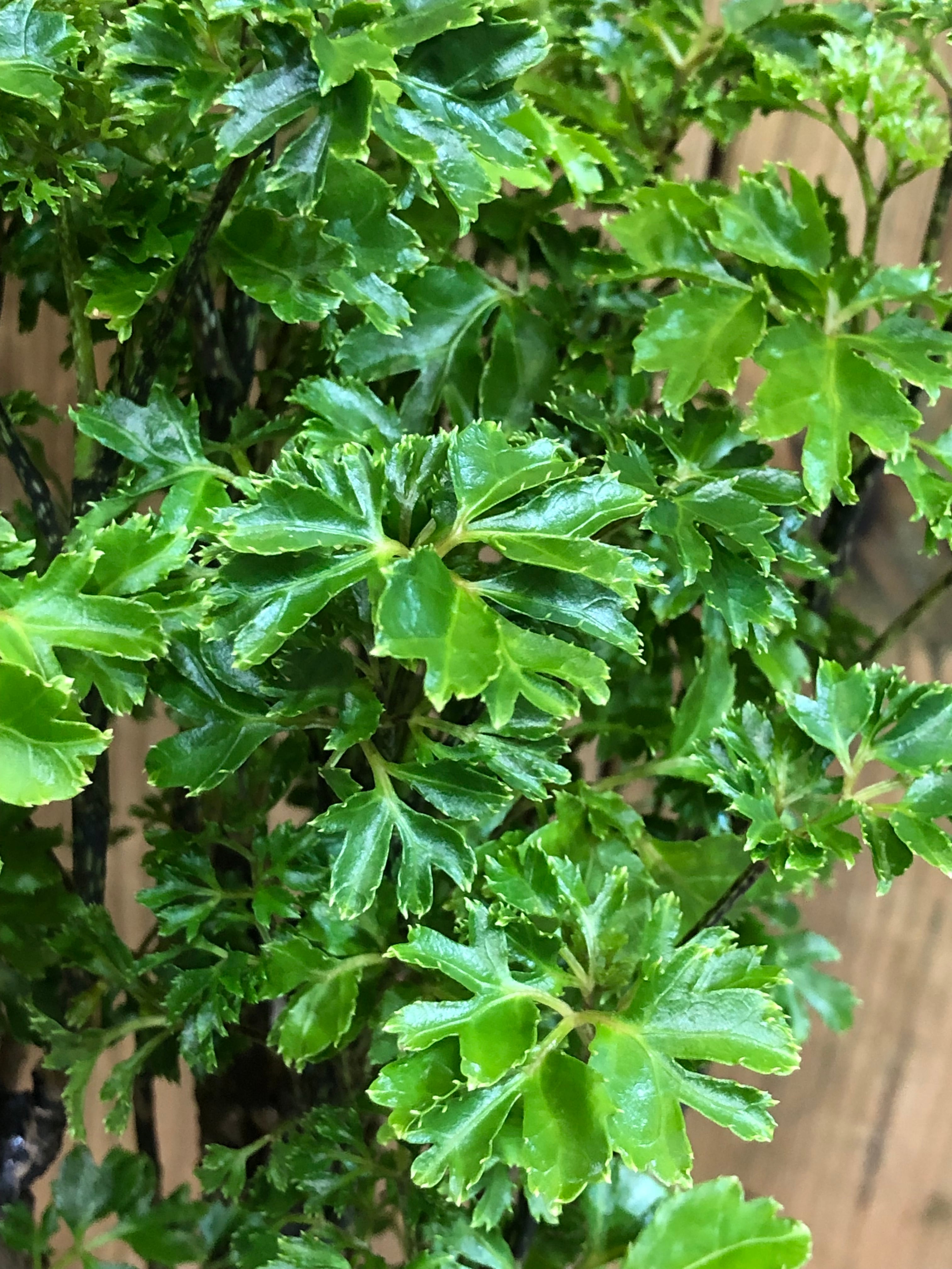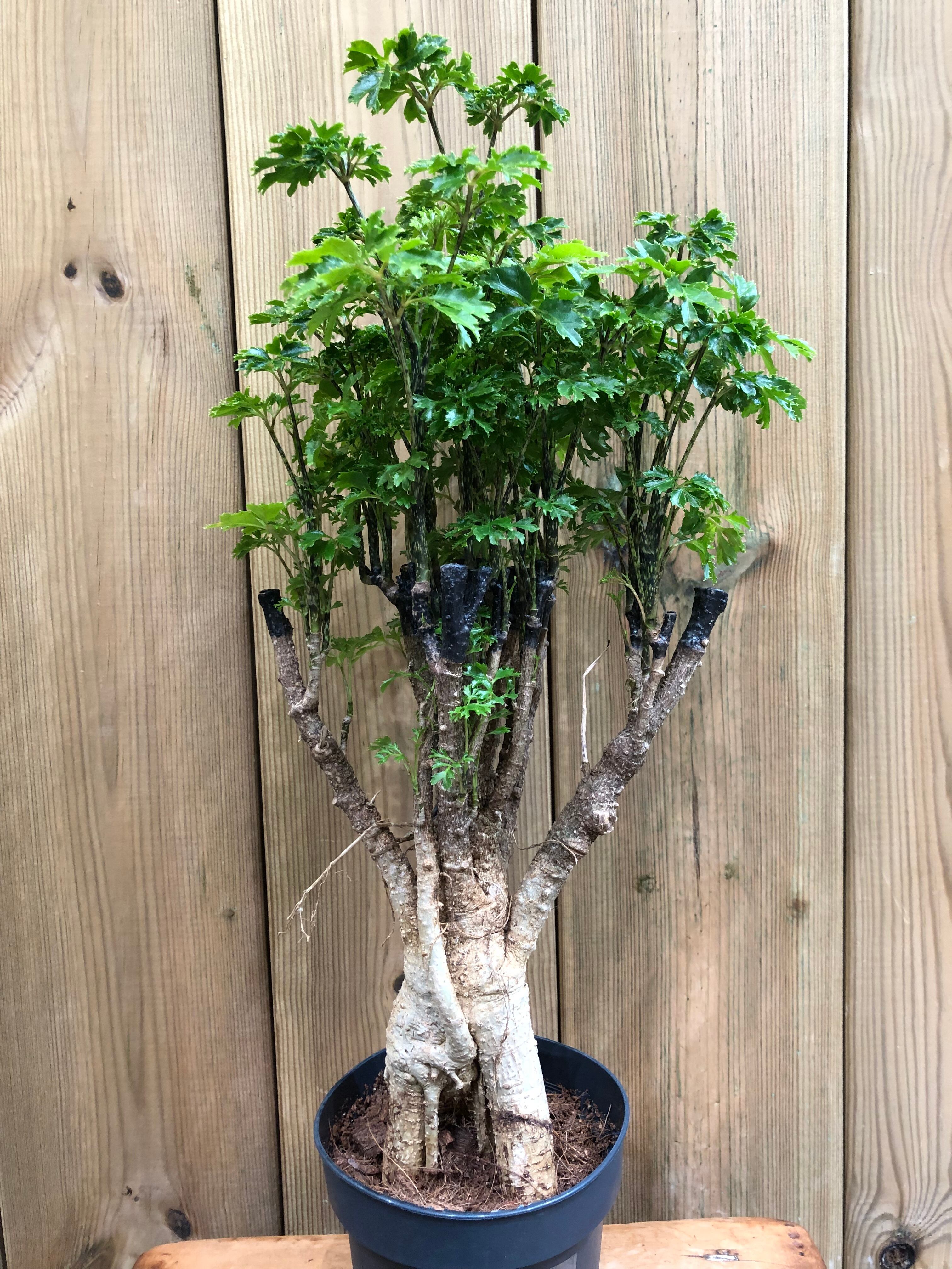 丸くて蝶々の様な形状の深い切れ込みのある葉を旺盛に繁らせます。