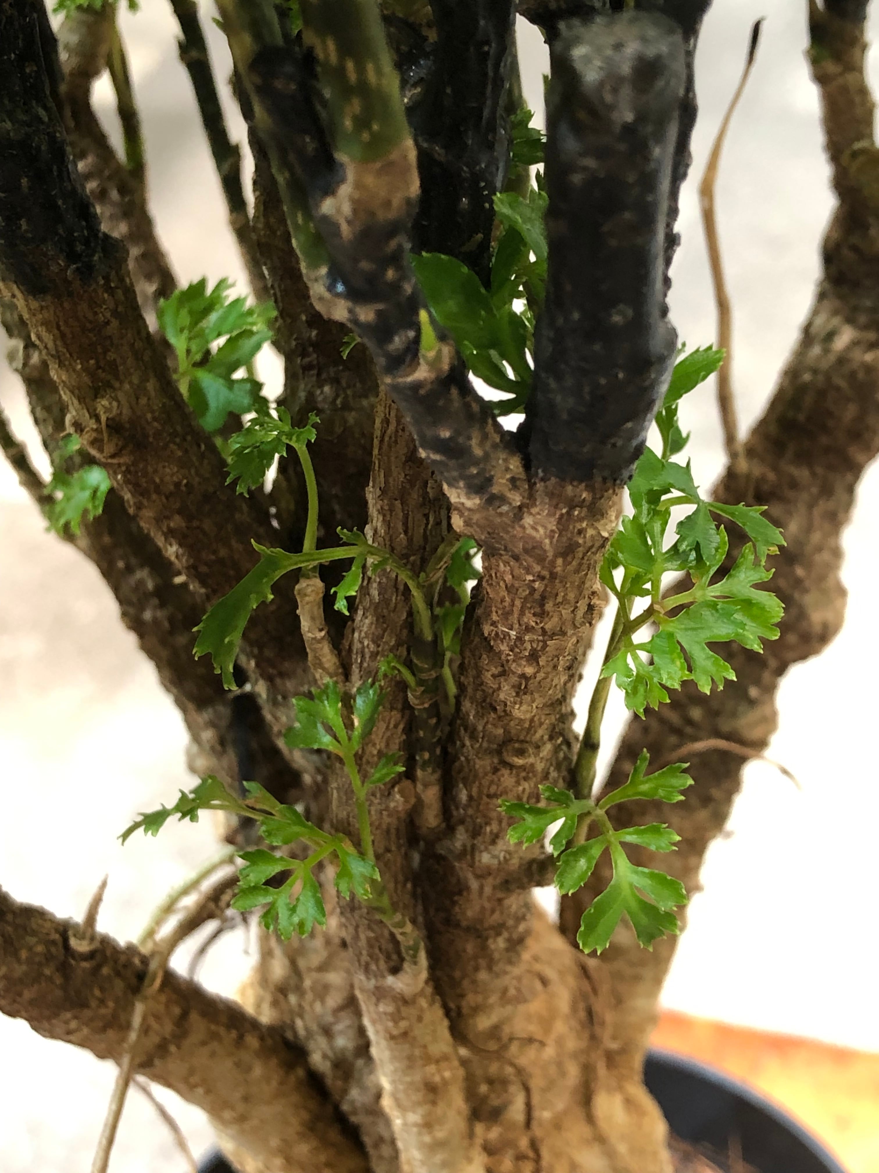 ・屋内では窓際のレースのカーテン越しや植物育成ライト下で用土が乾いたら水遣りします。
