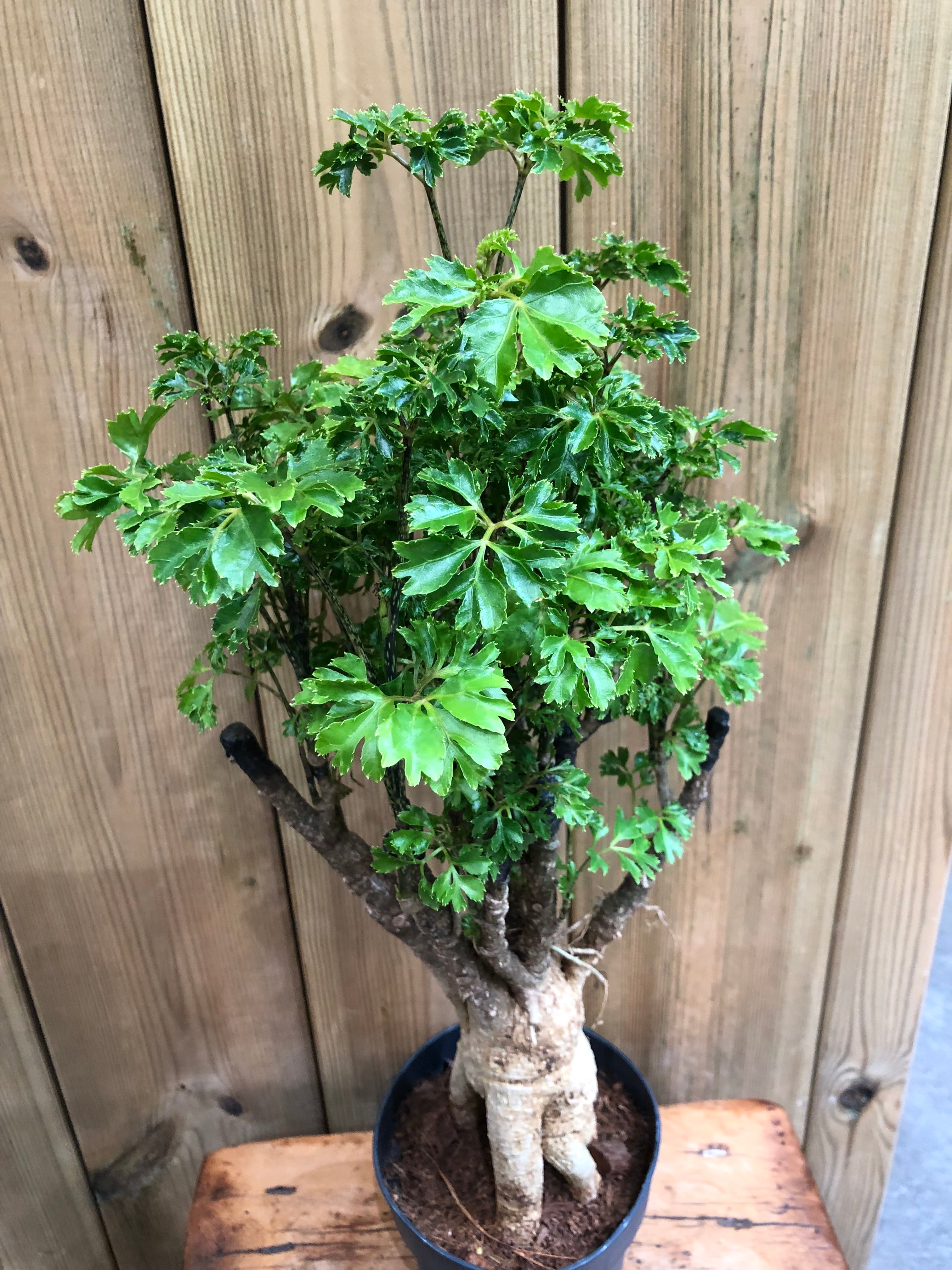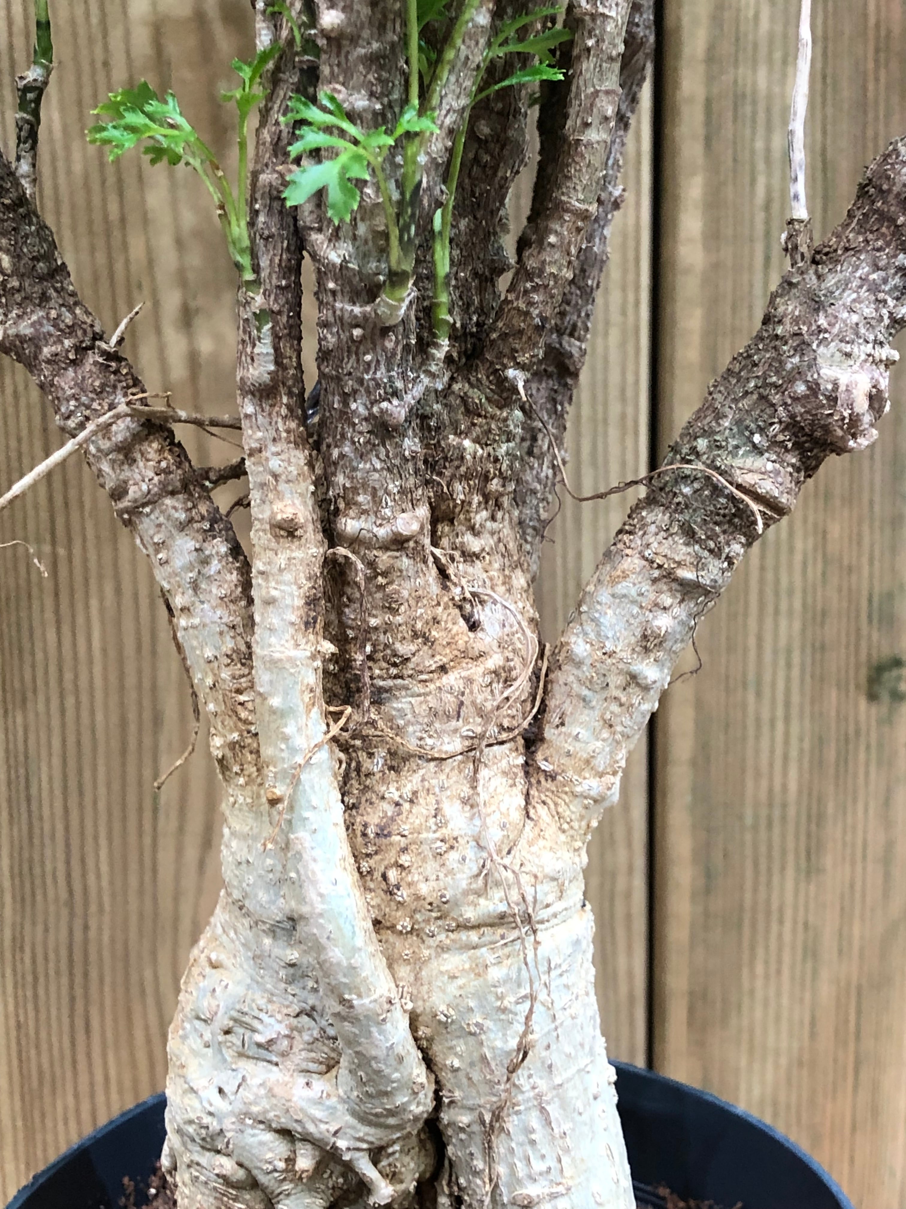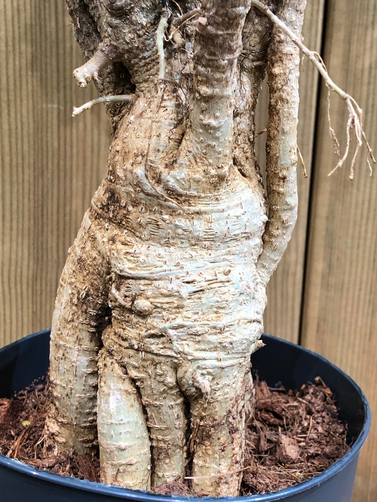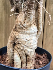 東南アジア等の熱帯地域原産の観葉植物で幹は大木感がありゴツゴツした表皮で白っぽい肌色です。