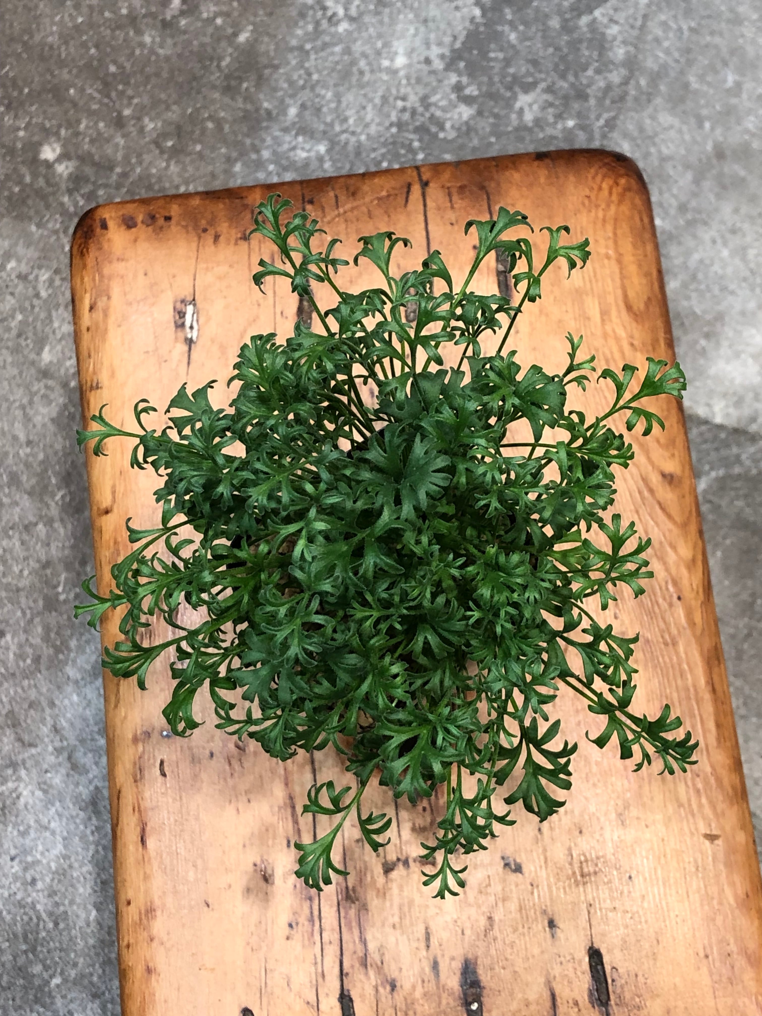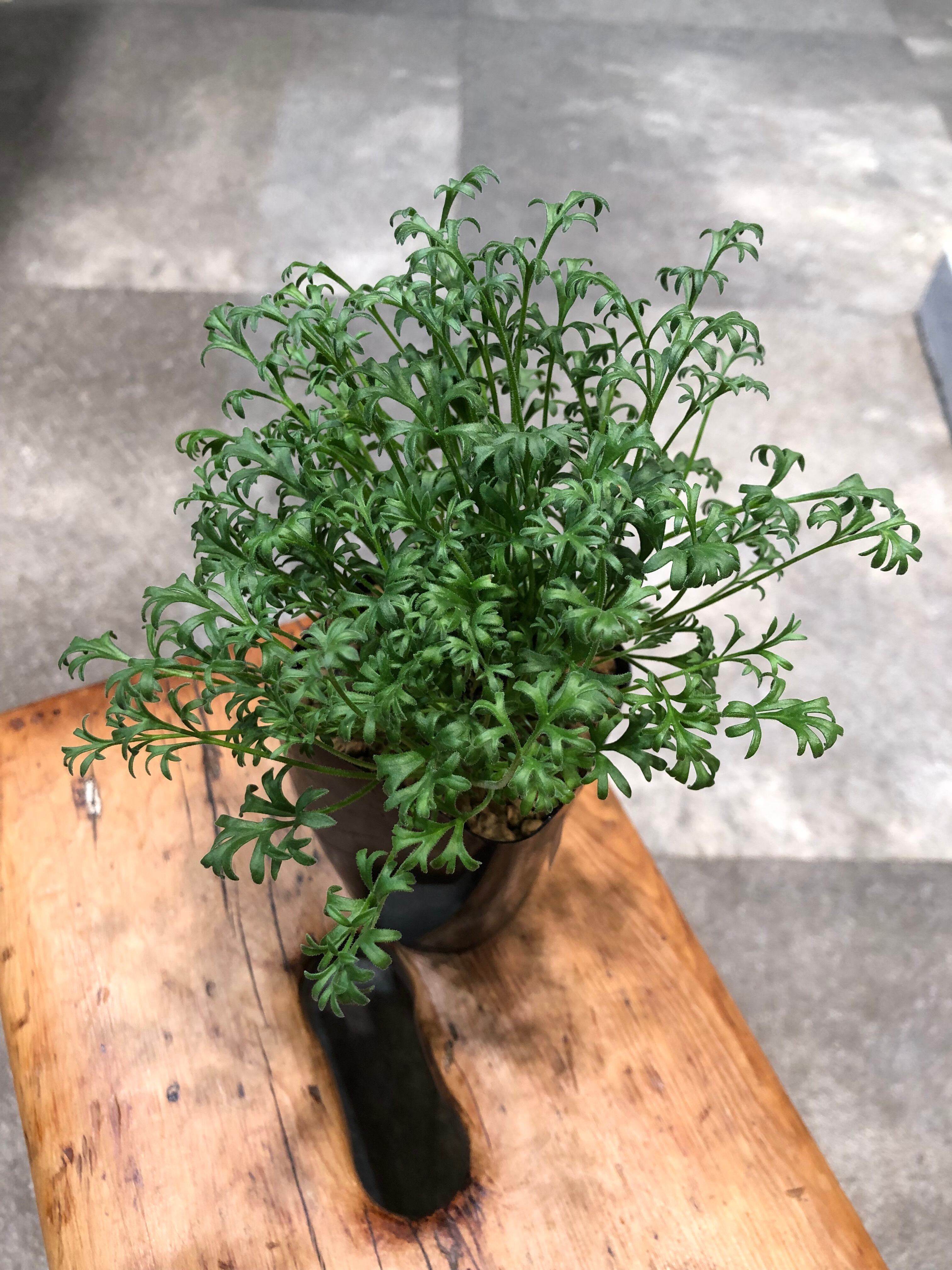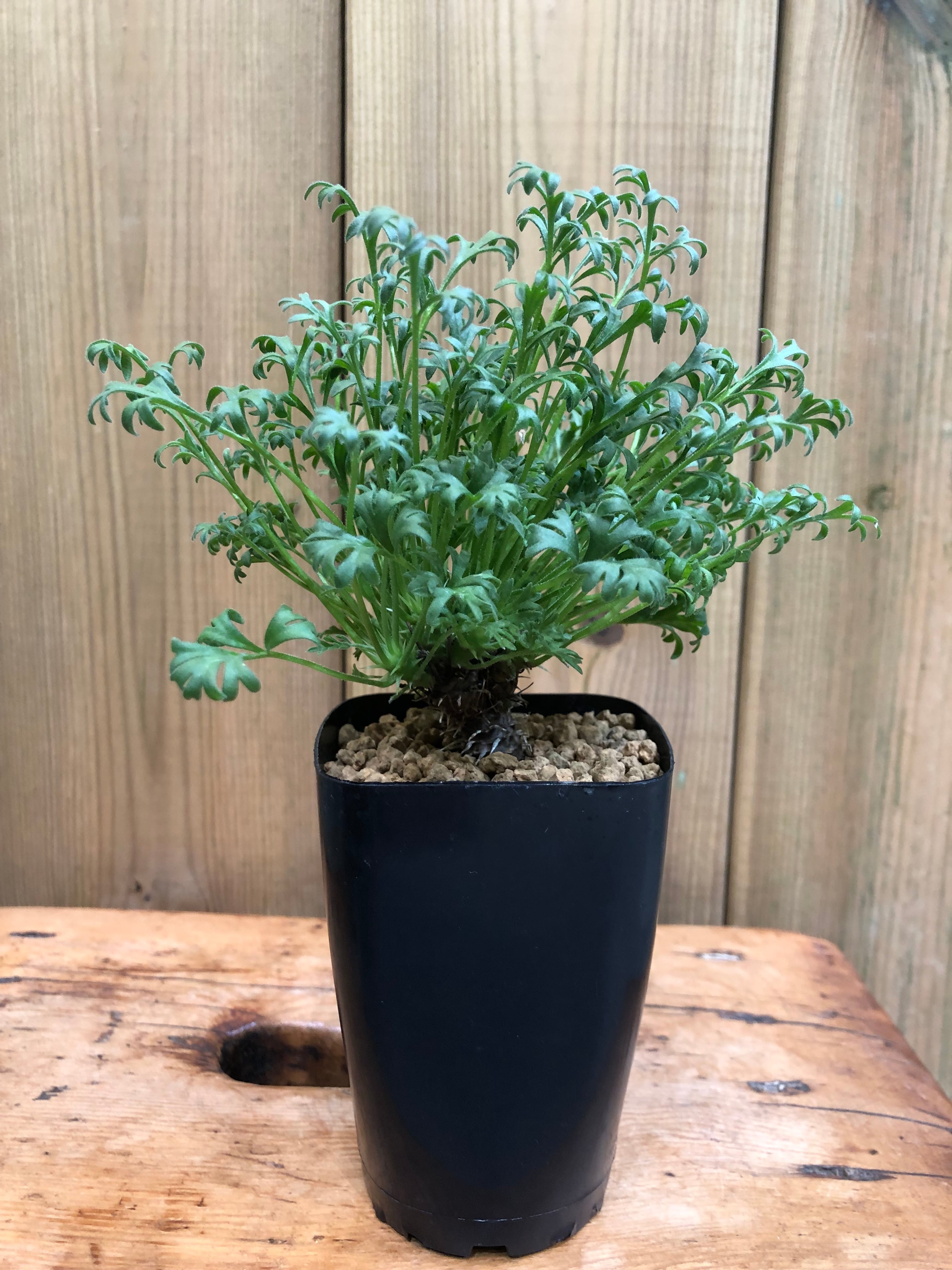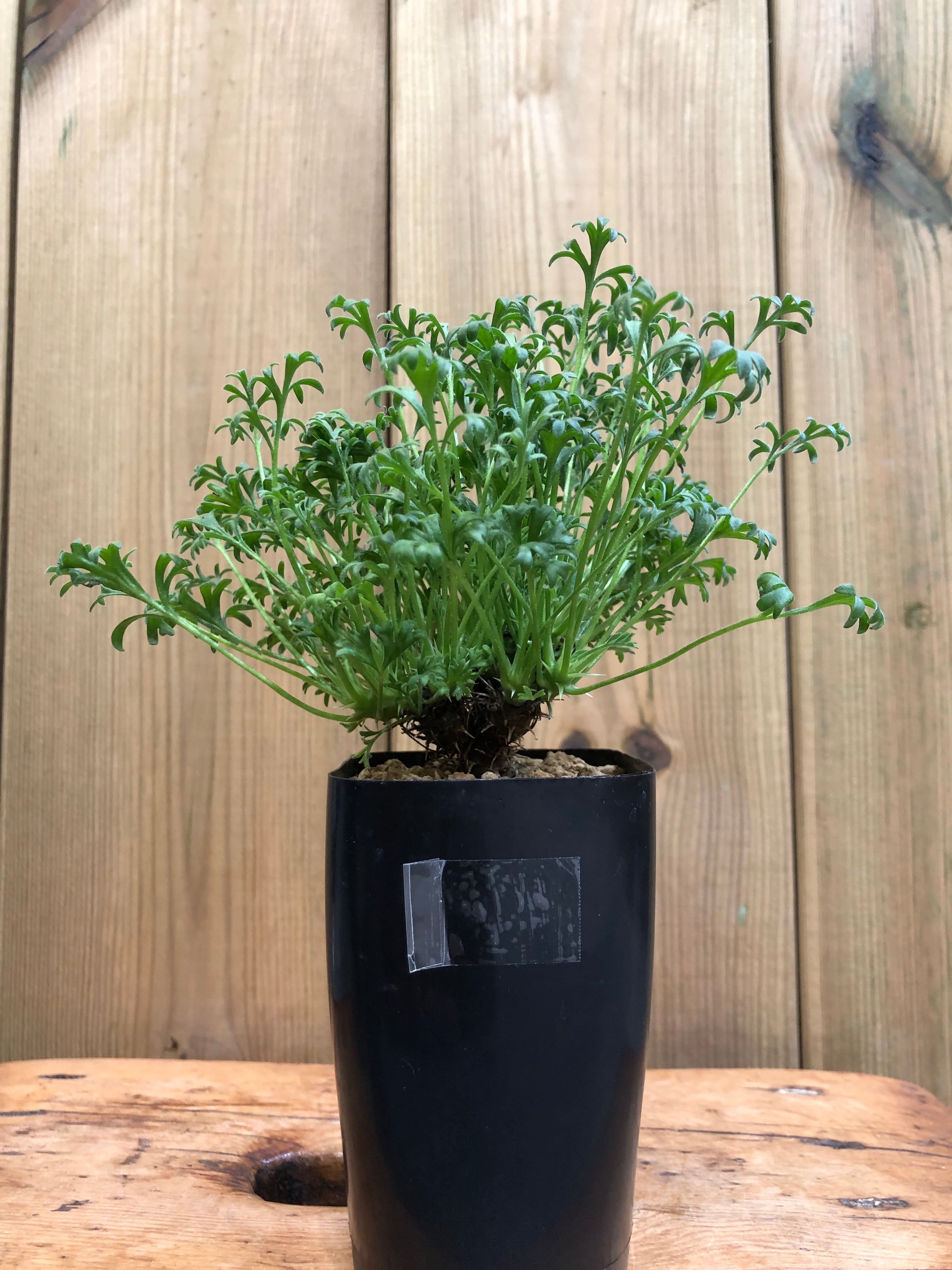 南アフリカ原産の冬型塊根植物で、黒くて刺々しい塊根部から深い切れ込みの入った柔らかい葉を展開します。