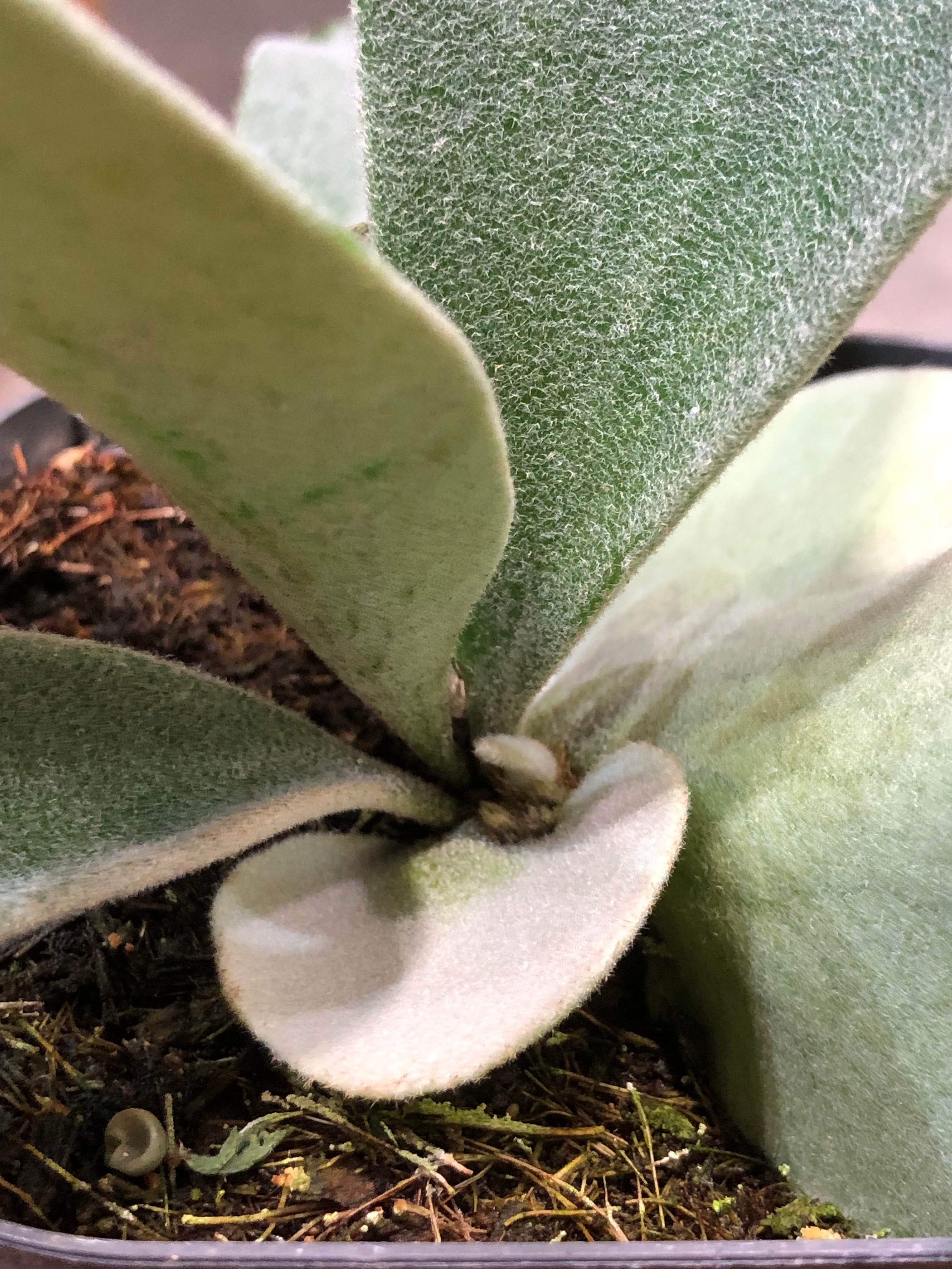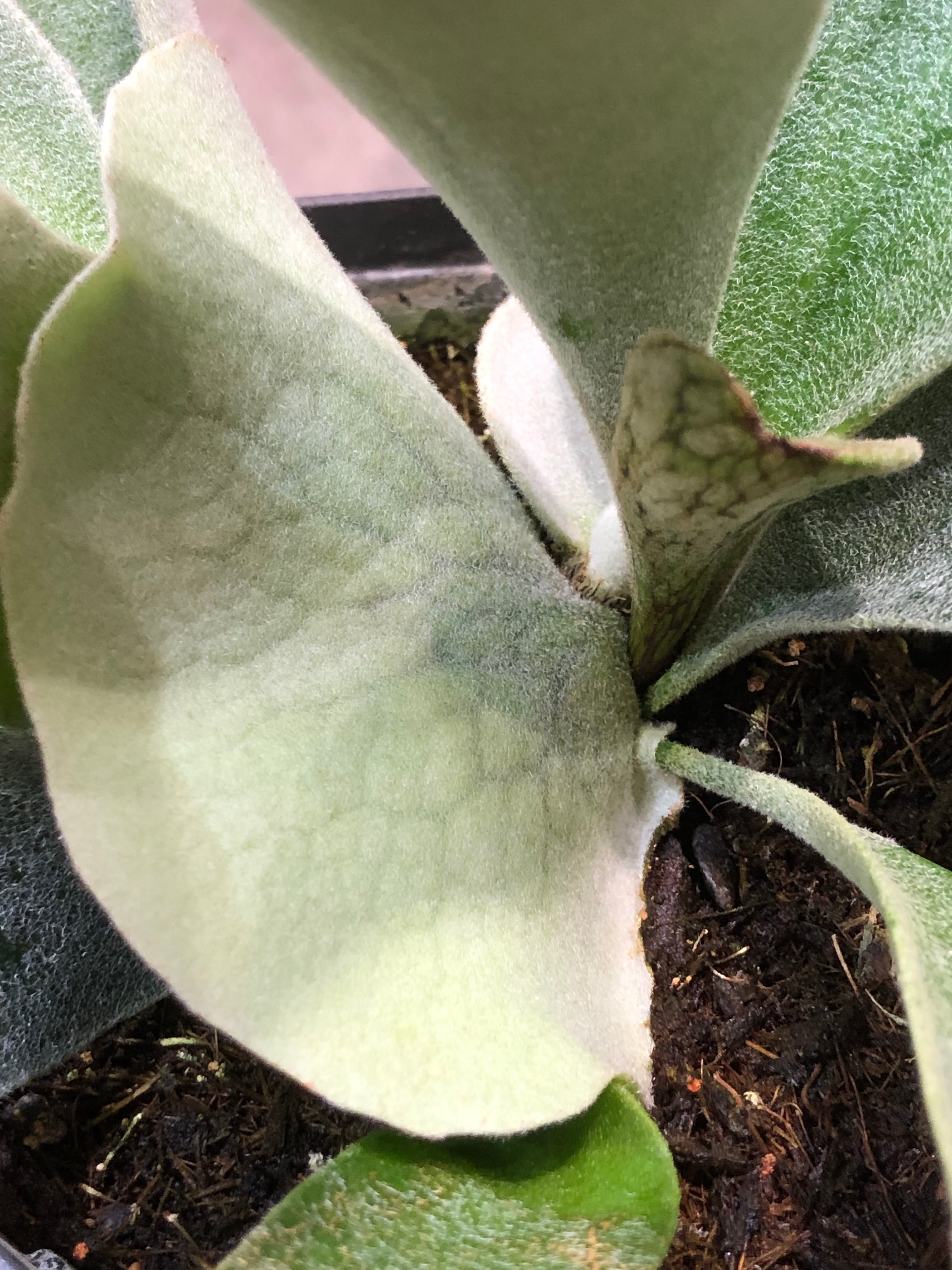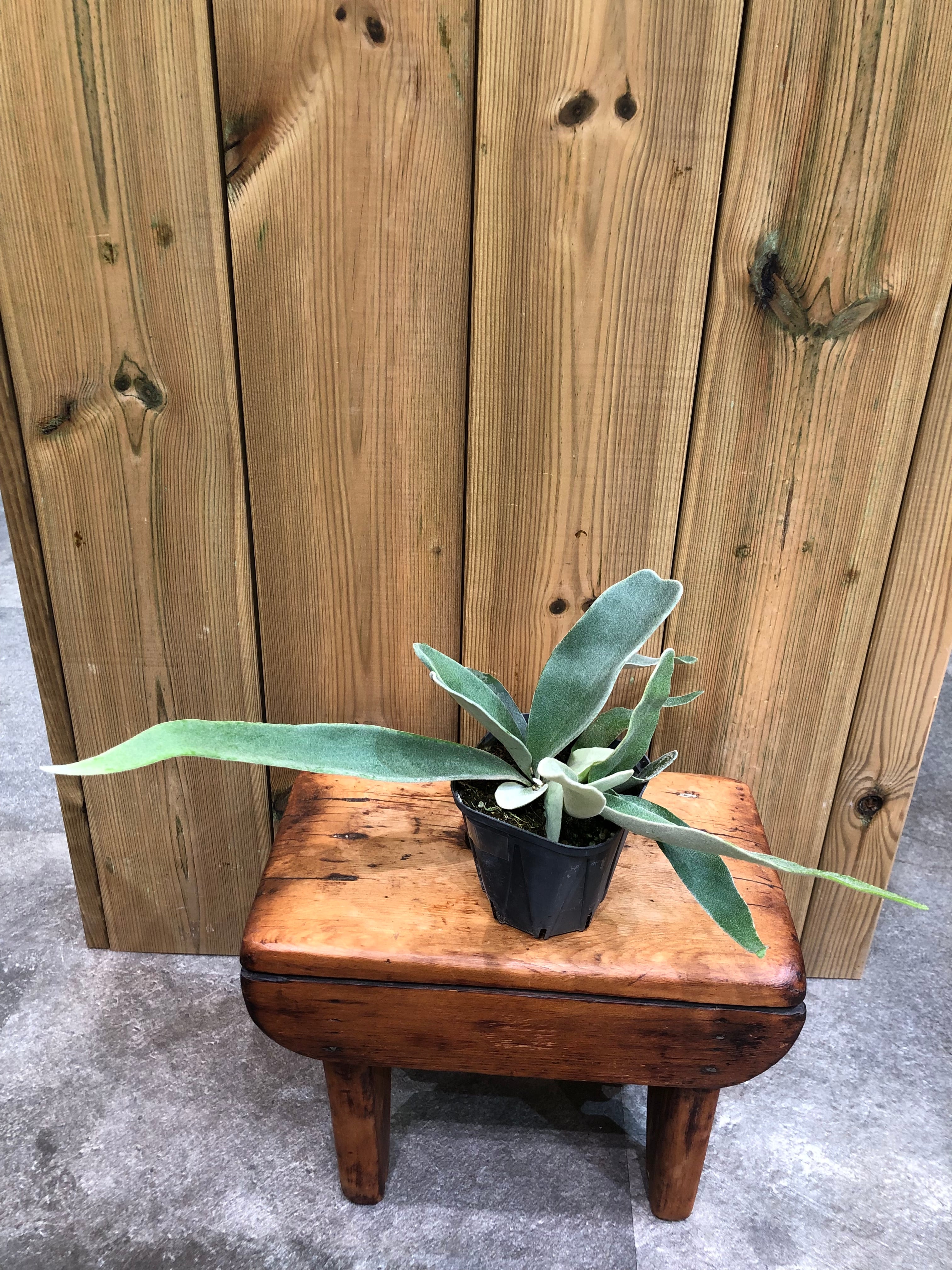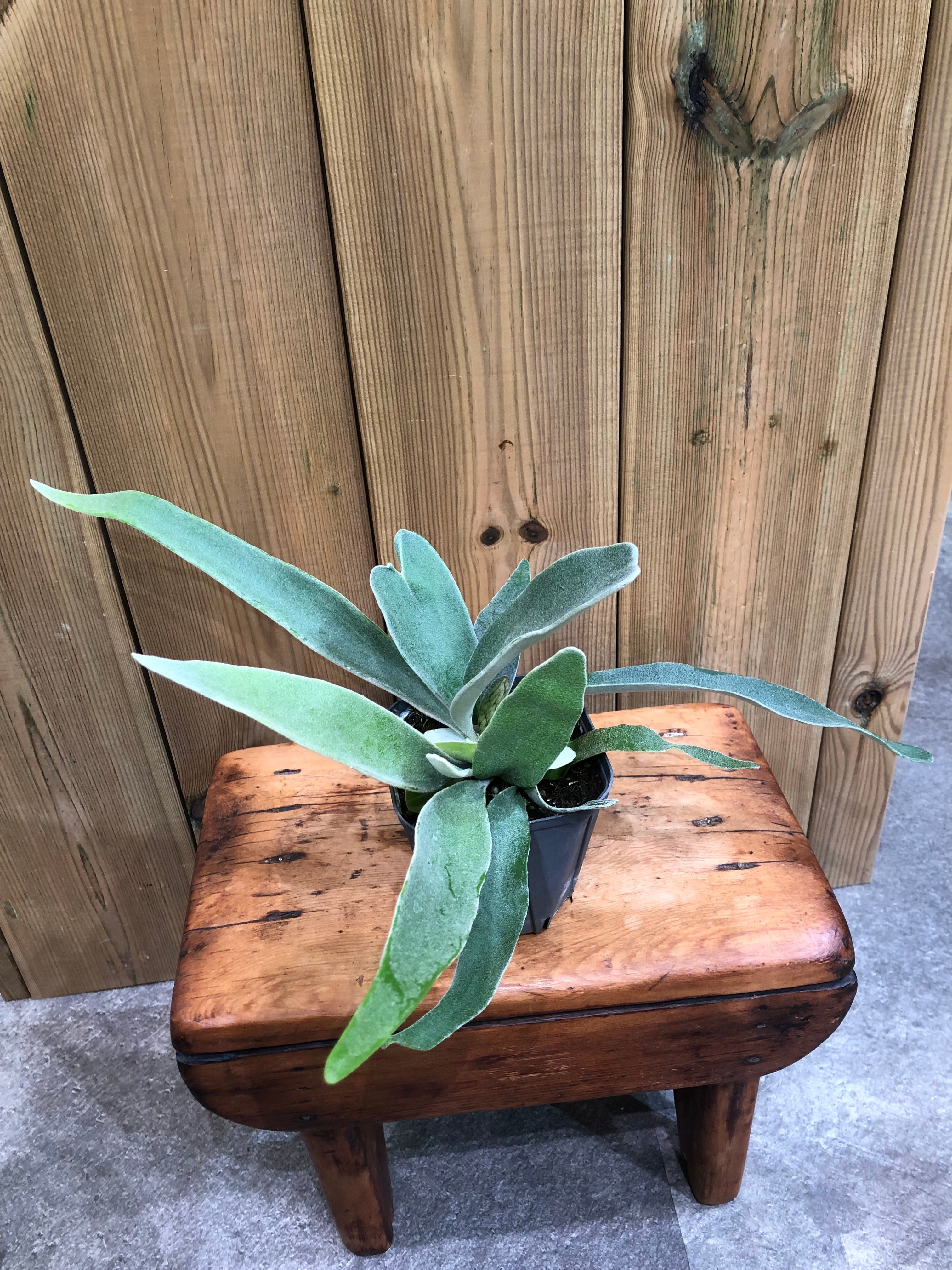 オーストラリア原産のビカクシダで、胞子葉はトリコームに覆われ白っぽく見え肉厚で陽射しや乾燥にも強く育て易い品種です。
