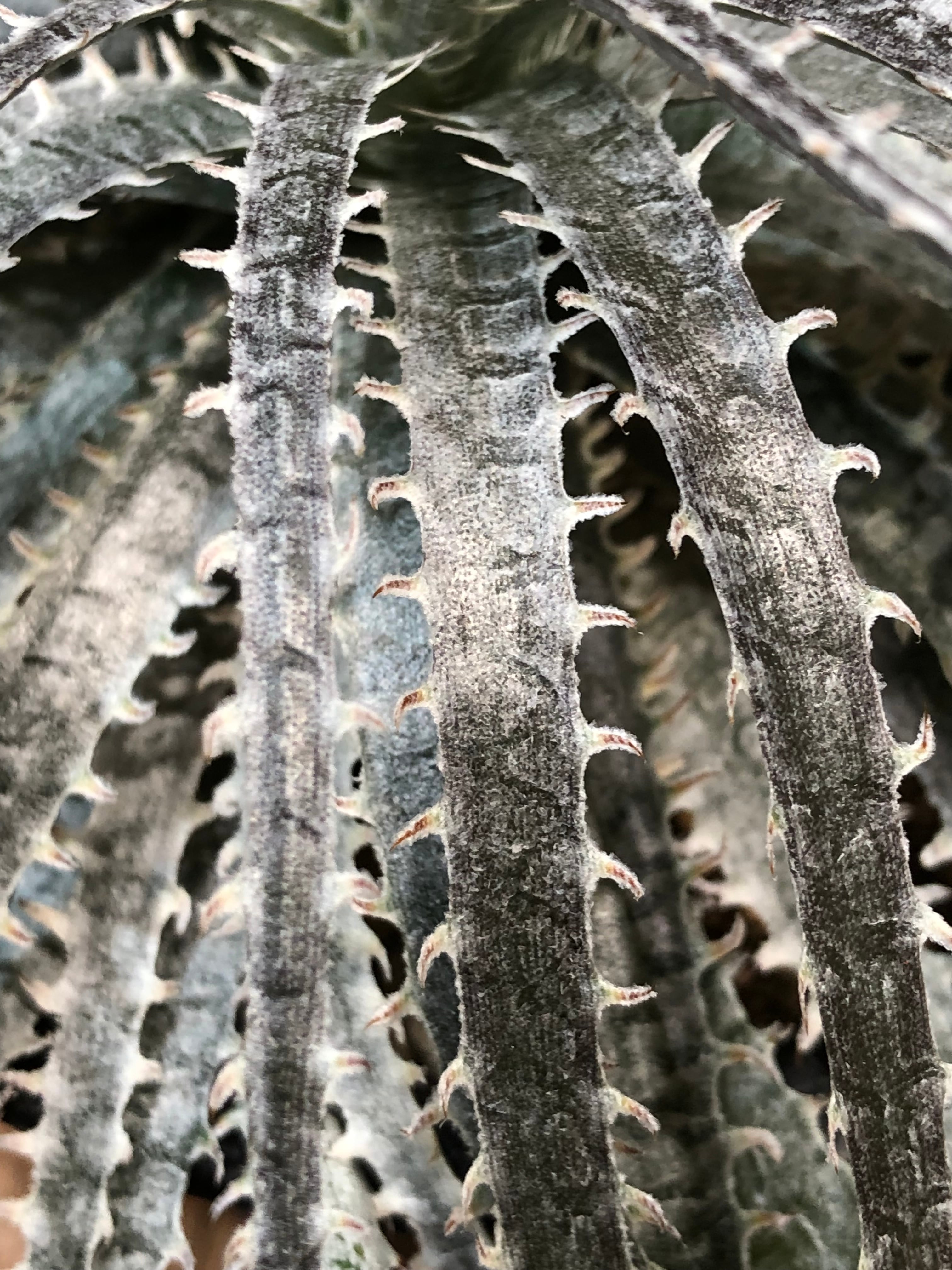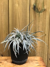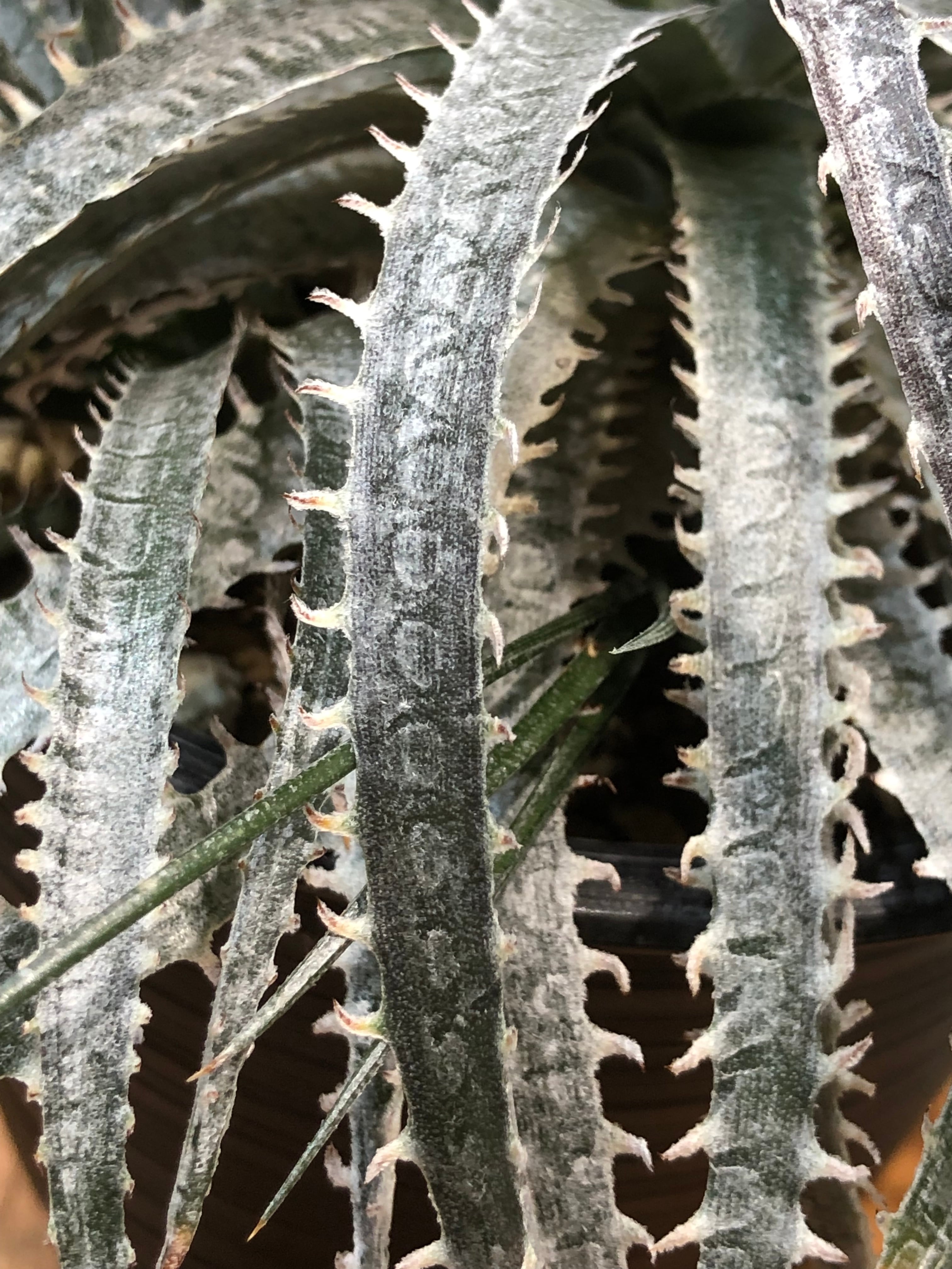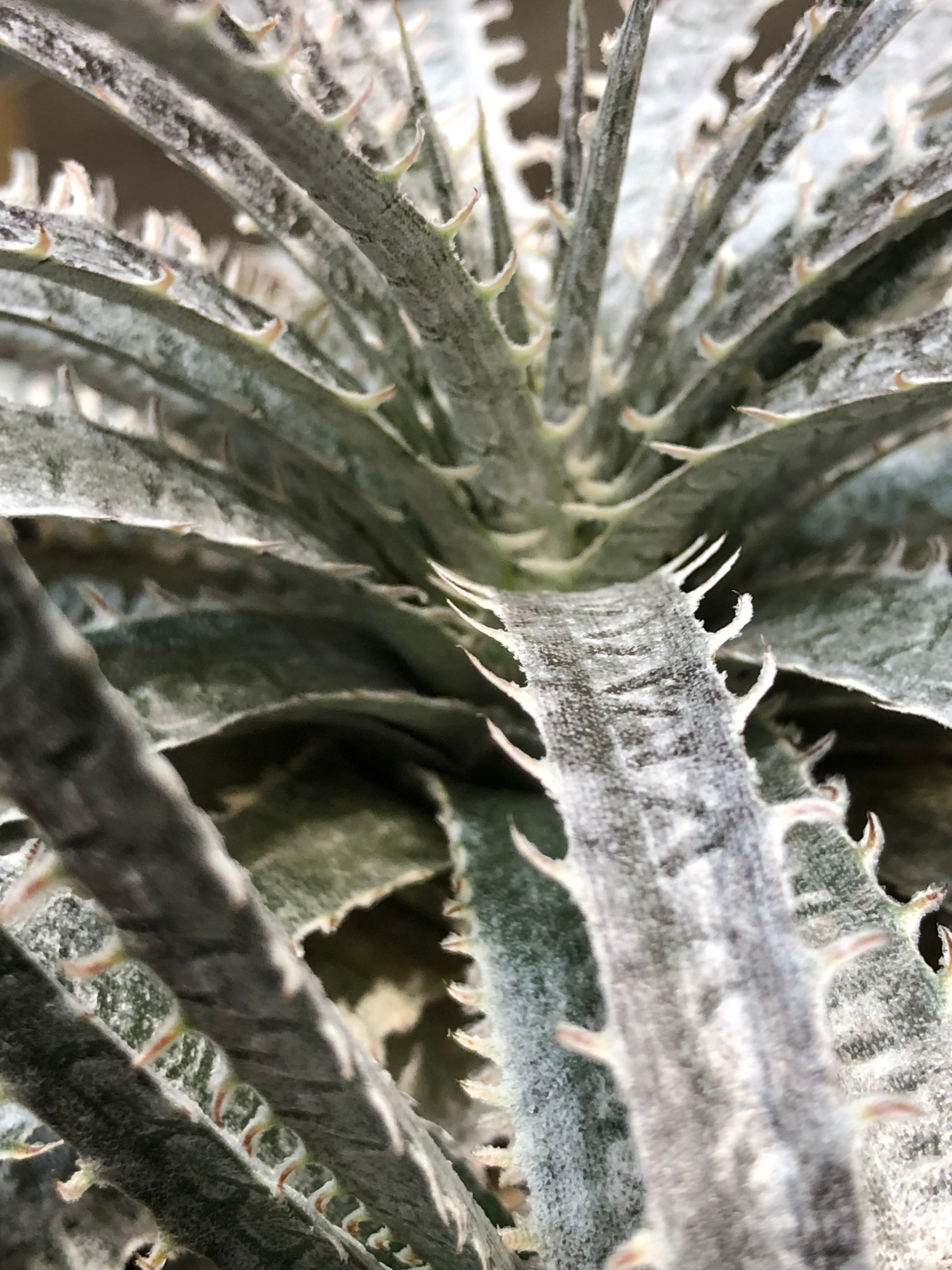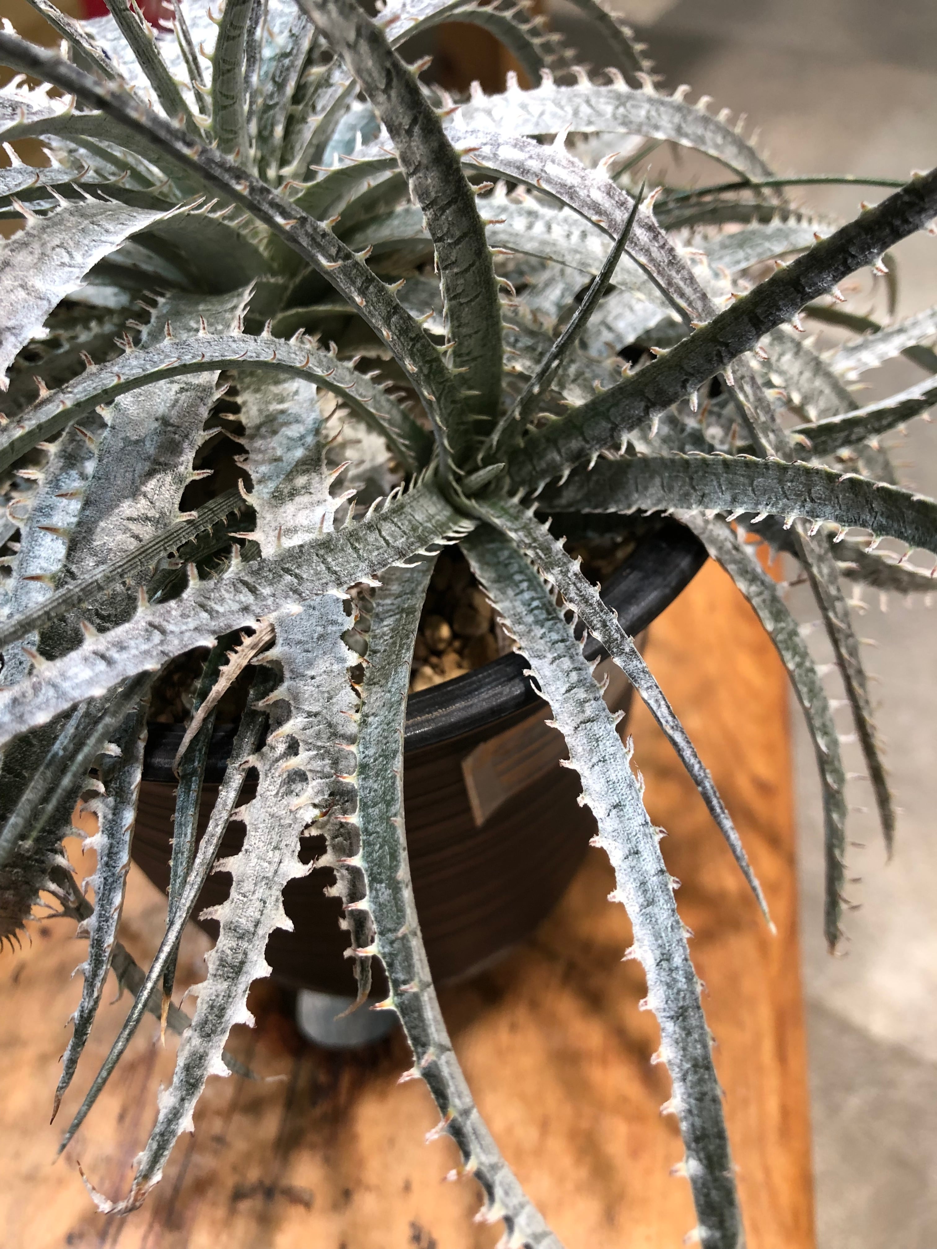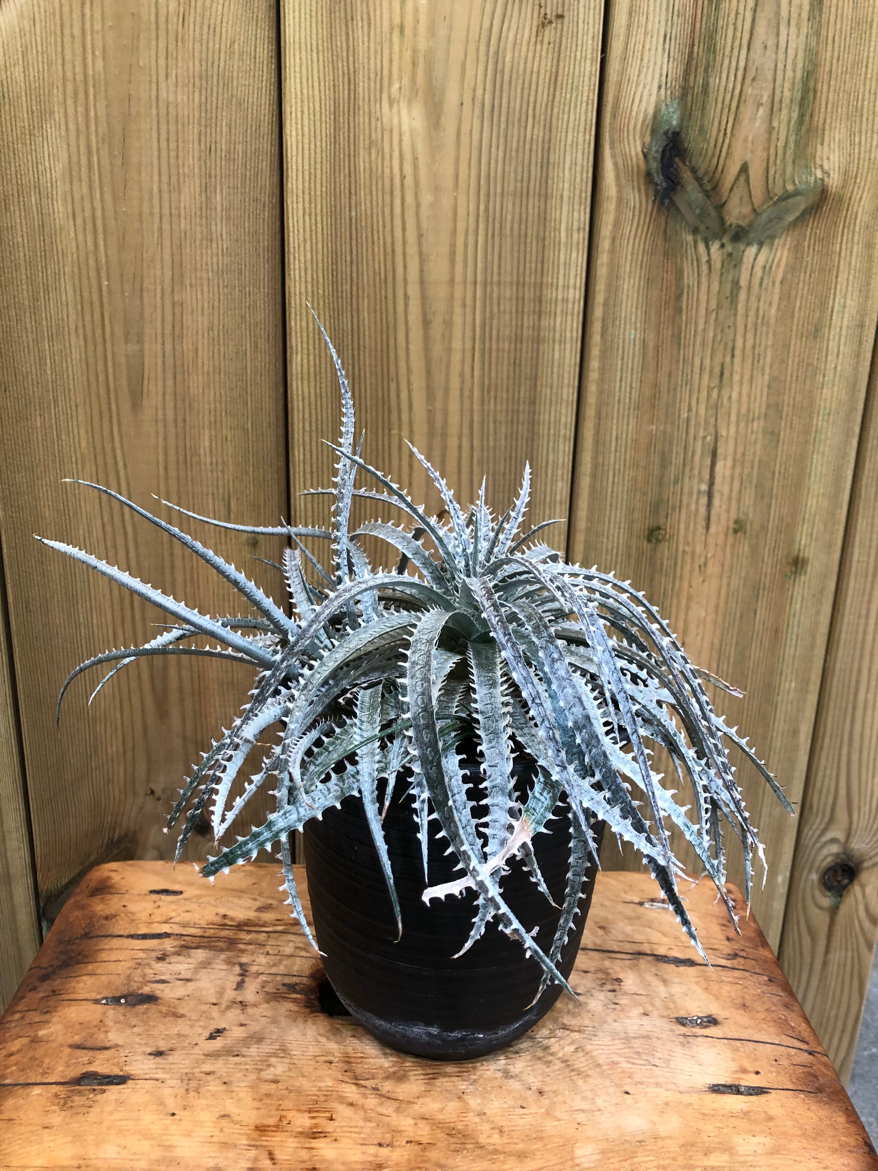 ブラジル原産のディッキアの交配種で名前の通りムカデの様な硬くて細めの葉をロゼット形に展開します。