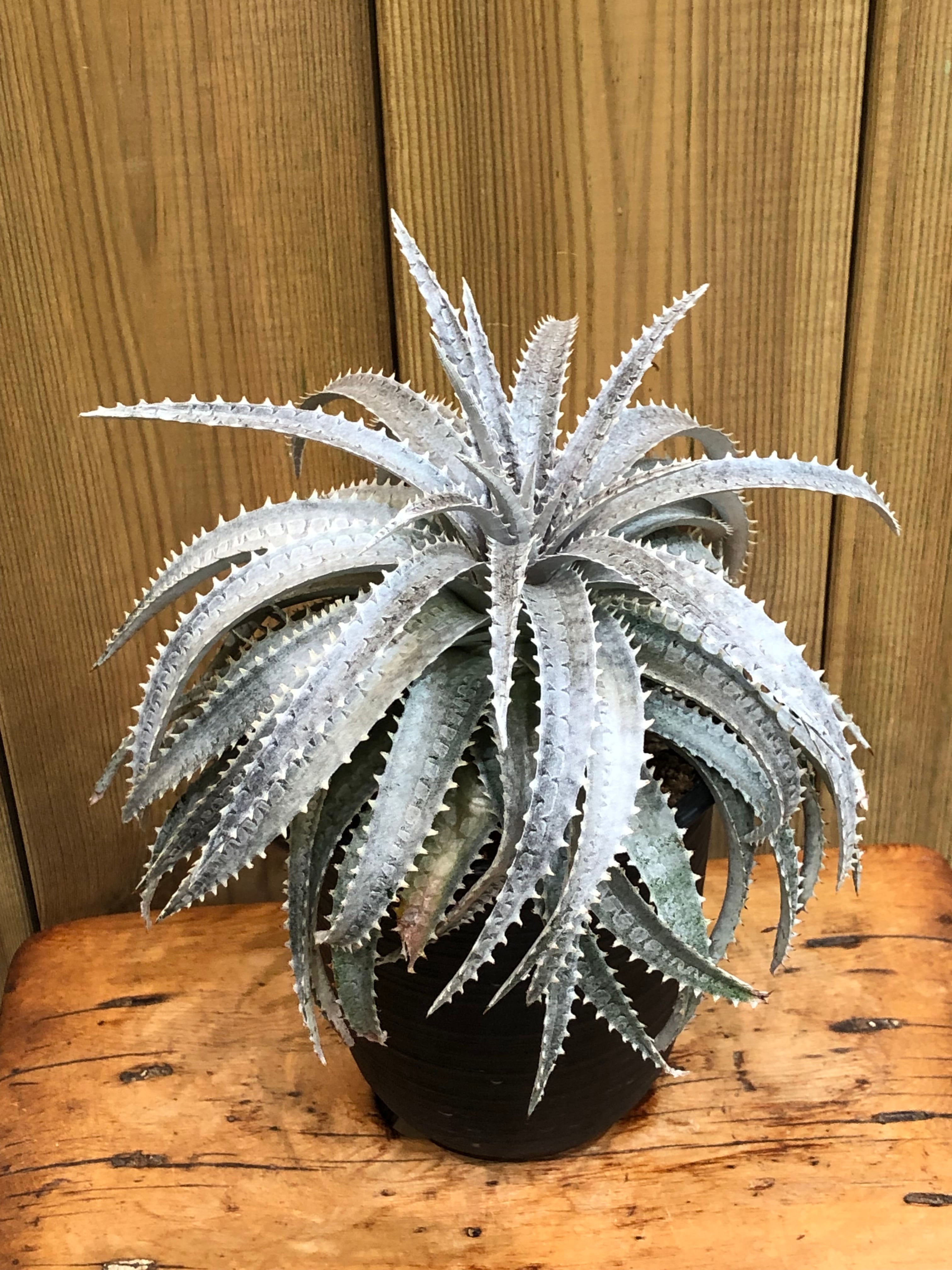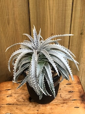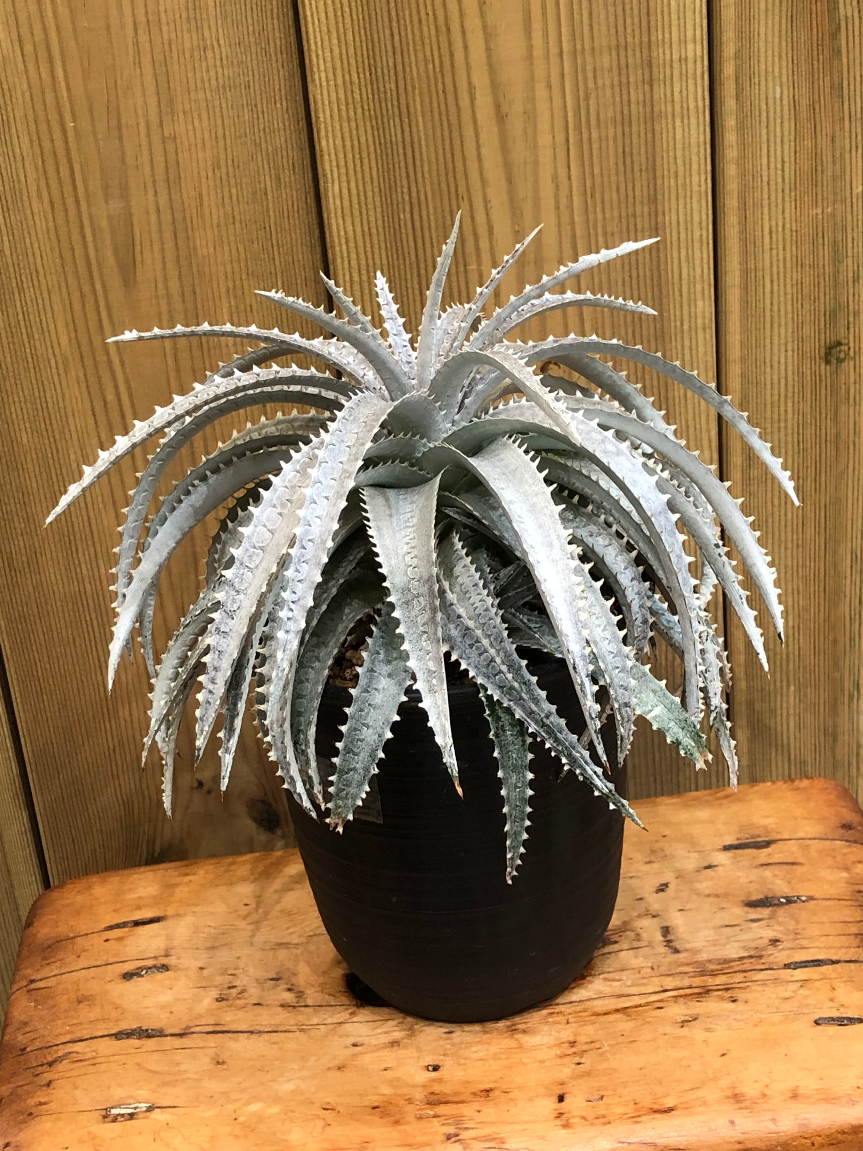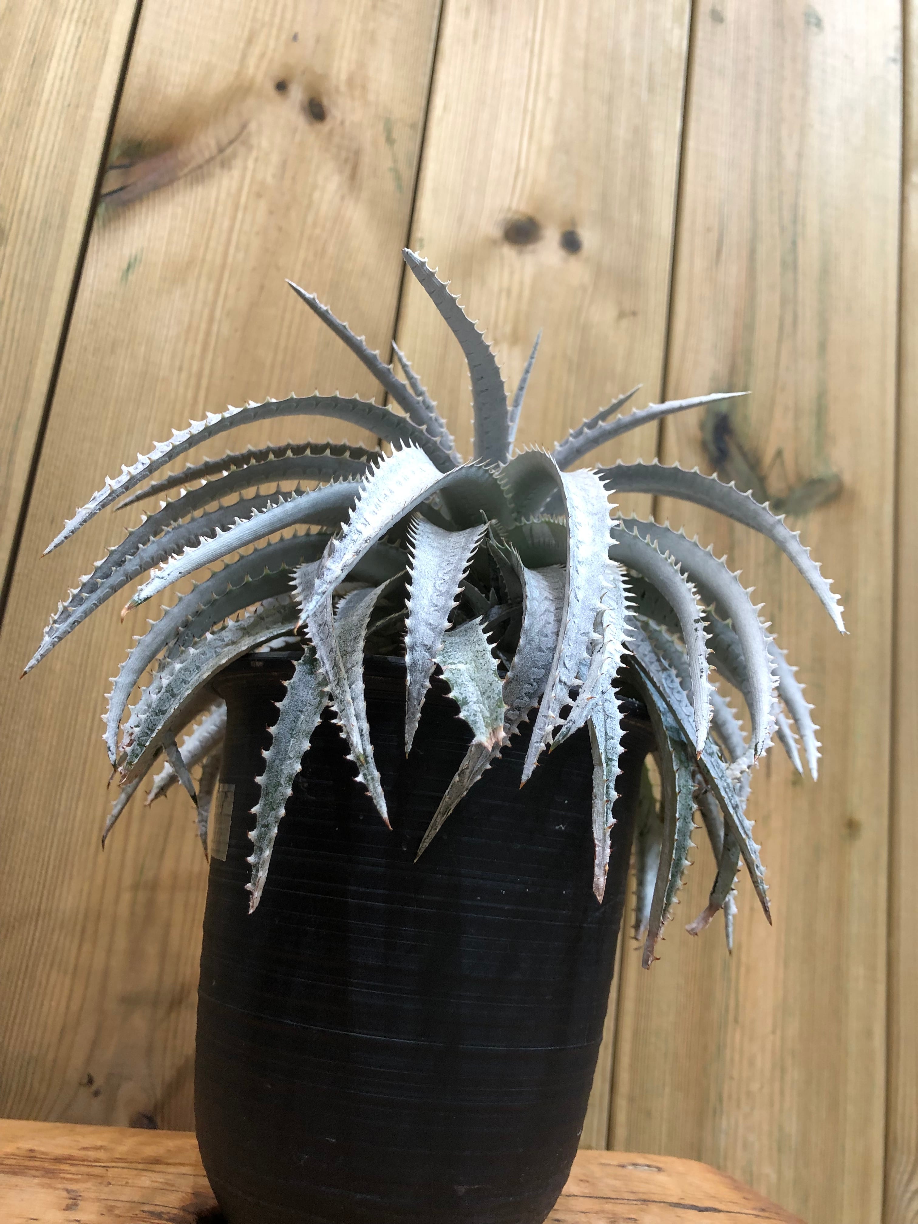 ブラジル原産のディッキアの交配種で、マルニエルラポストレイが親なだけあり、肉厚で硬い葉にはトリコームが多くかなり白く見え美しい品種です。