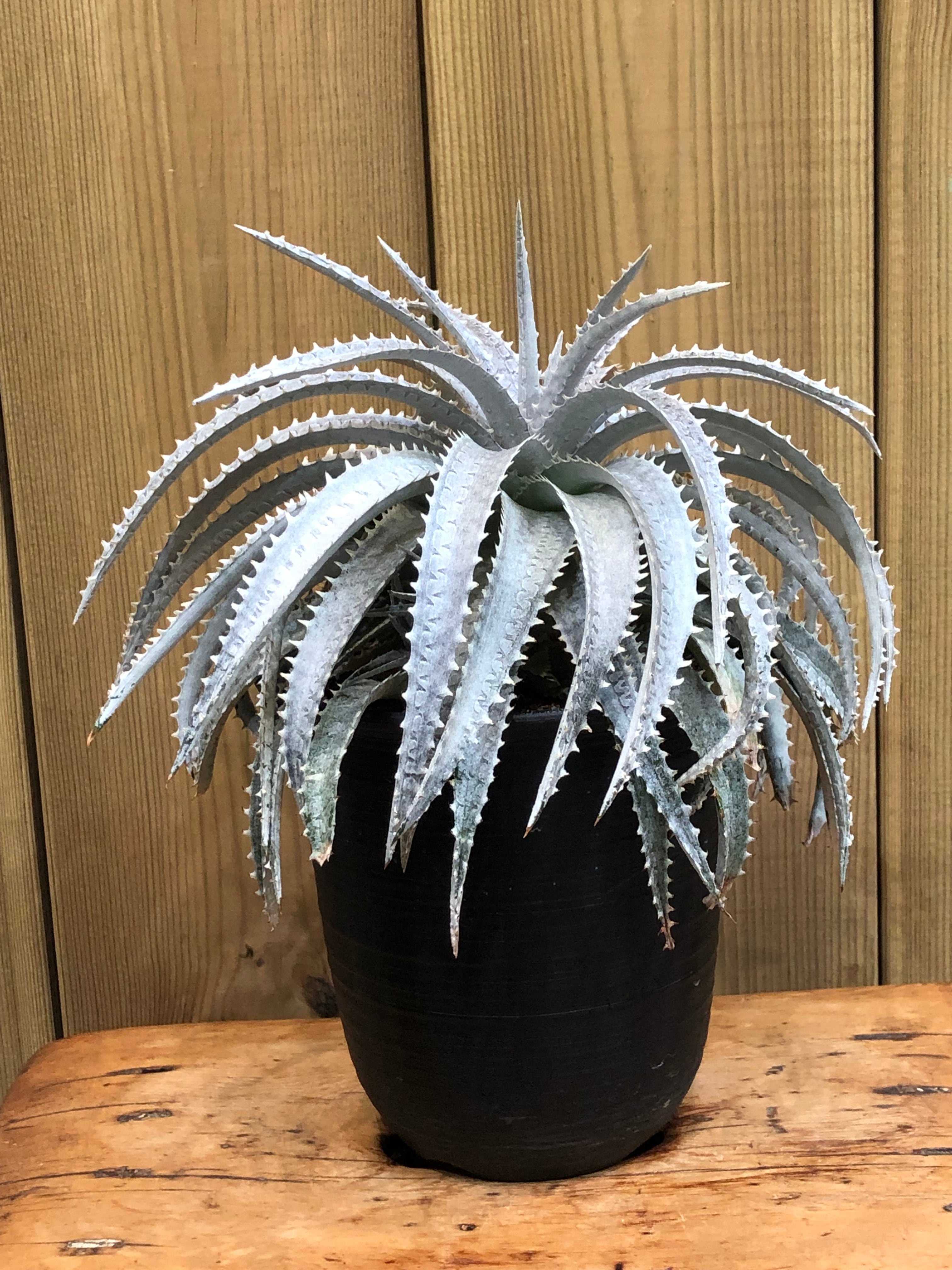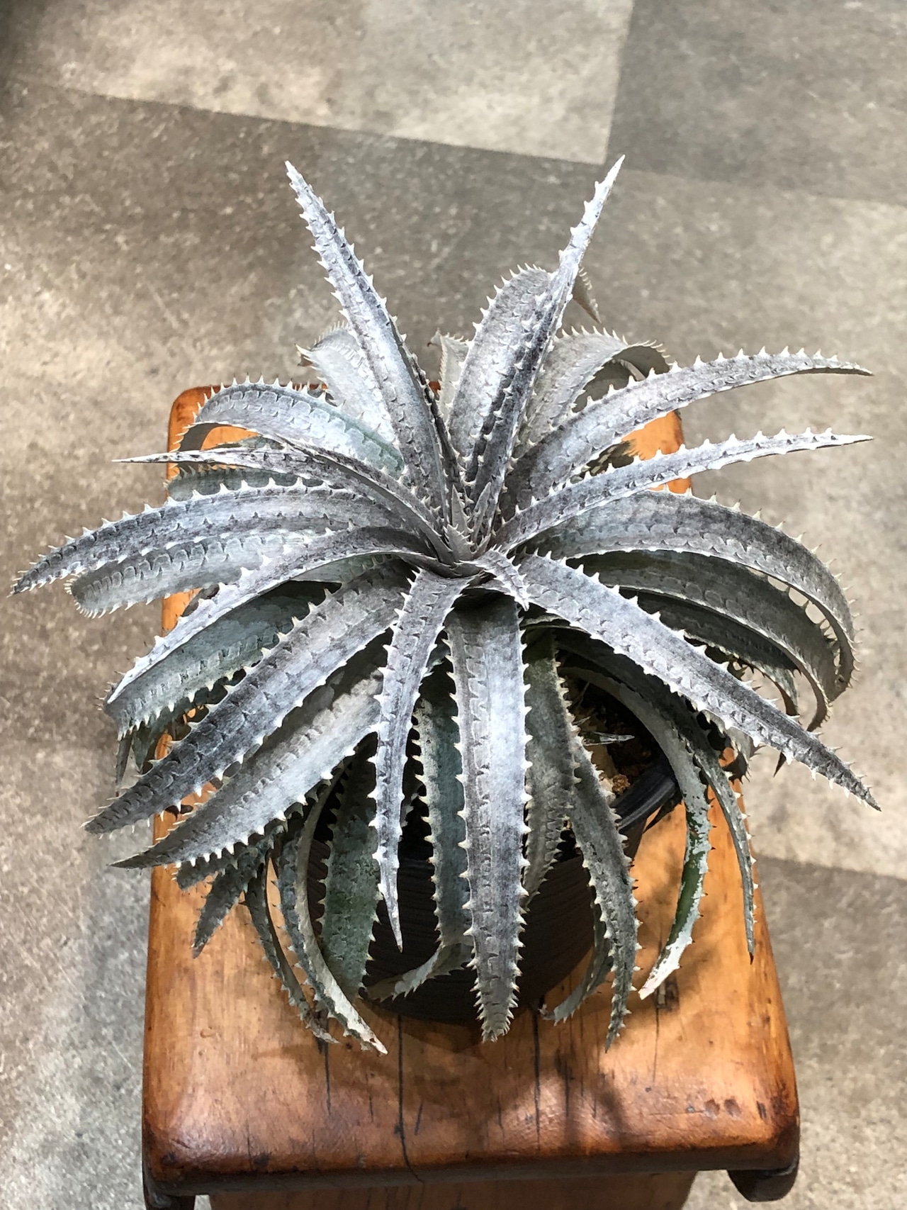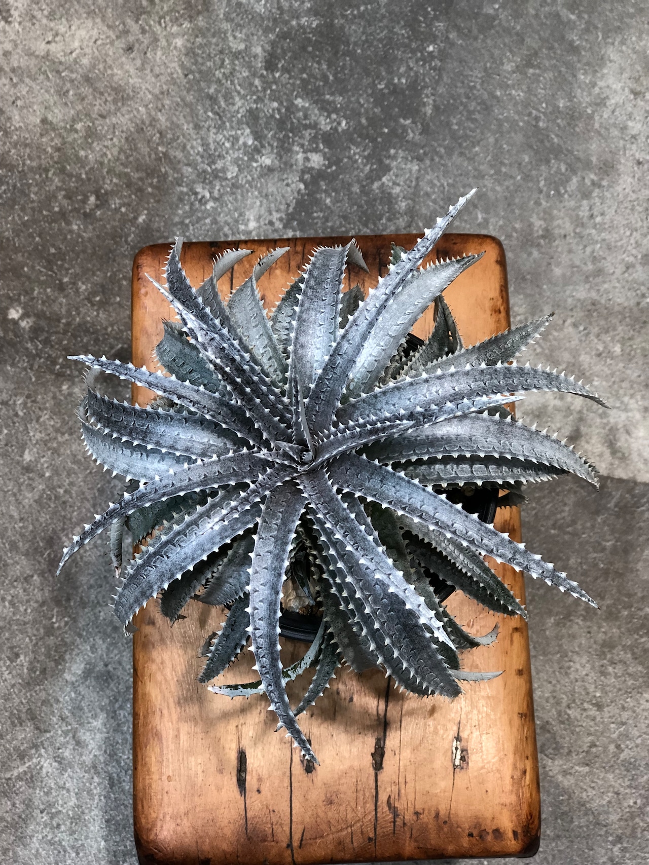 ブラジル原産のディッキアの交配種で、マルニエルラポストレイが親なだけあり、肉厚で硬い葉にはトリコームが多くかなり白く見え美しい品種です。