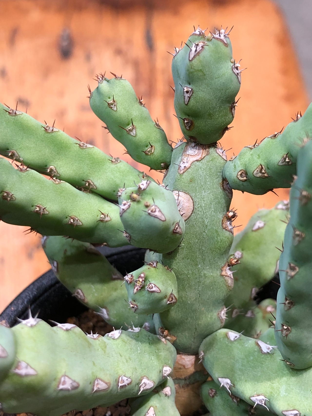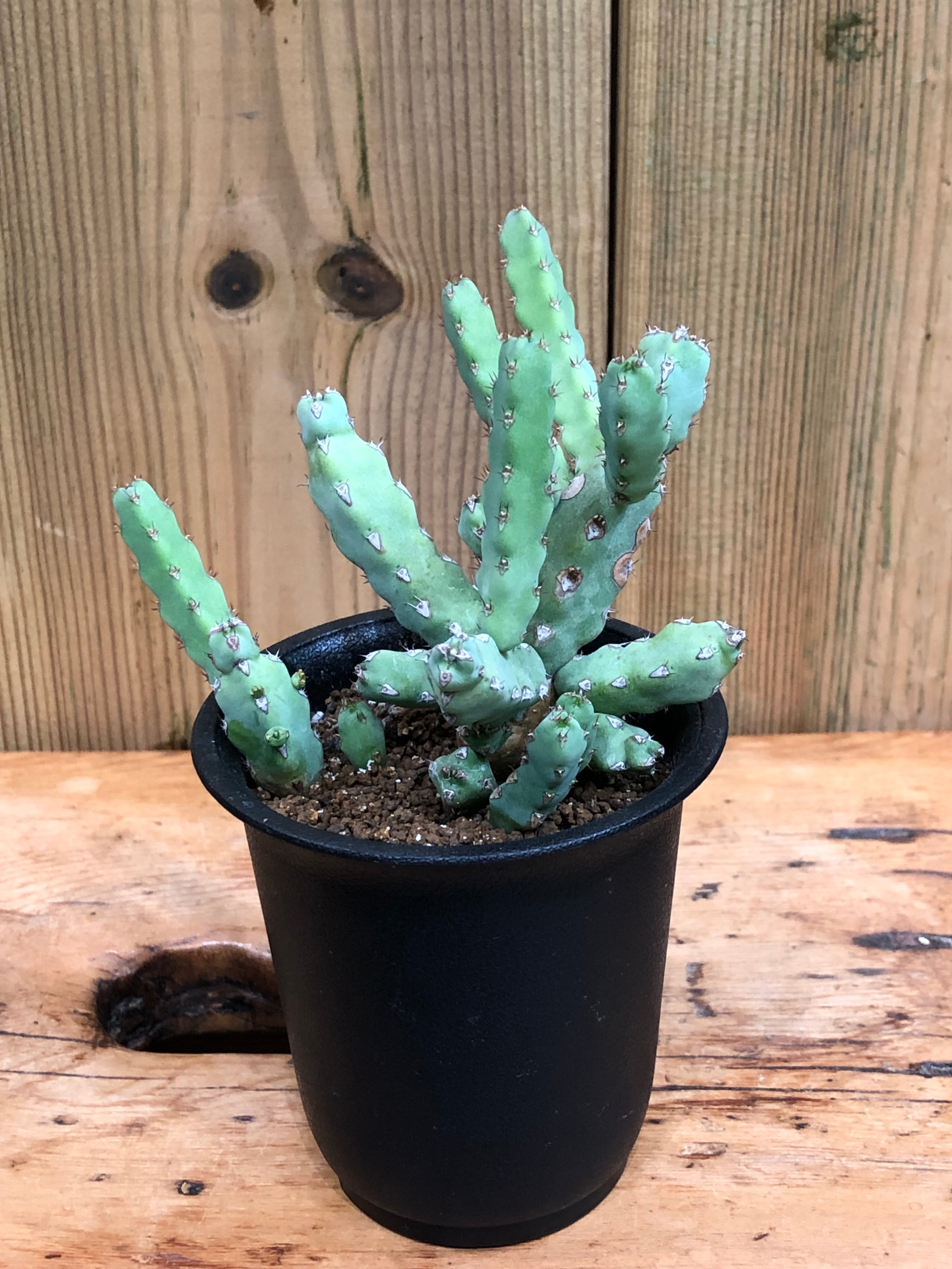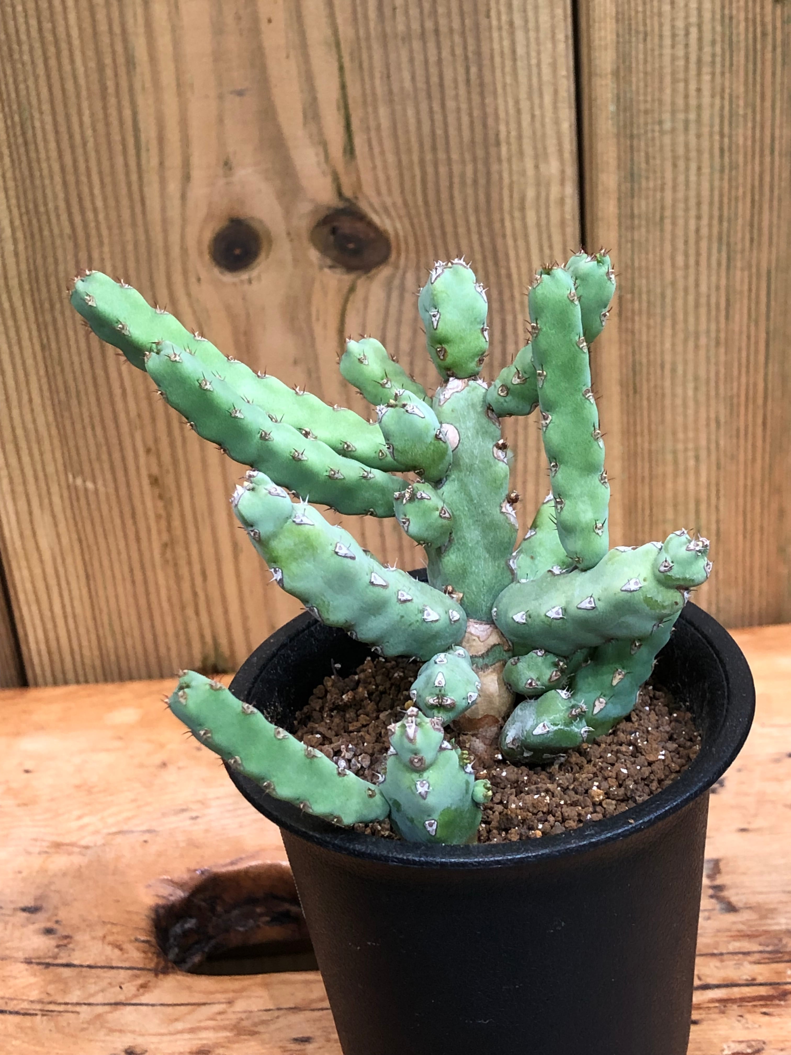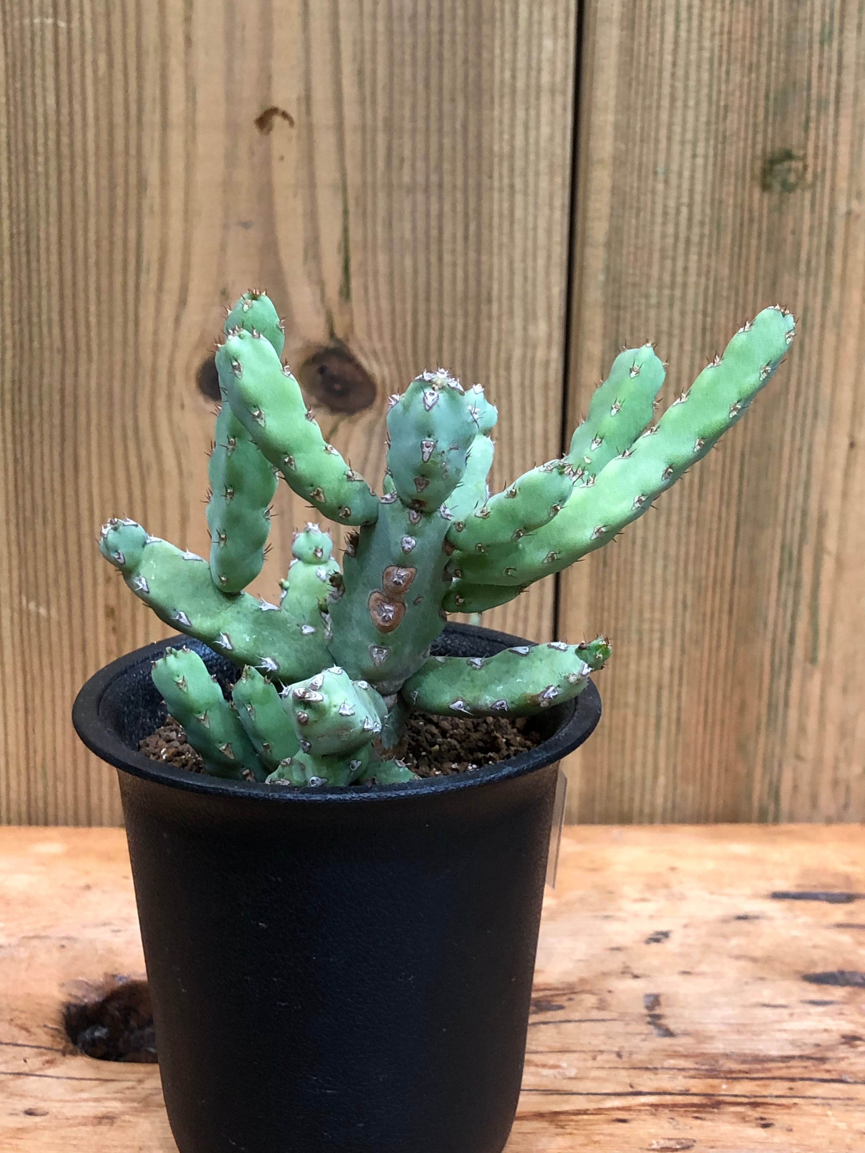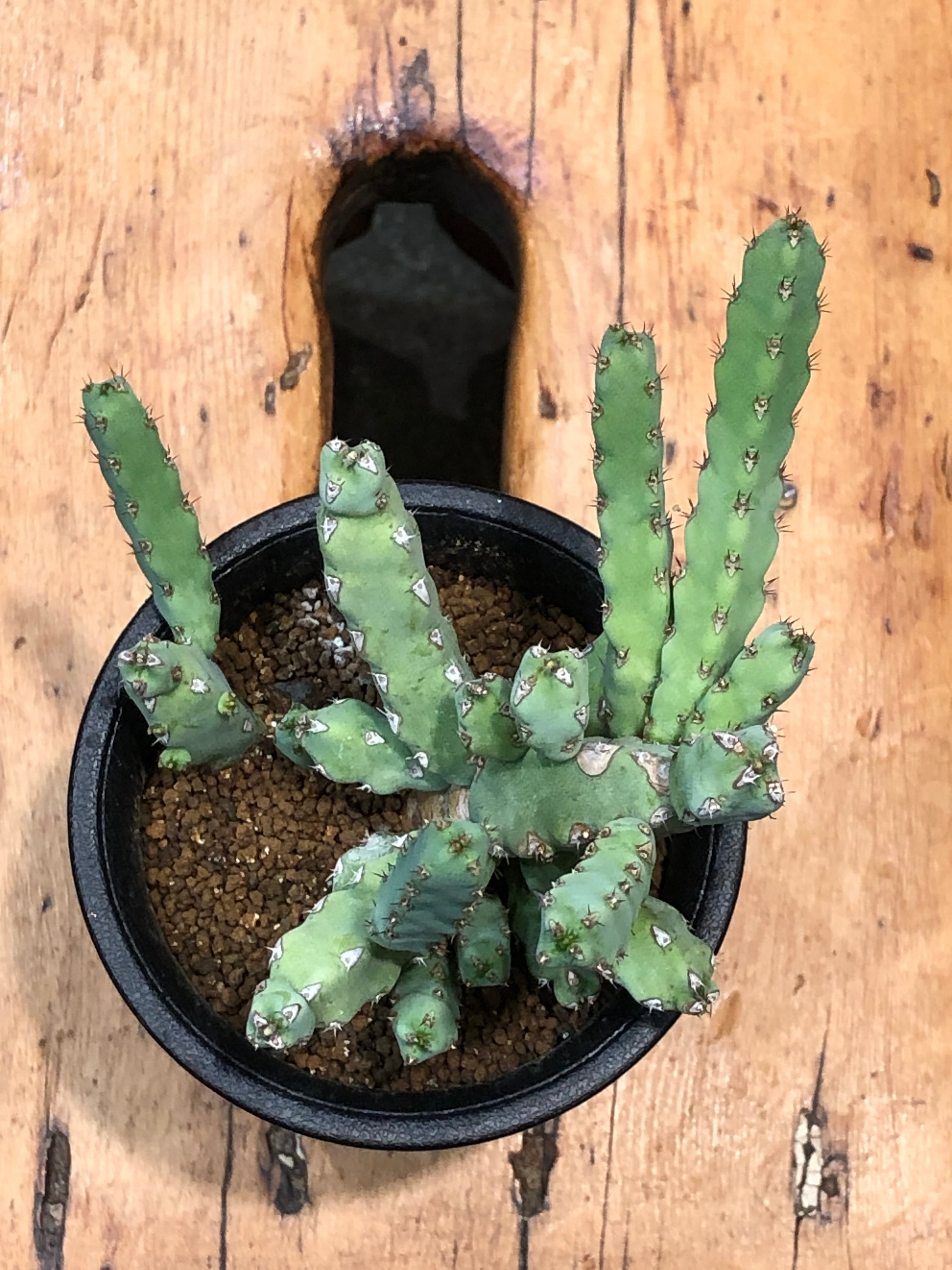 稜に沿って小さな棘があり小さなサボテンの様でもあり、株元から木質化します。