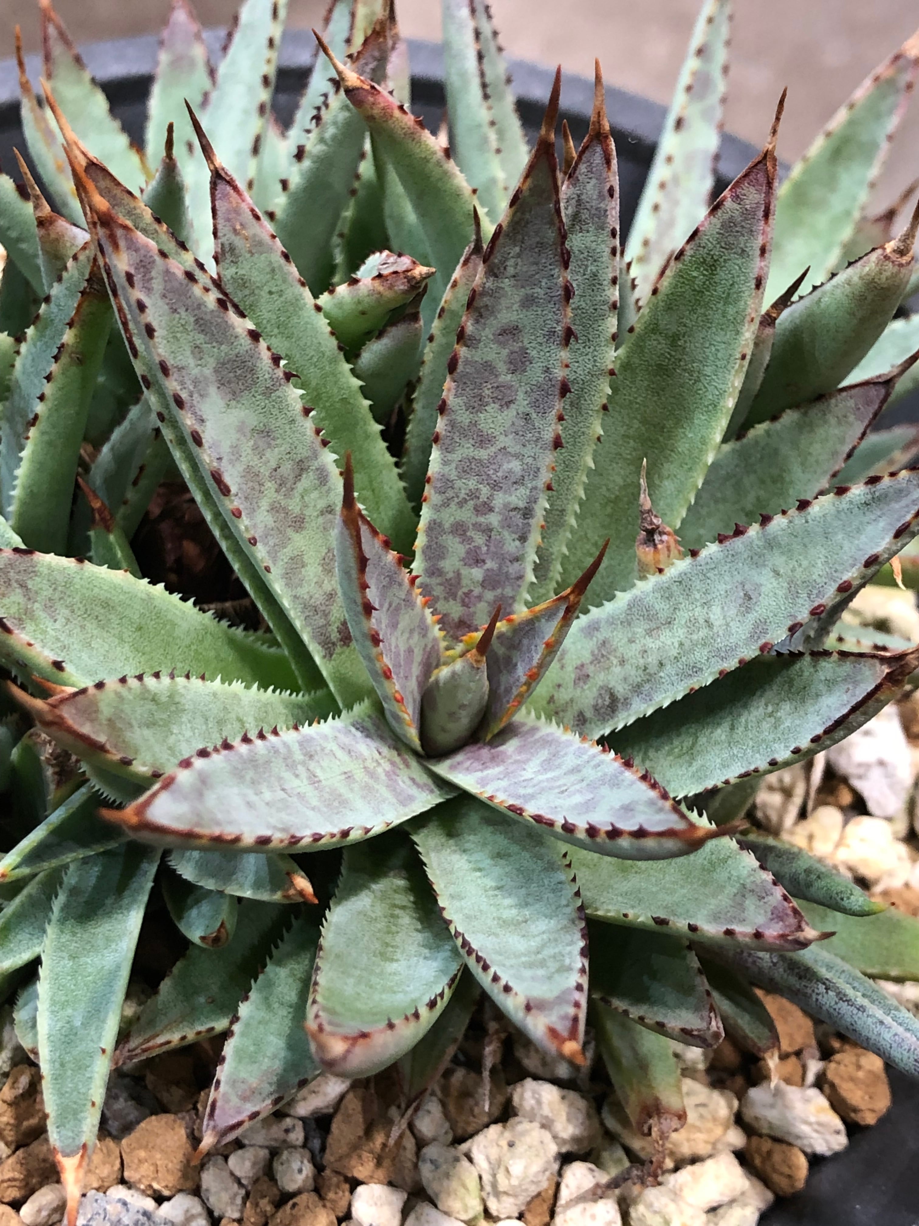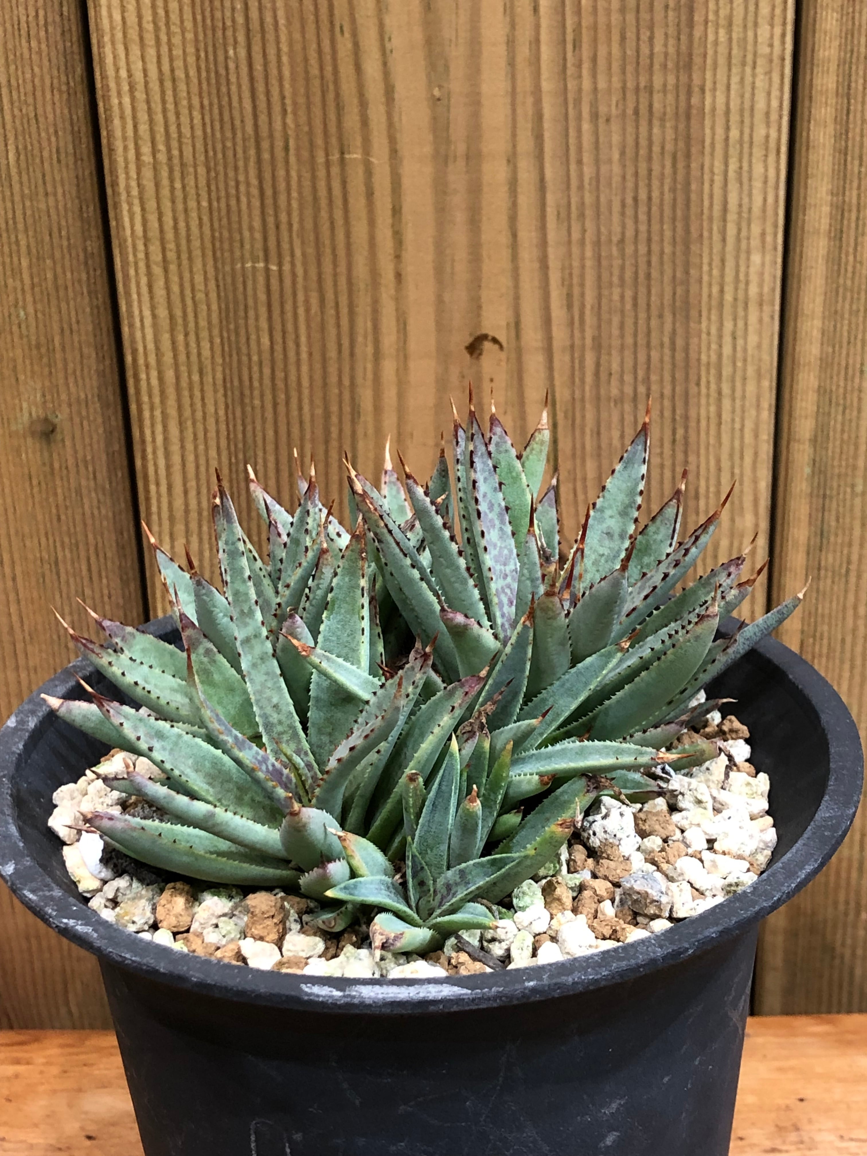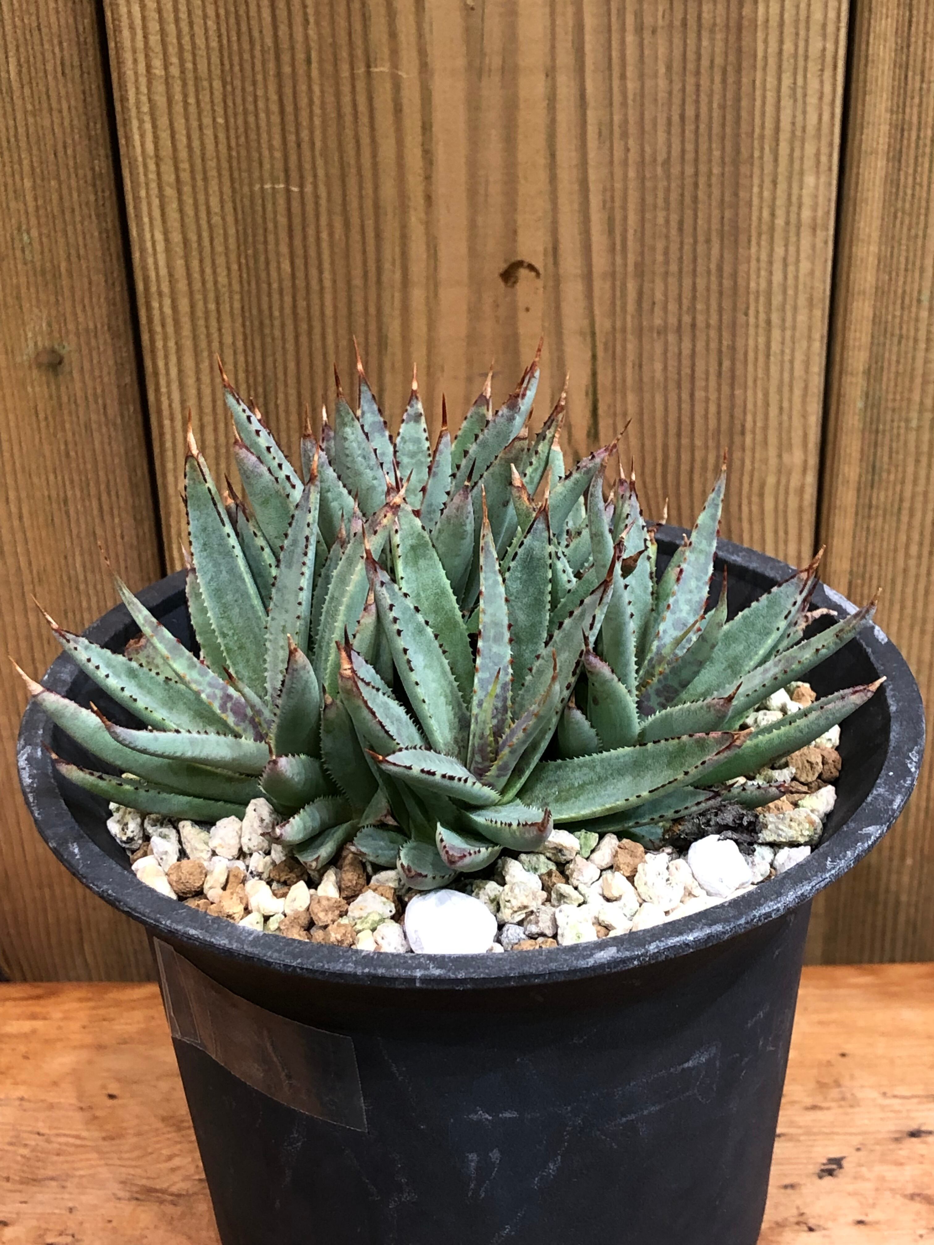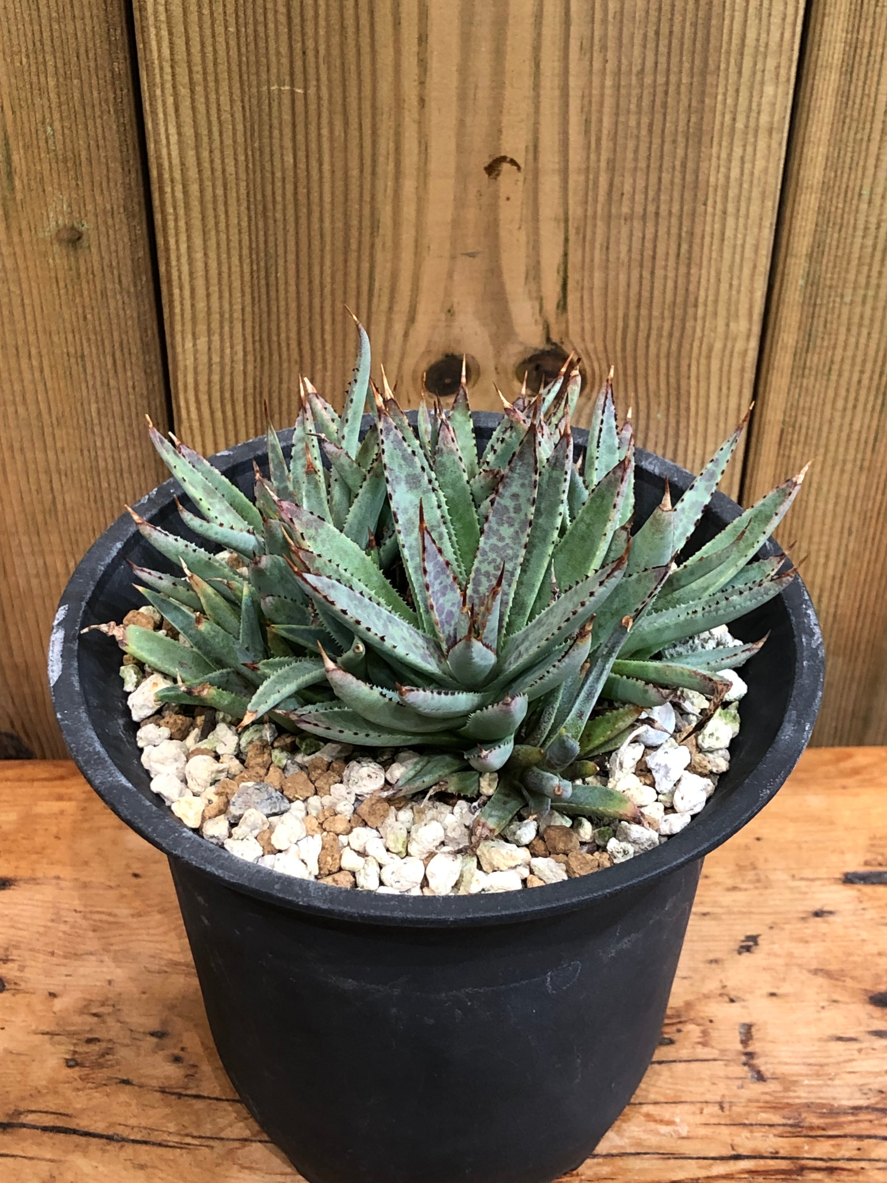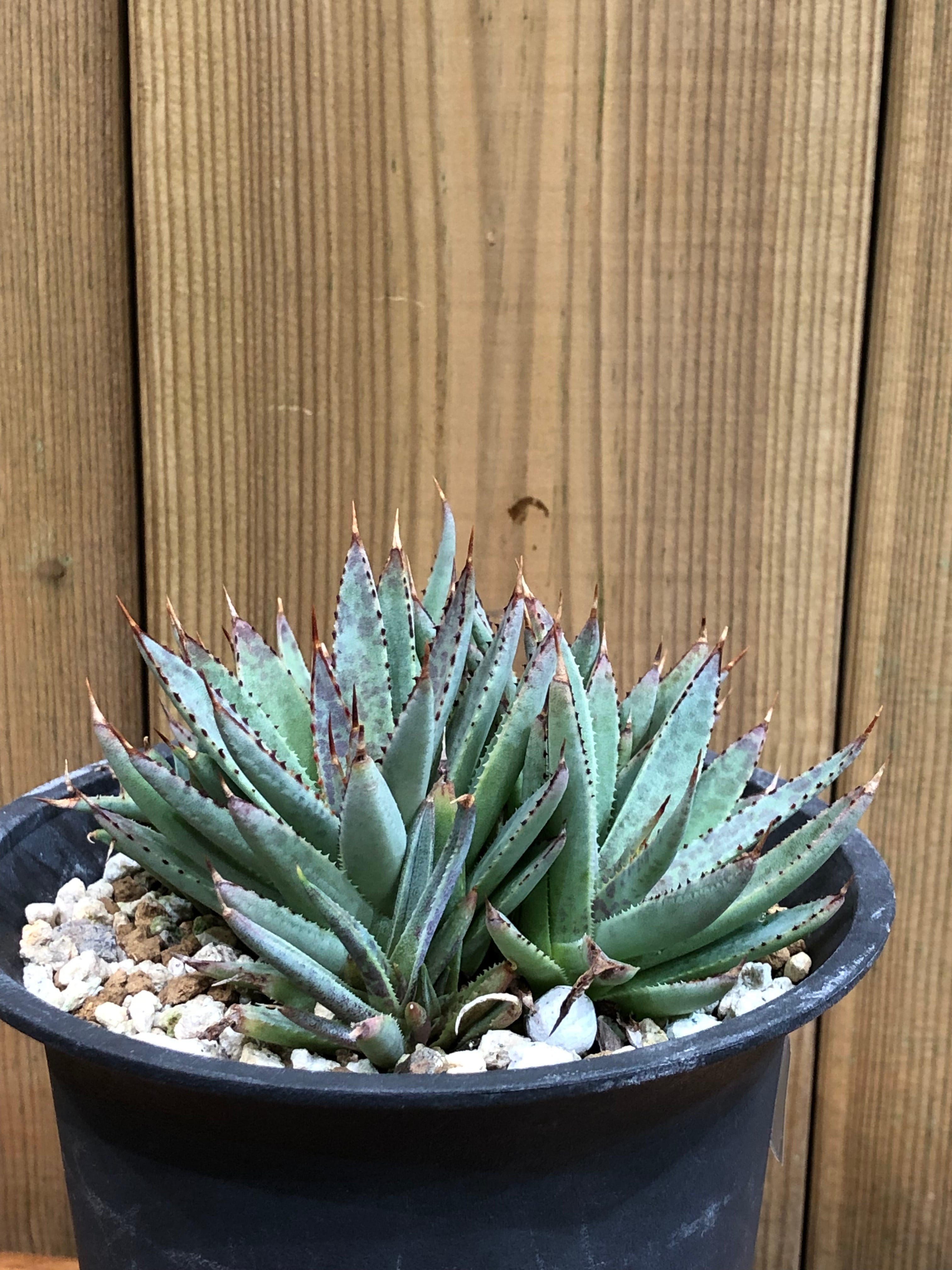 アガベには無い葉模様でアガベに比べて少し葉が柔らかく形状も少し違います。