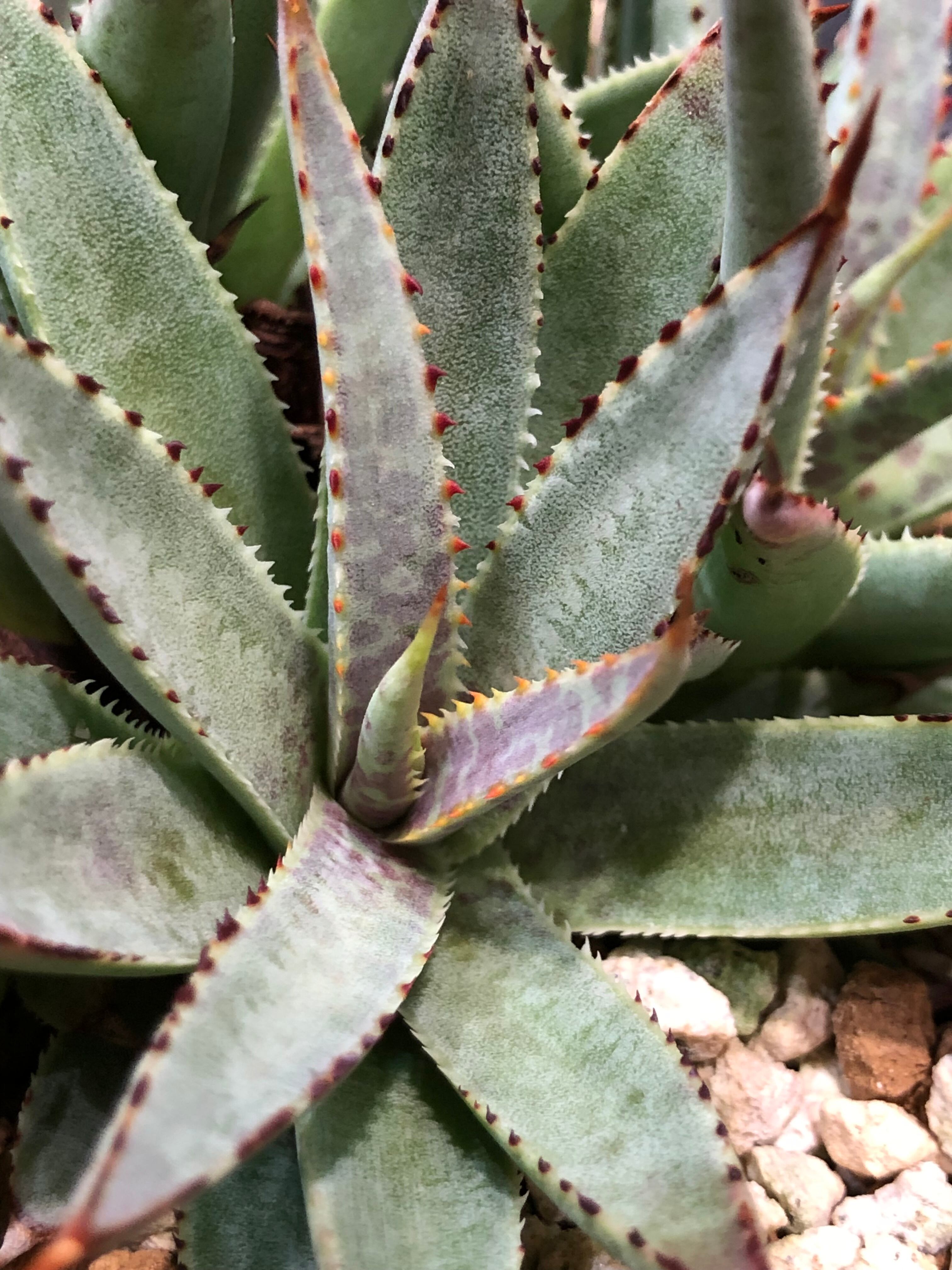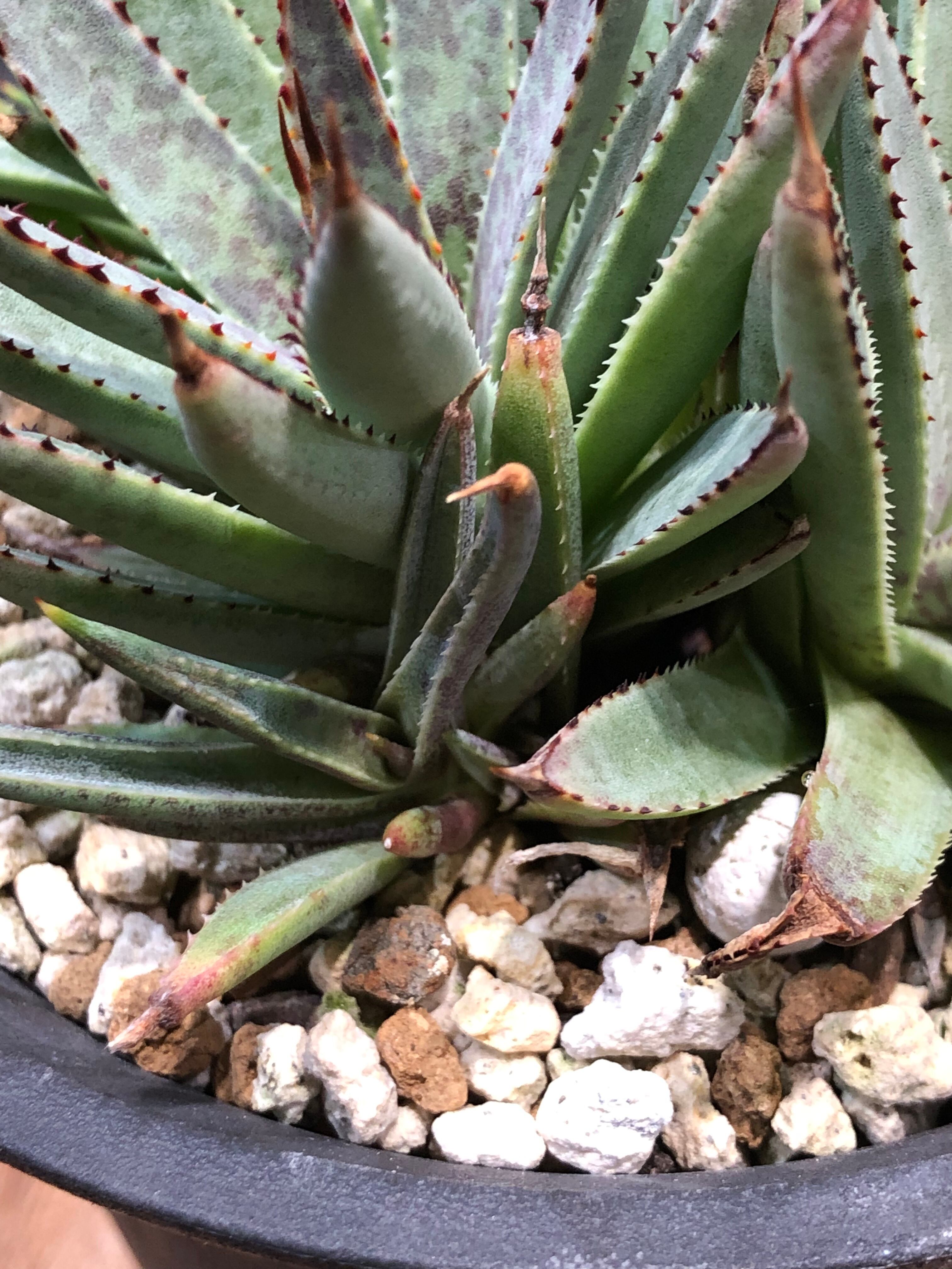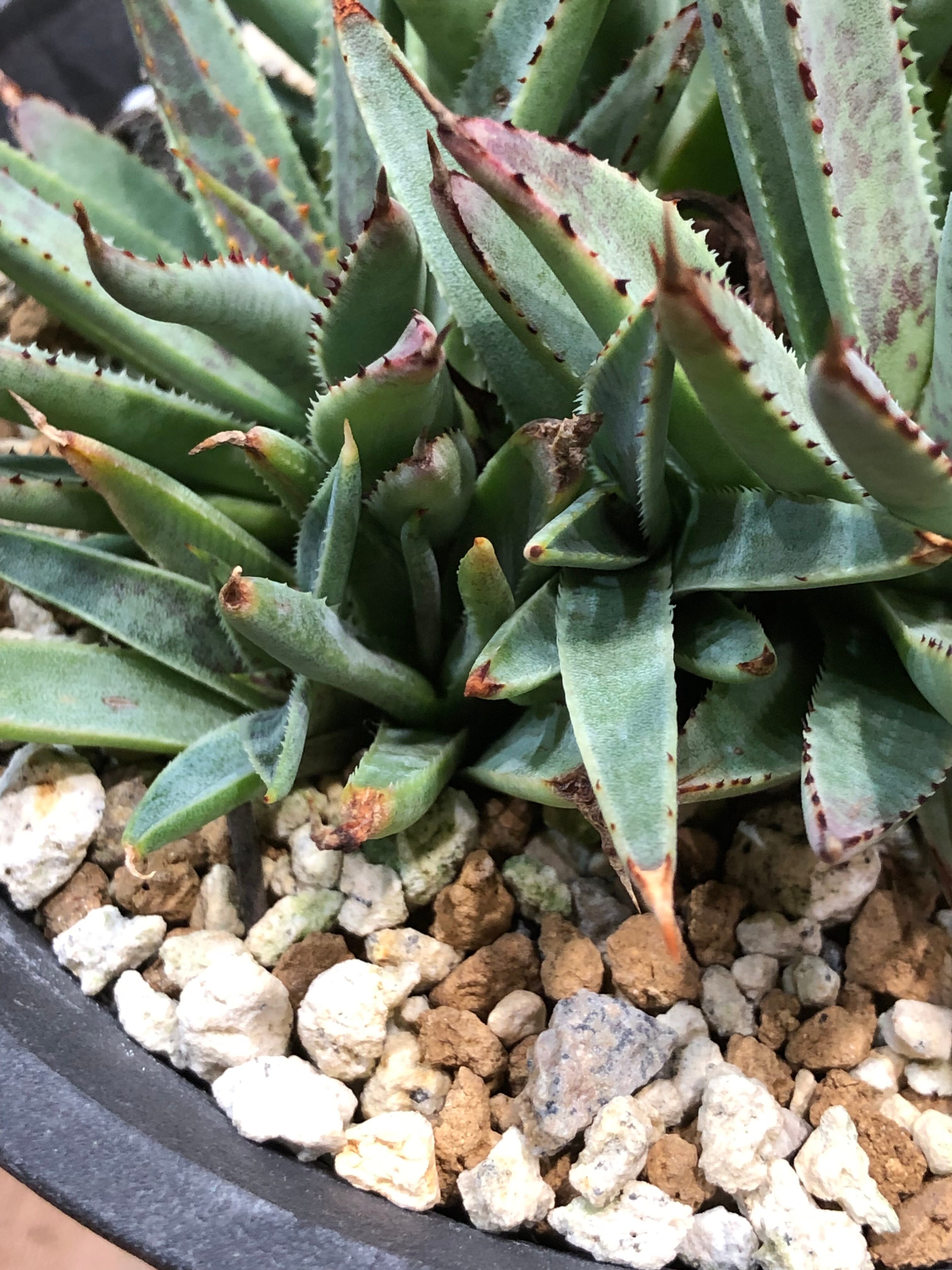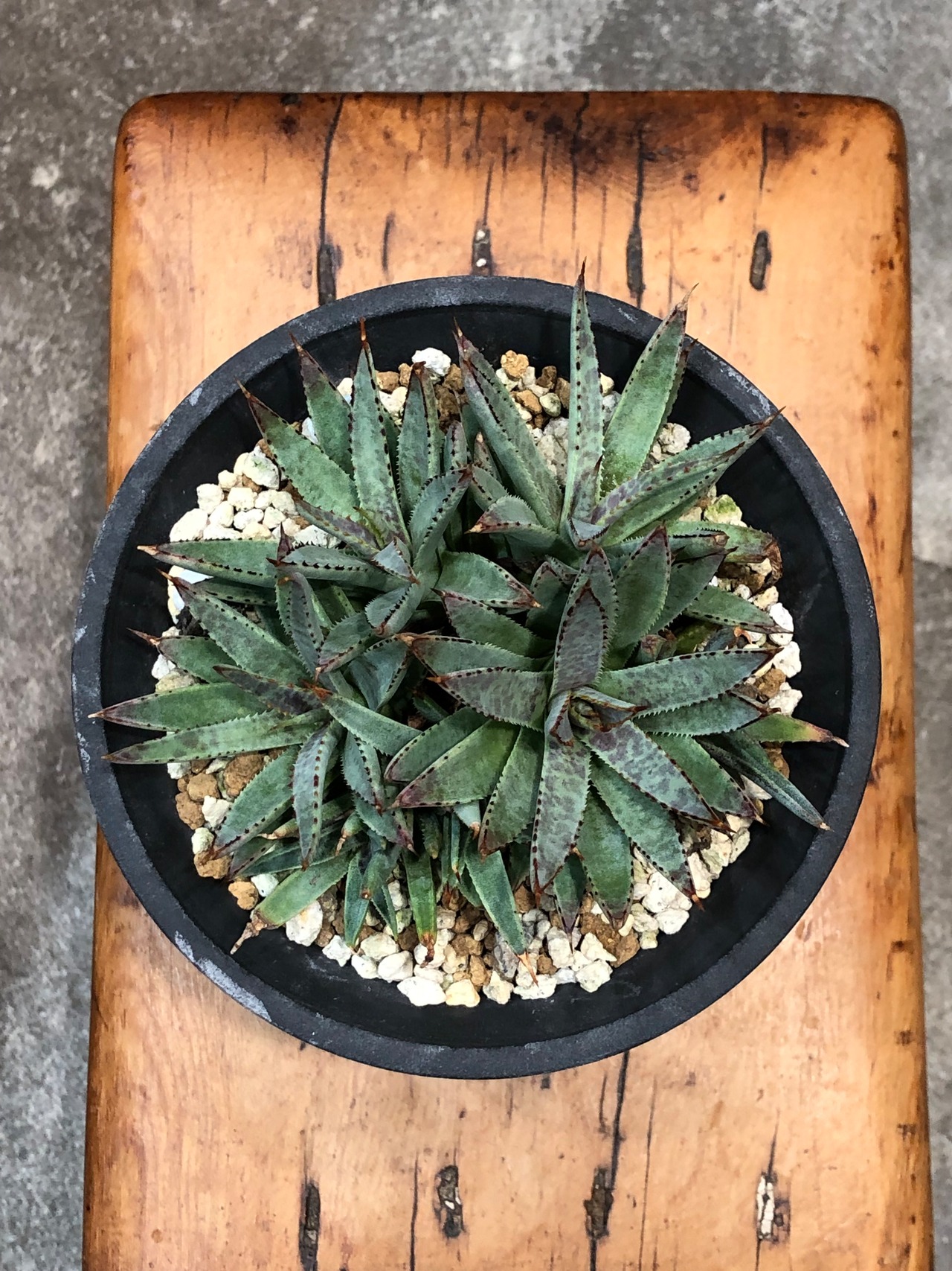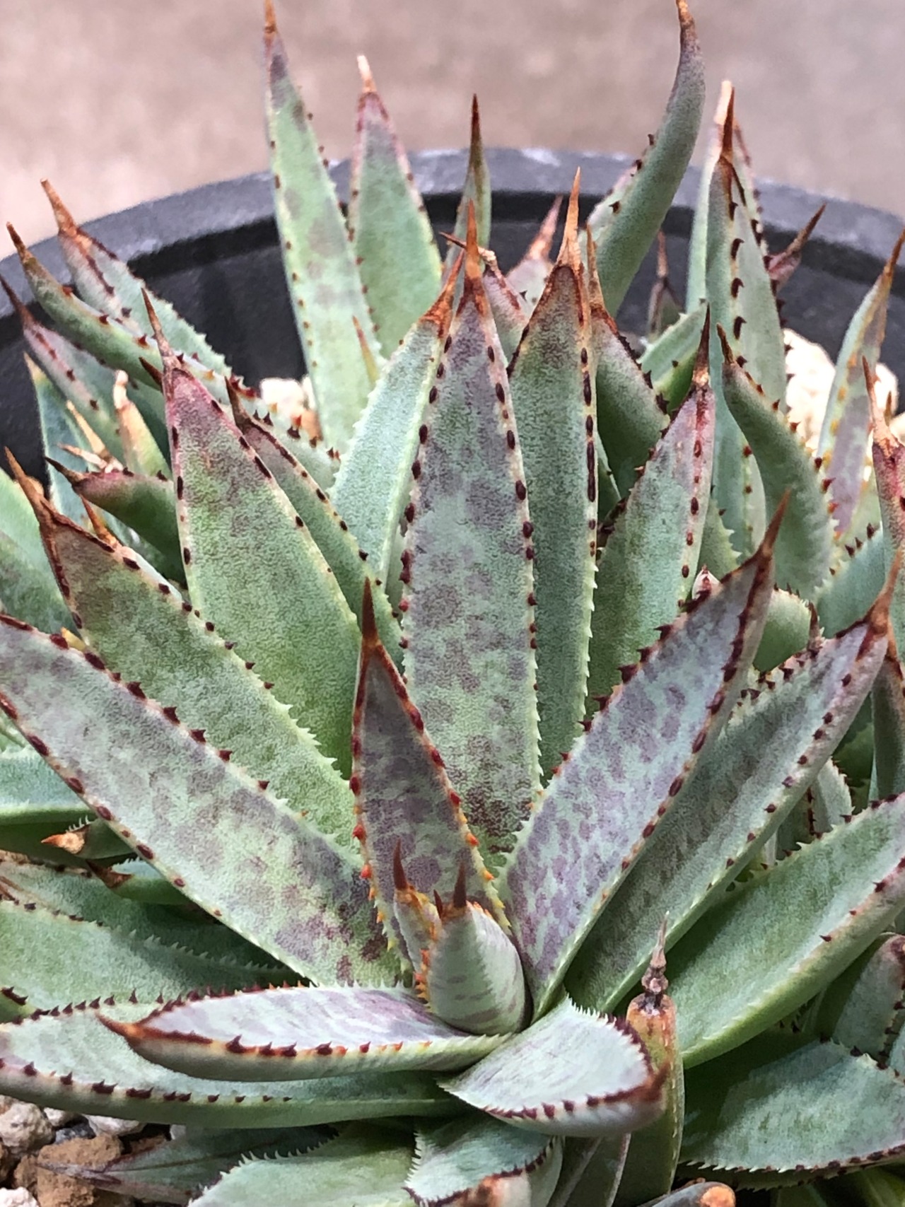 アガベには無い葉模様でアガベに比べて少し葉が柔らかく形状も少し違います。