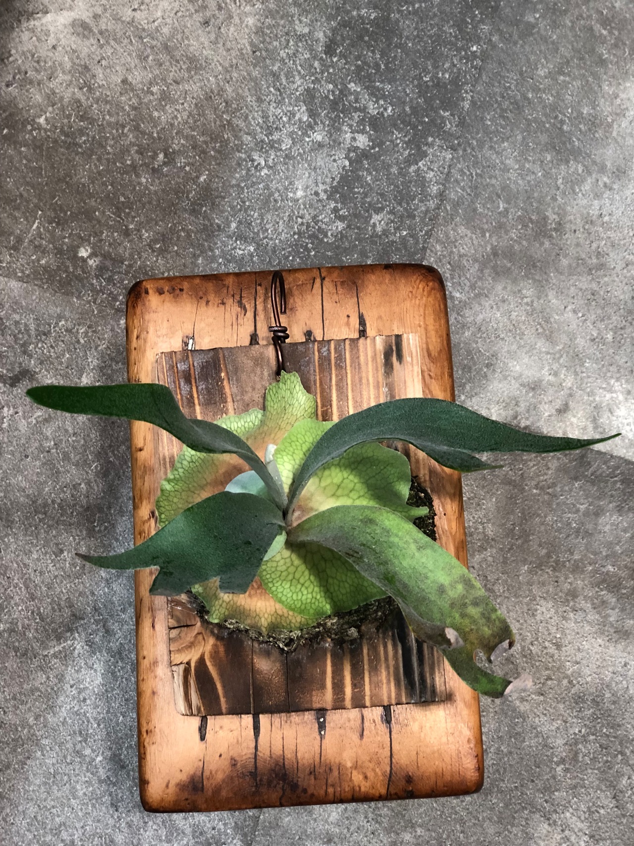 東南アジア原産のウィリンキーの交配種で、胞子葉の切れ込みが深く入り星状毛も多く白くて美しい草姿になります。
