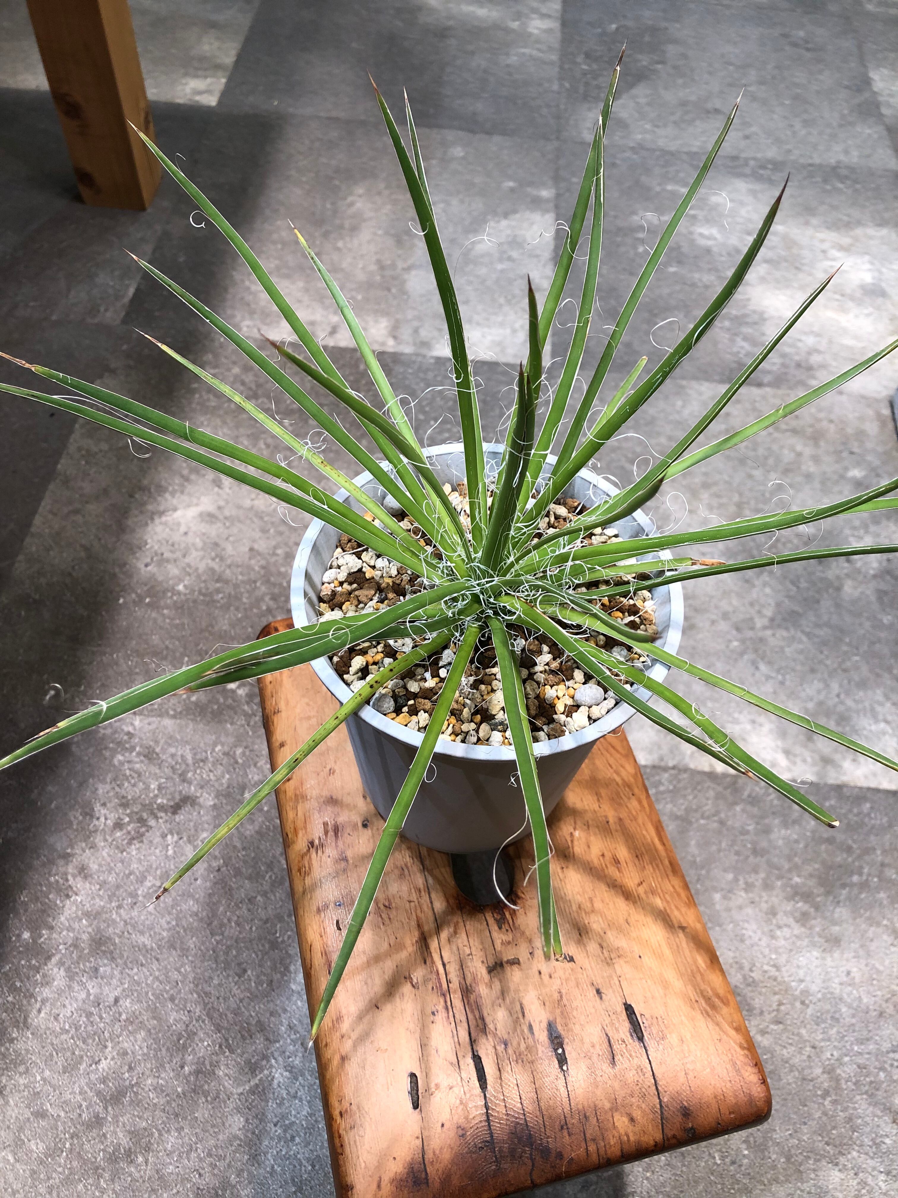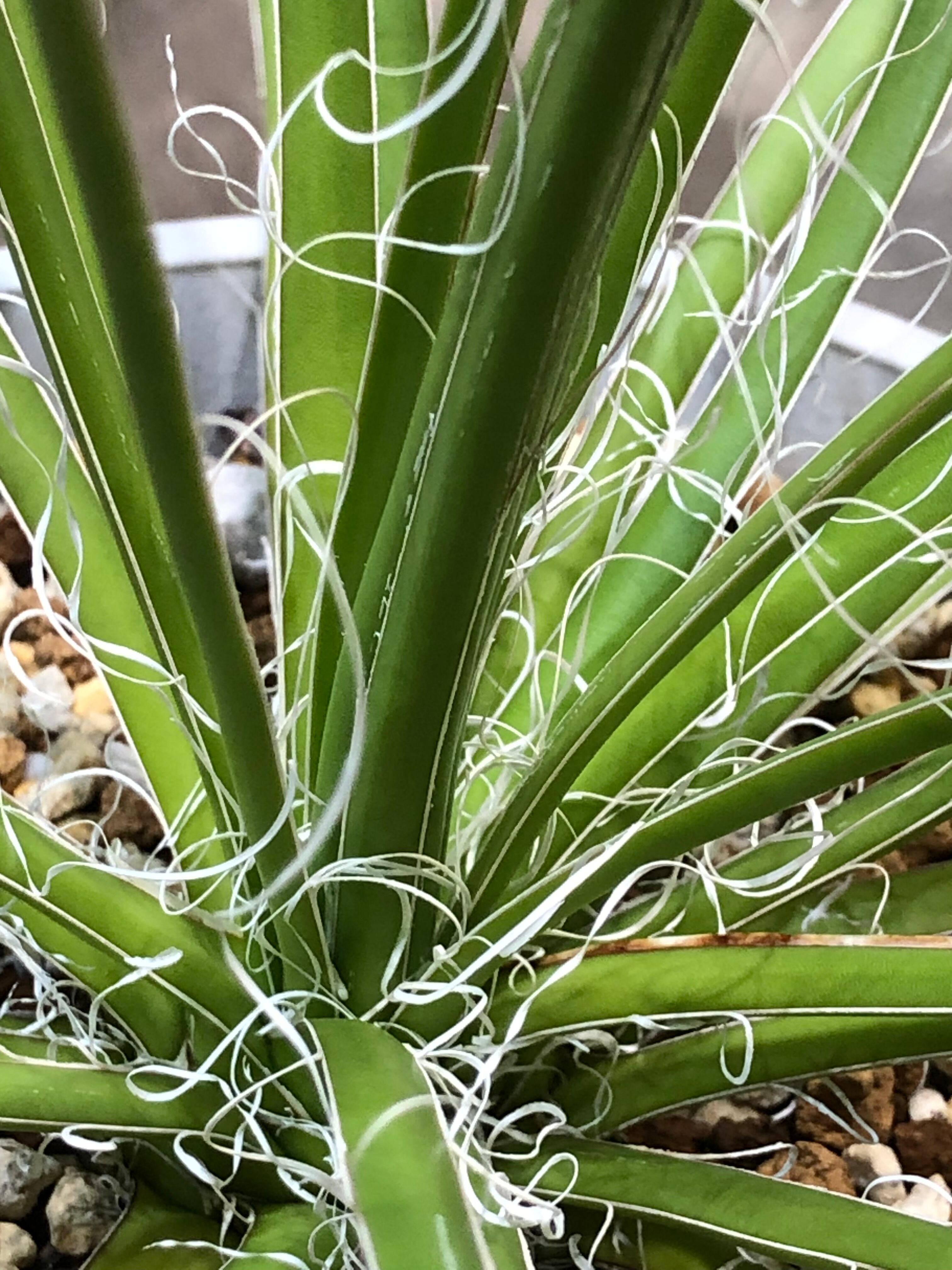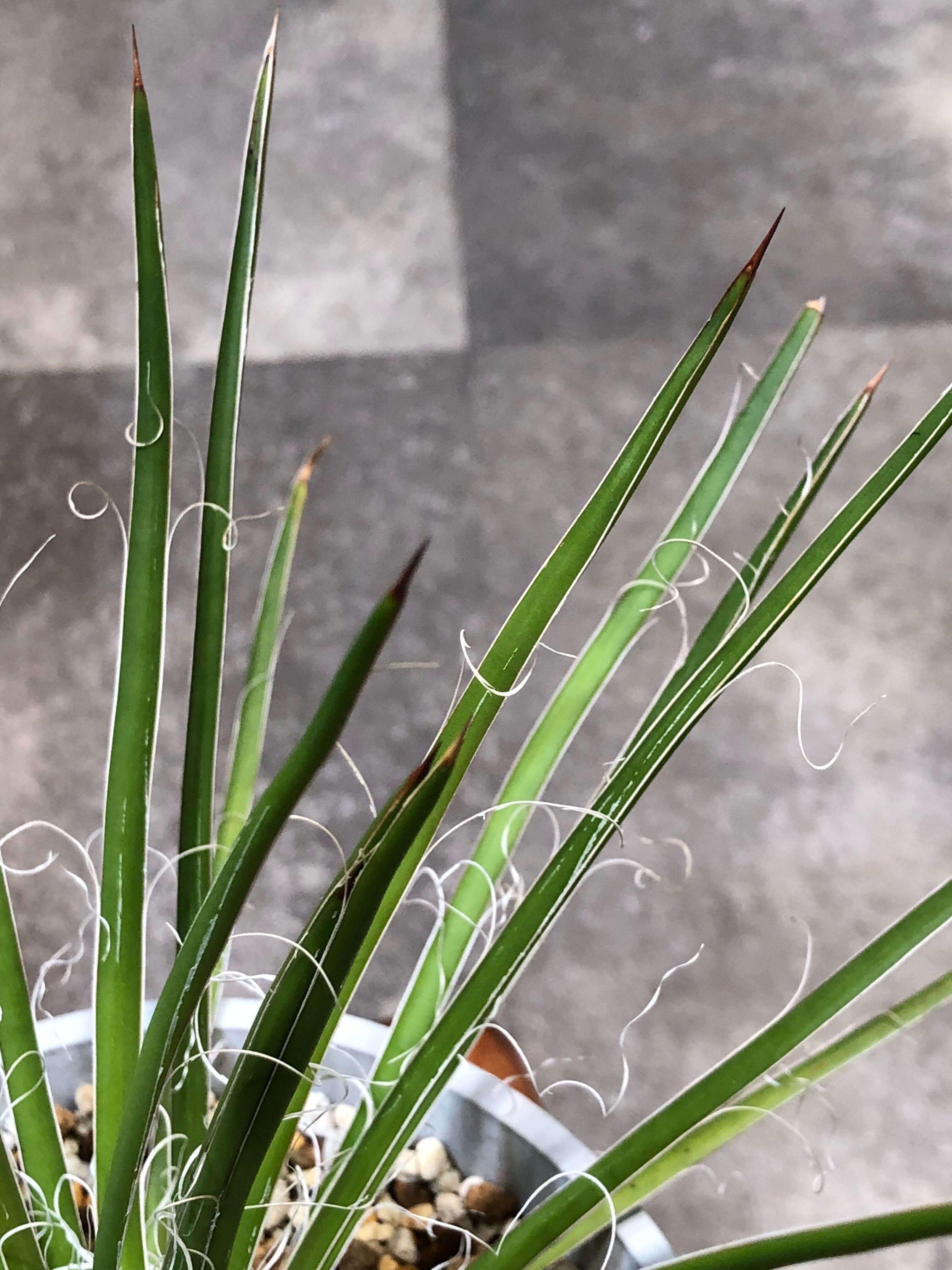 葉先は尖っていますが主張の強い鋸歯も無く、縁が剥がれて糸状にフィラメントをまとう姿が少し上品でもあります。