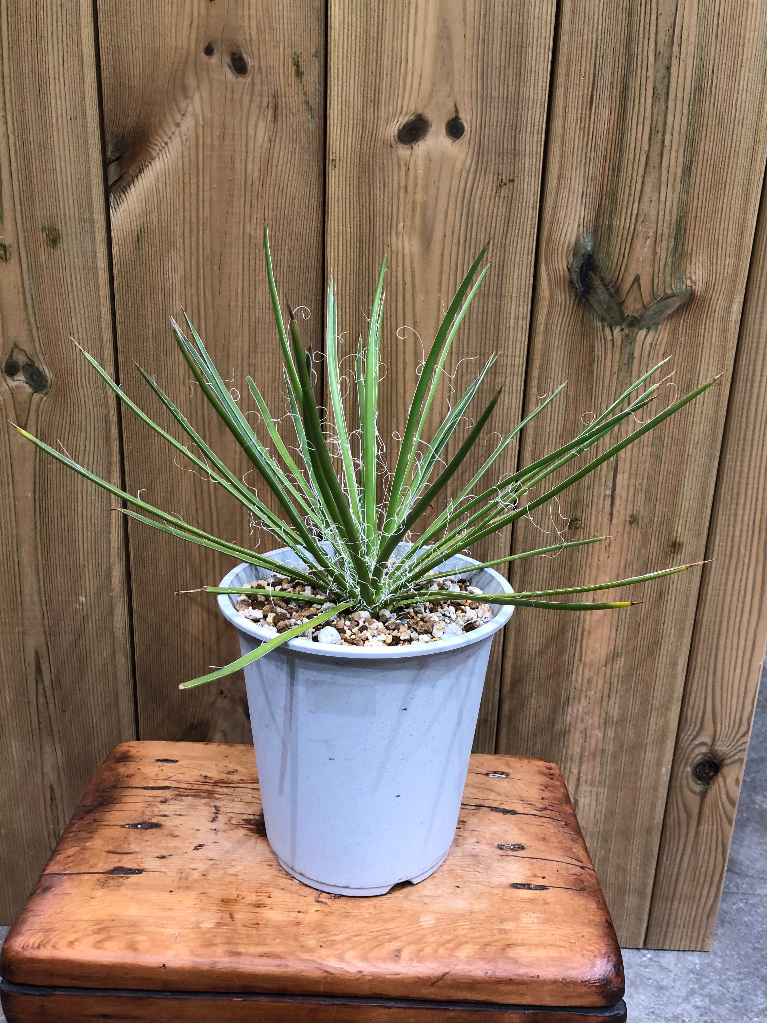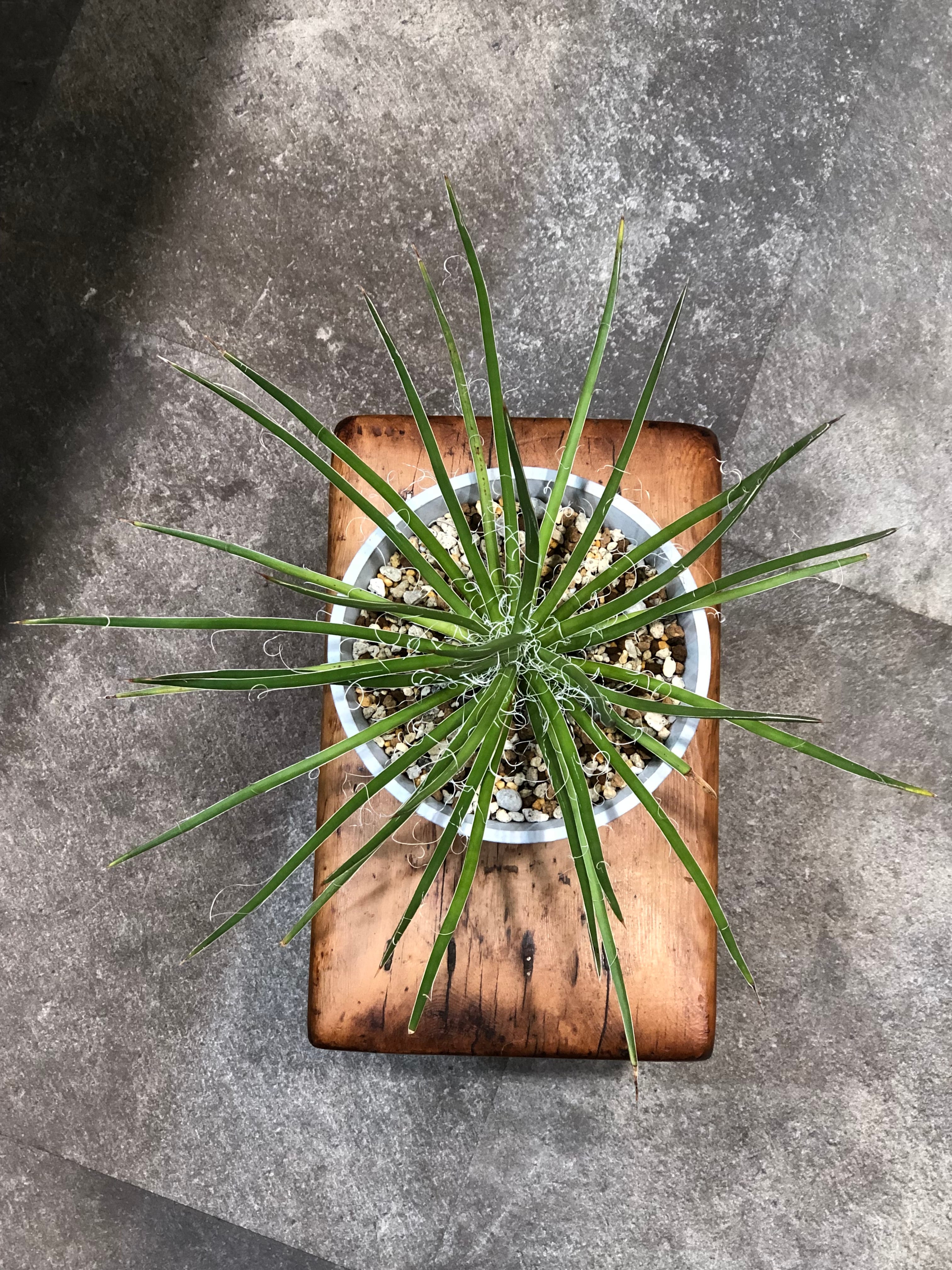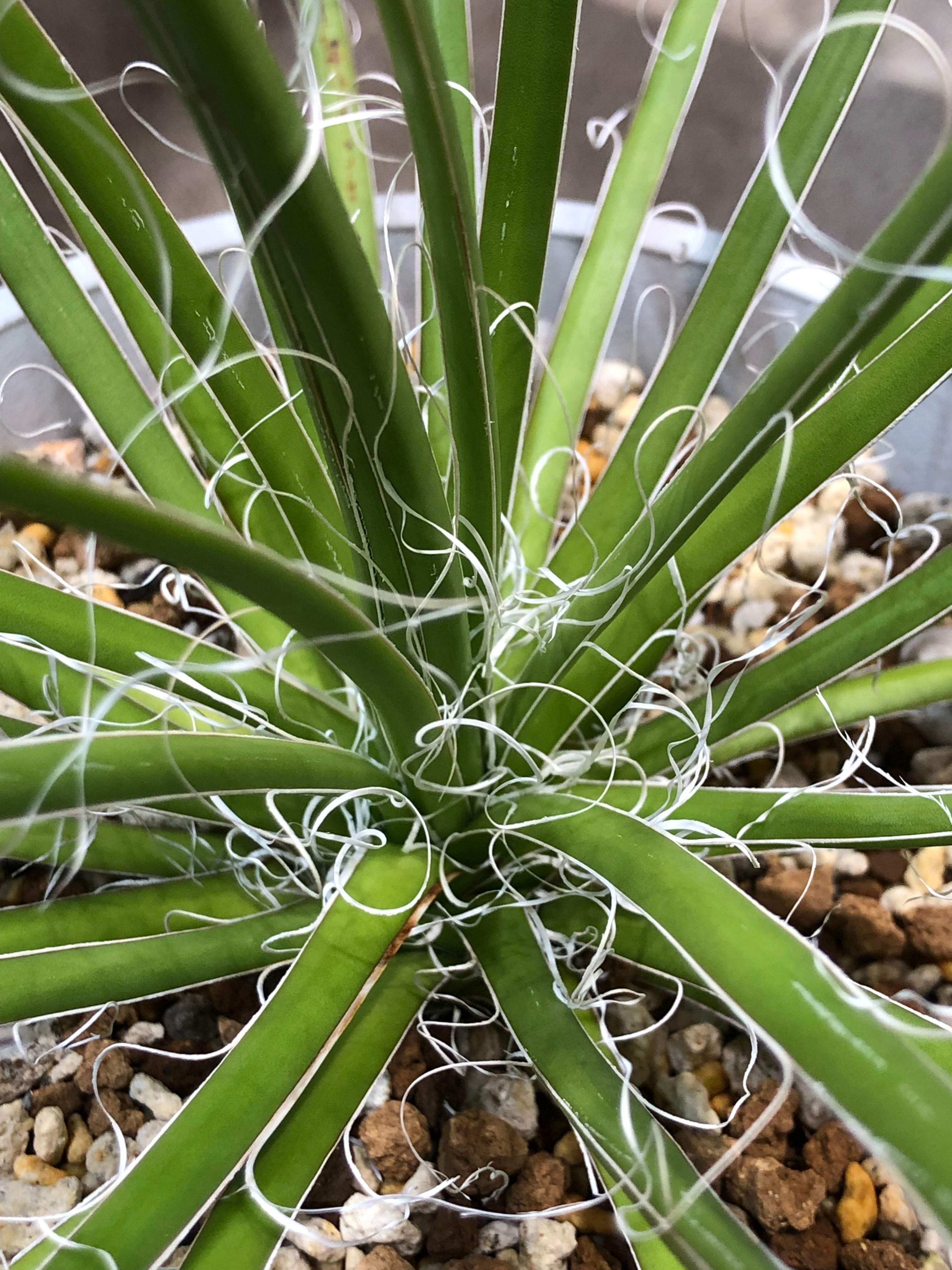 葉先は尖っていますが主張の強い鋸歯も無く、縁が剥がれて糸状にフィラメントをまとう姿が少し上品でもあります。