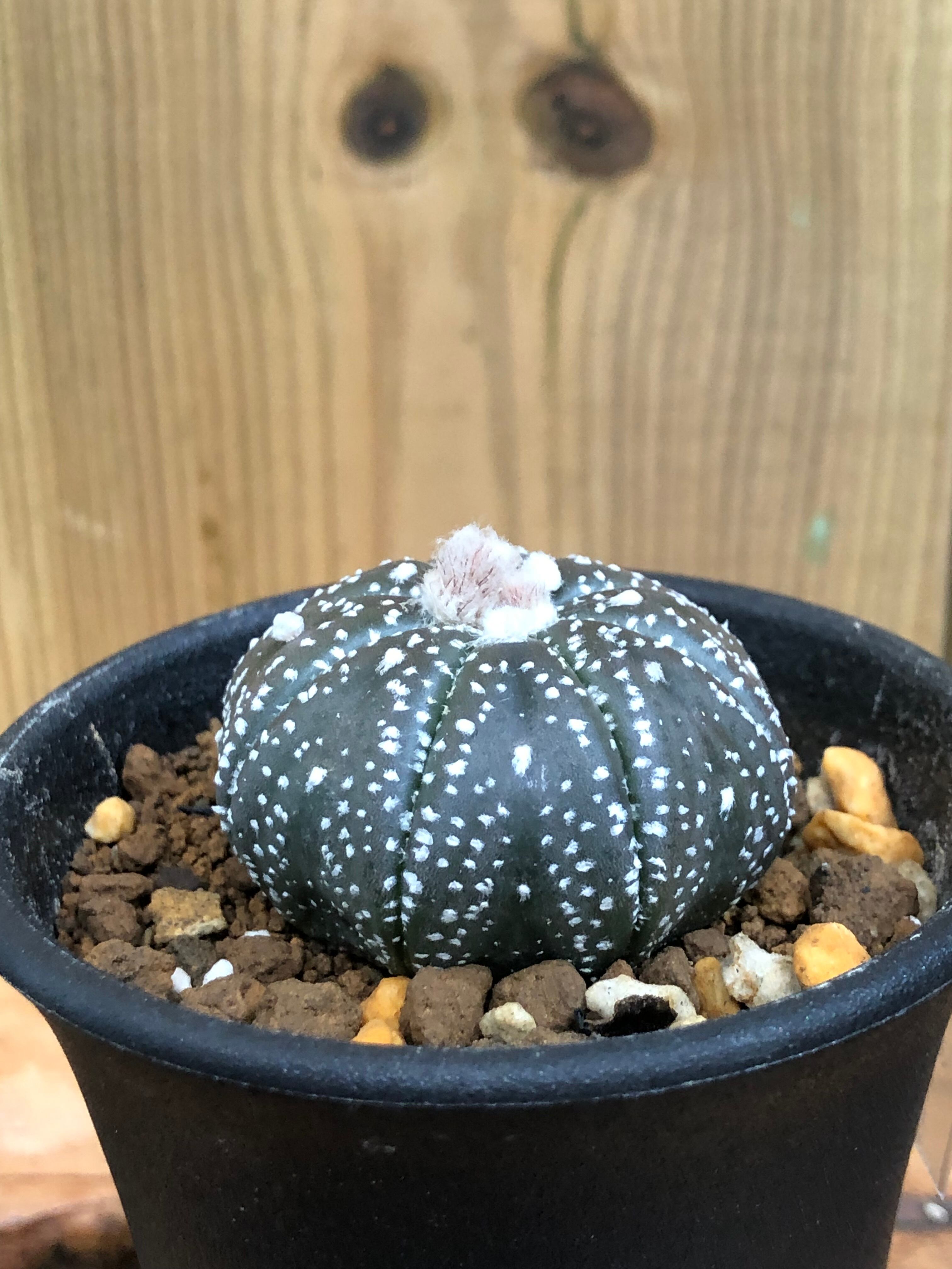 テキサス州〜メキシコが原産の棘の無いサボテンで、白い綿毛がポツリポツリとあります。