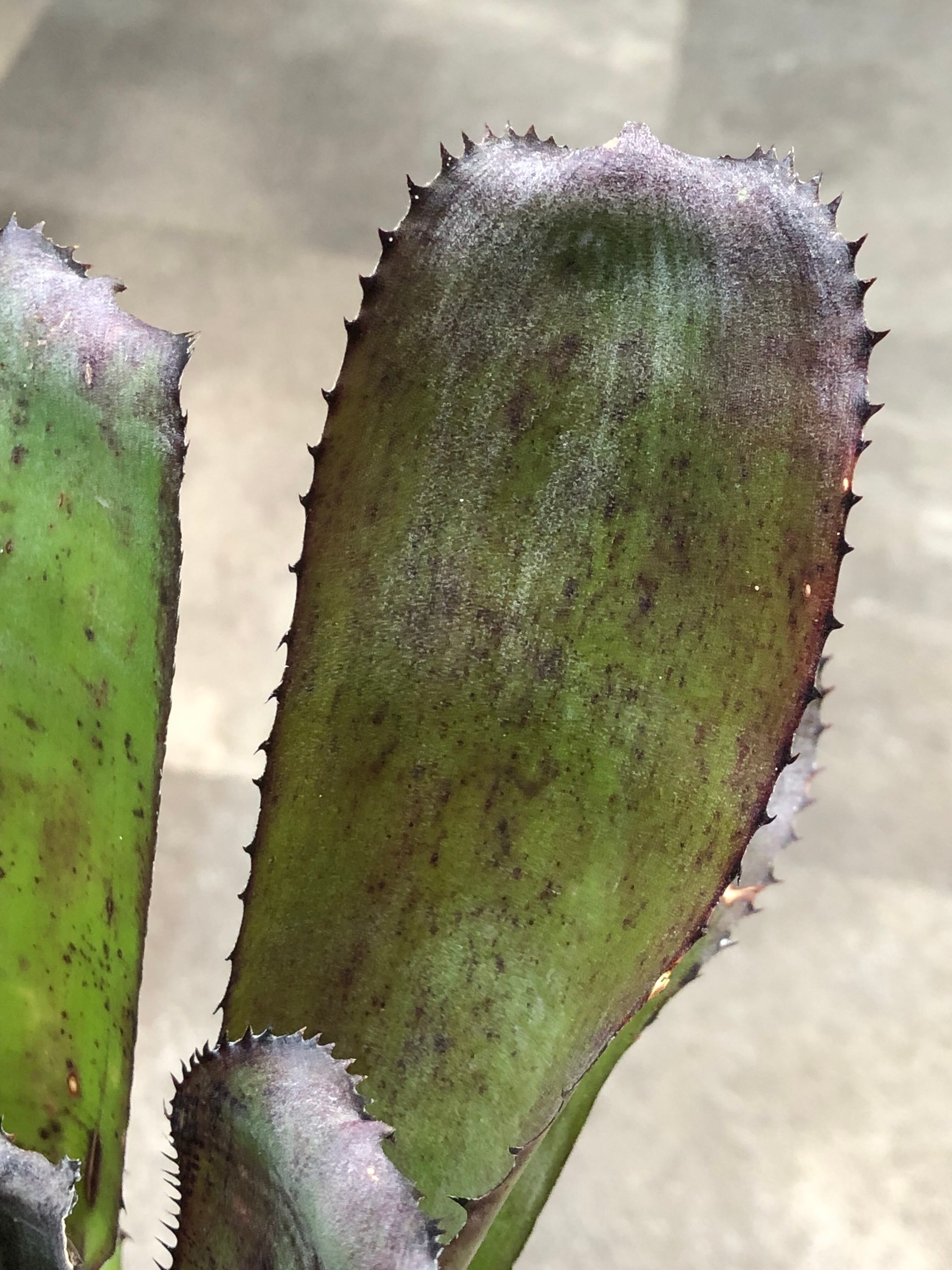 葉の縁の鋸歯はエクメアの様に鋭く主張は強めです。