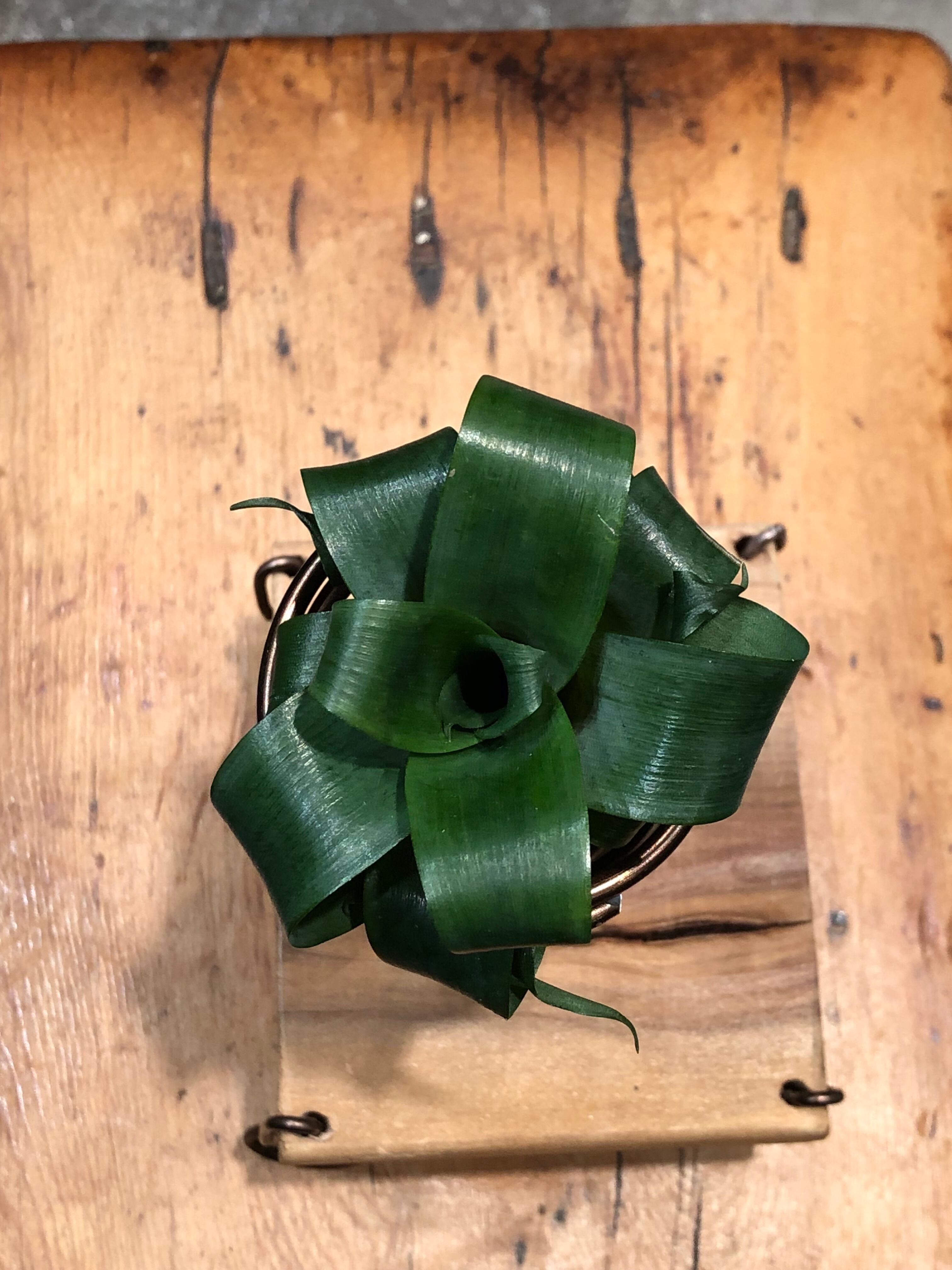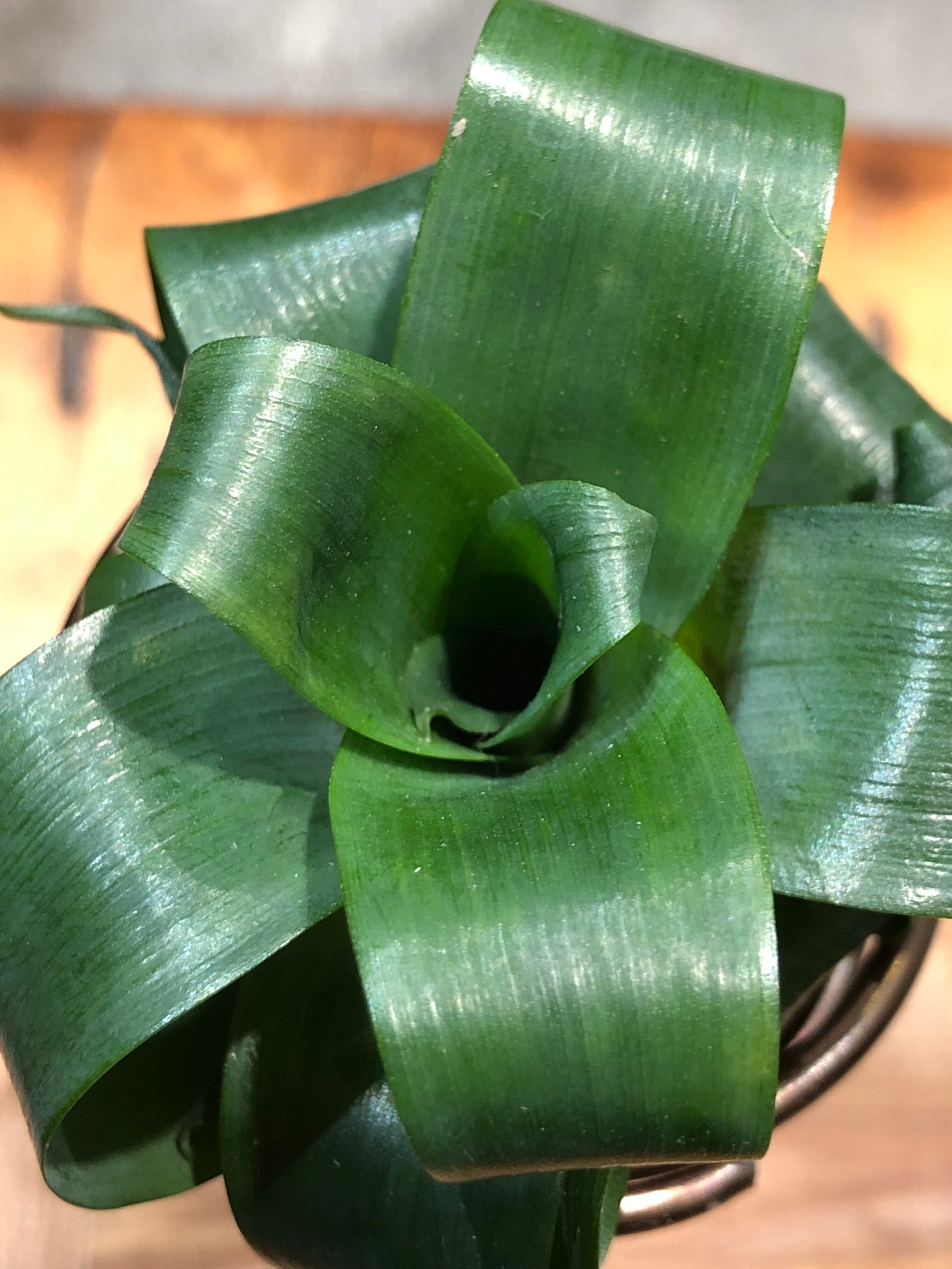 ブラジル原産の小型のタンクブロメリアで薄くて柔らかい葉をカールさせていますが、水遣り後はシャキッと伸びて草姿が変わる面白い品種です。