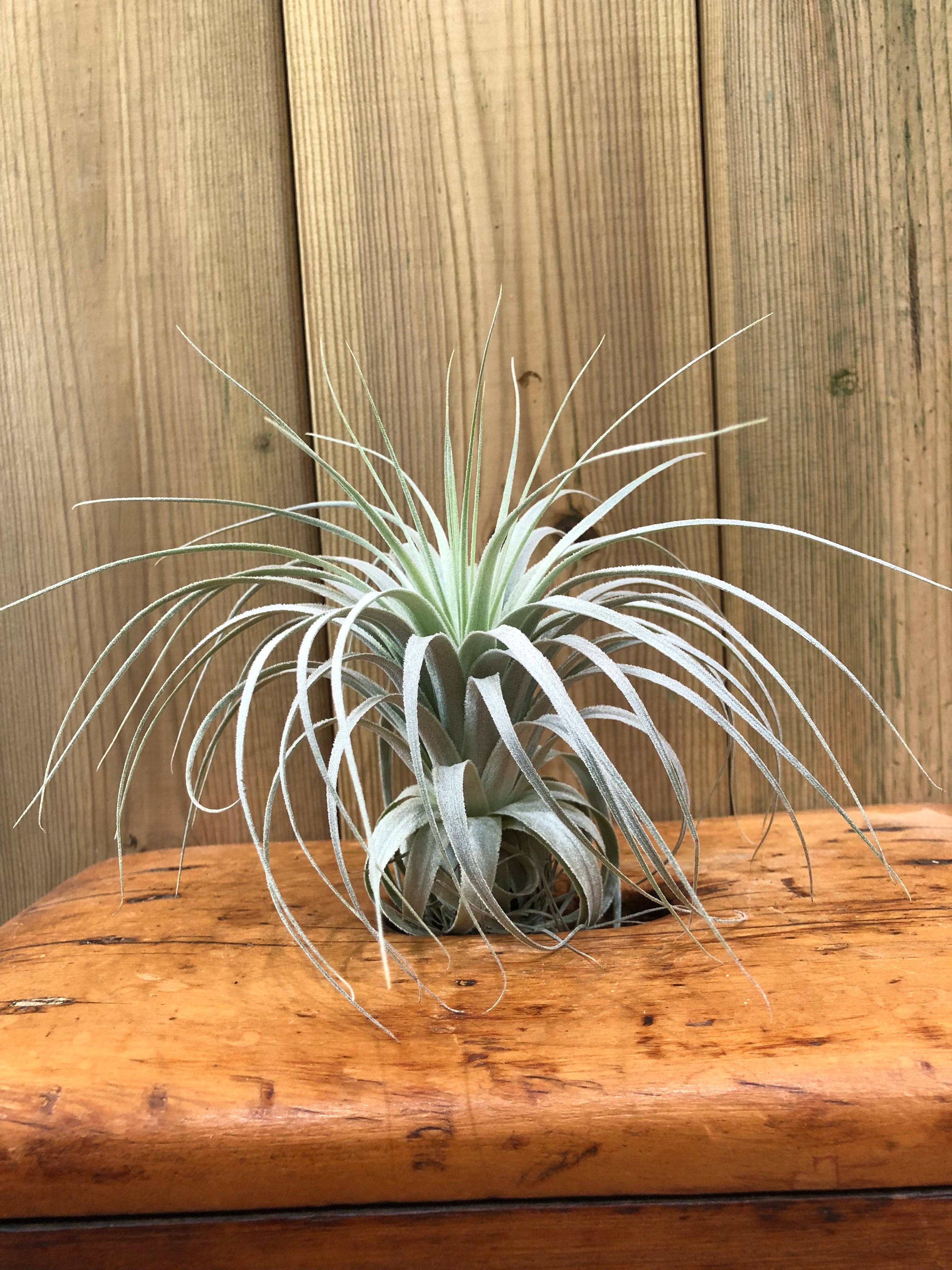 成長期の水遣りは屋外で真夏であれば、夕方以降の涼しくなってくる時間帯に株全体を濡らす様に1日置きか毎日でも問題ありません。水遣りは基本的に株全体が濡れるぐらいにあげます。風通しが良ければ蒸れの心配も無いので出来る限り風通しを意識します。冬は屋内管理にして、週に1回〜3回ぐらいの水遣りにします。屋内の場合は水遣り後に水は逆さにして完全に切った状態にしてから元の位置に戻します。出来ればサーキュレーター等で軽く風を当ててあげると蒸れにくく管理しやすいです。エアープランツのエアーは風が必要なエアーだという認識で管理します。