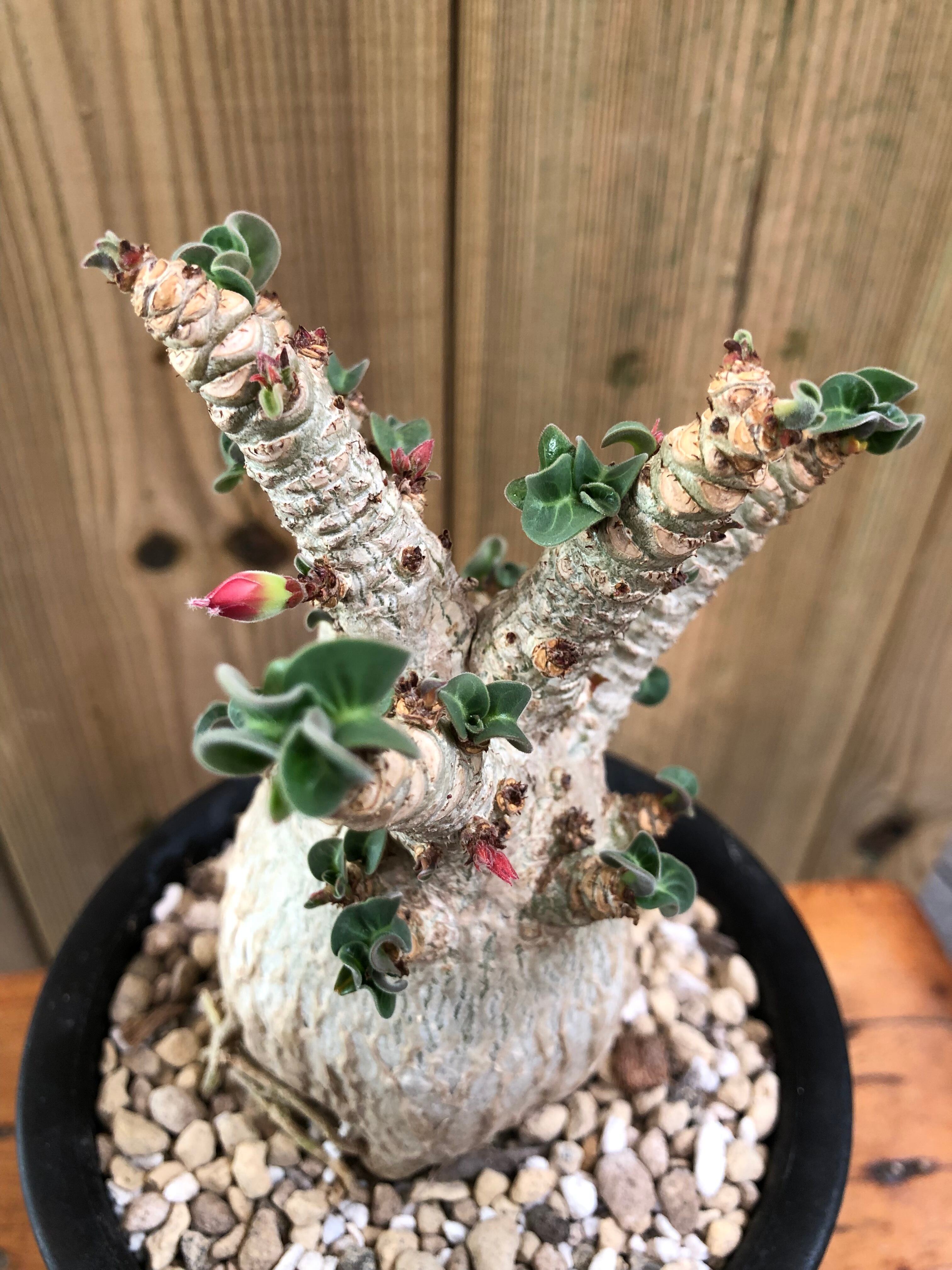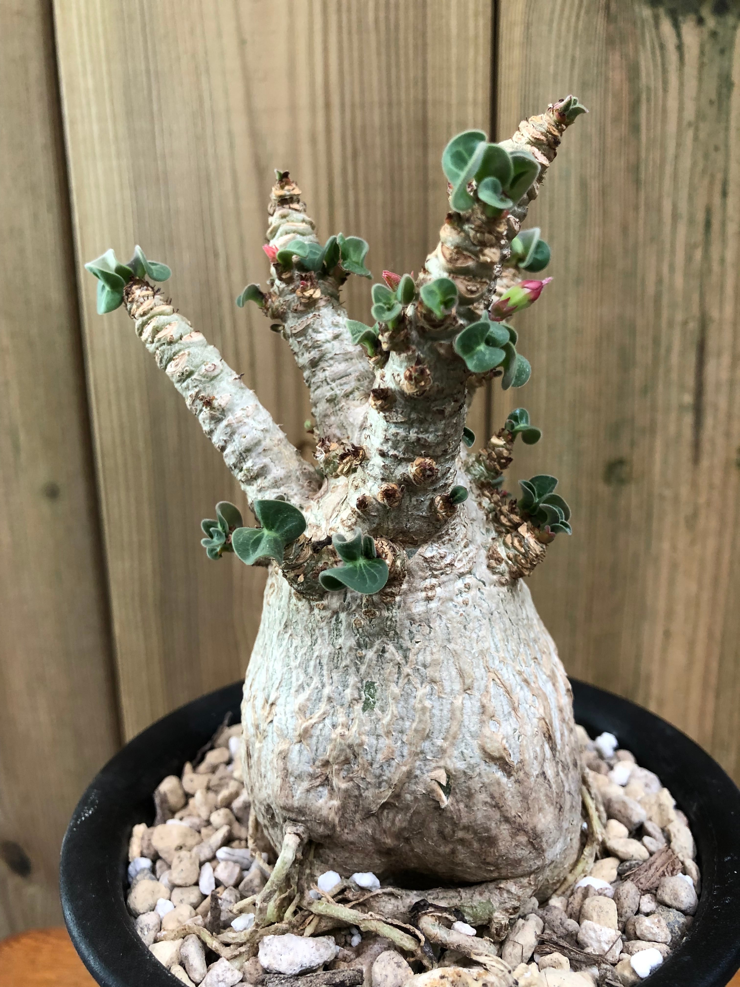 アラビア半島原産のアデニウムの獅子葉です。獅子葉とは葉がカールしているもので、海外では羊のツノの様に見える事から、ドーセット・ホーン・アデニウム(DHA)と呼ばれています。