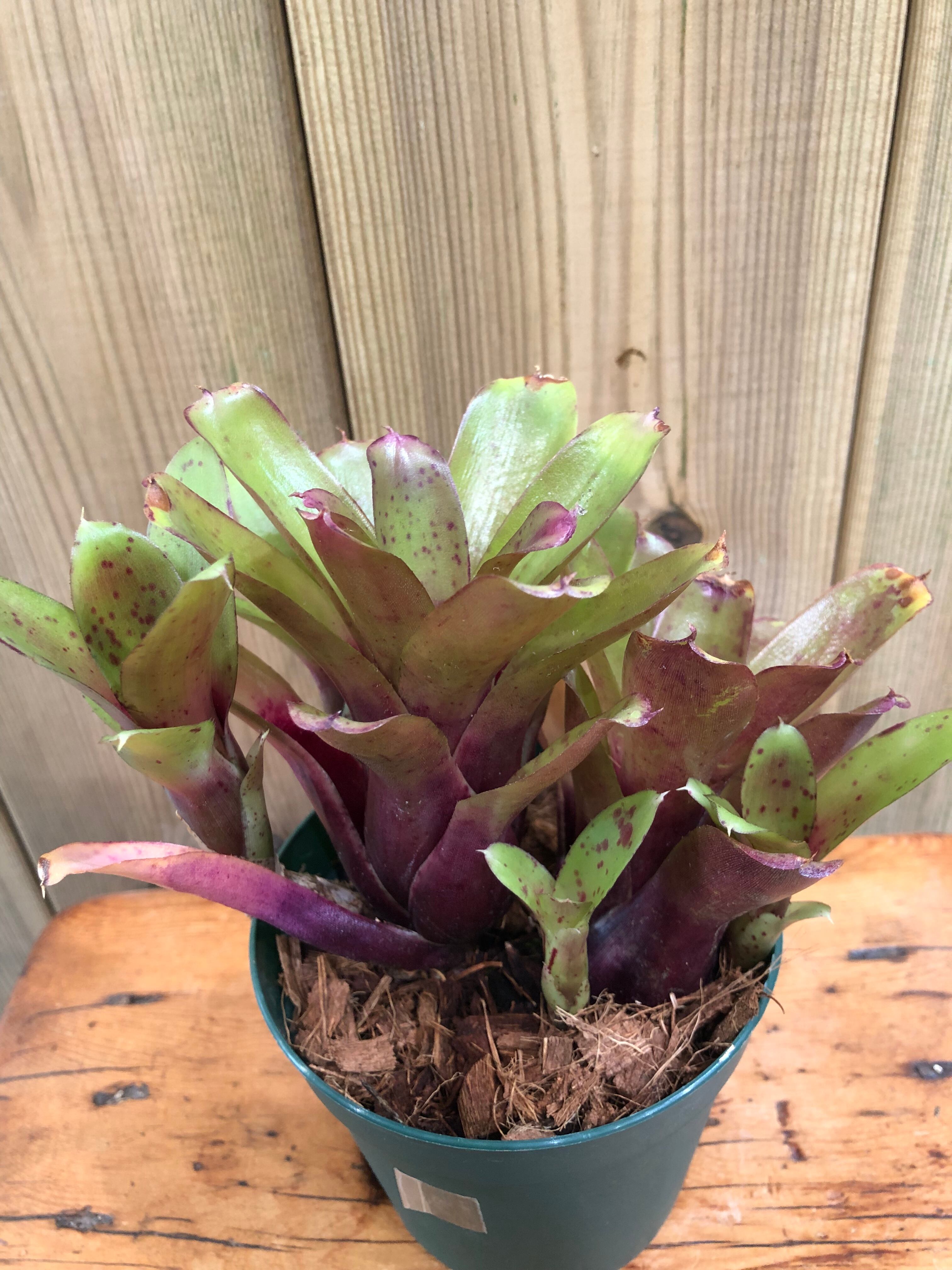 南米原産の群生しやすい小型の品種です。薄いグリーンの葉に赤茶色のスポットが入っており、ランナーで子株を増やします。