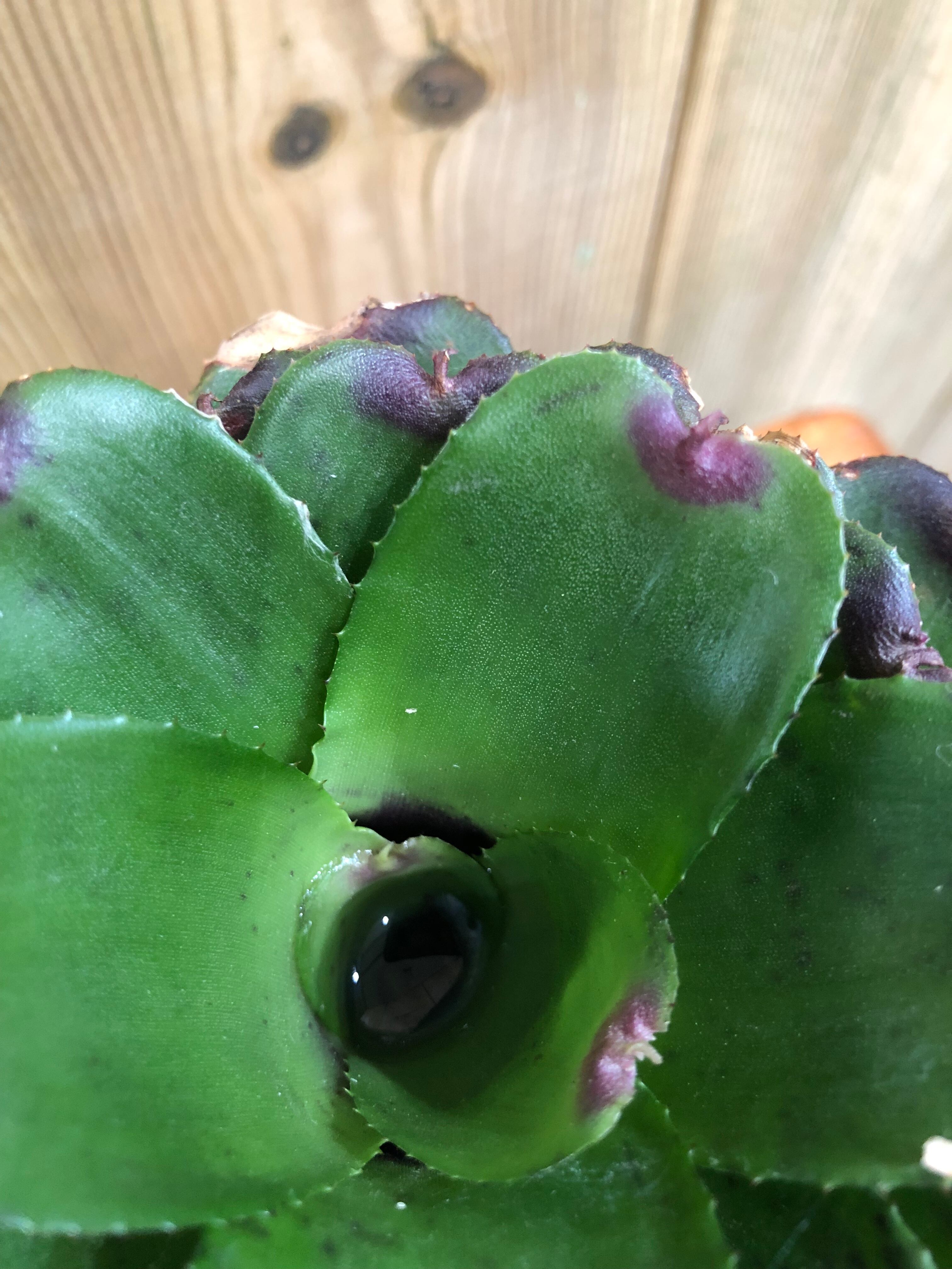 ネオレゲリア・フーズベイビーとネオレゲリア・プンクタティッシマの交配種で、小型で葉が短くギュッと詰まった可愛いらしい株姿です。葉先は赤く葉自体に所々赤いスポットが入ります。