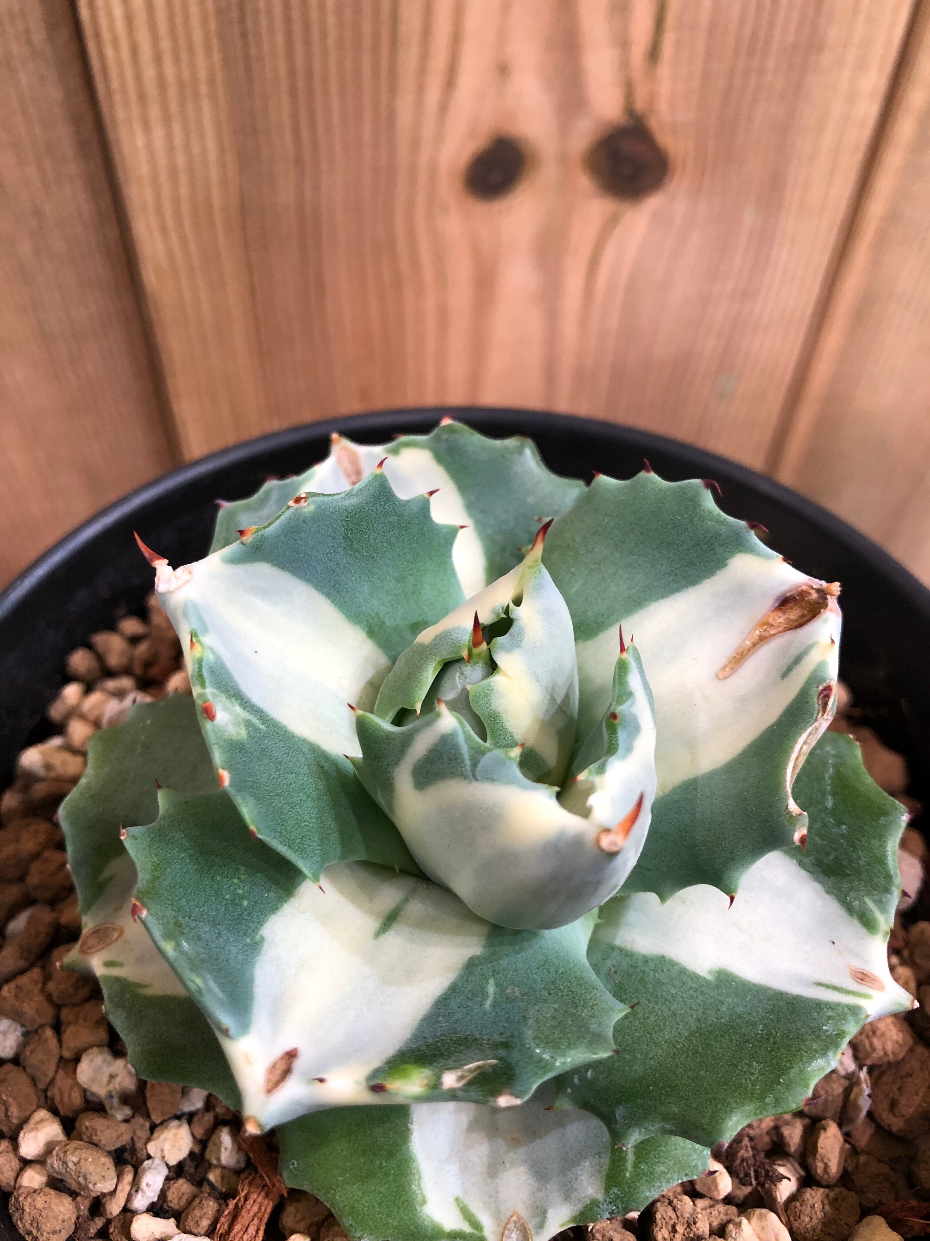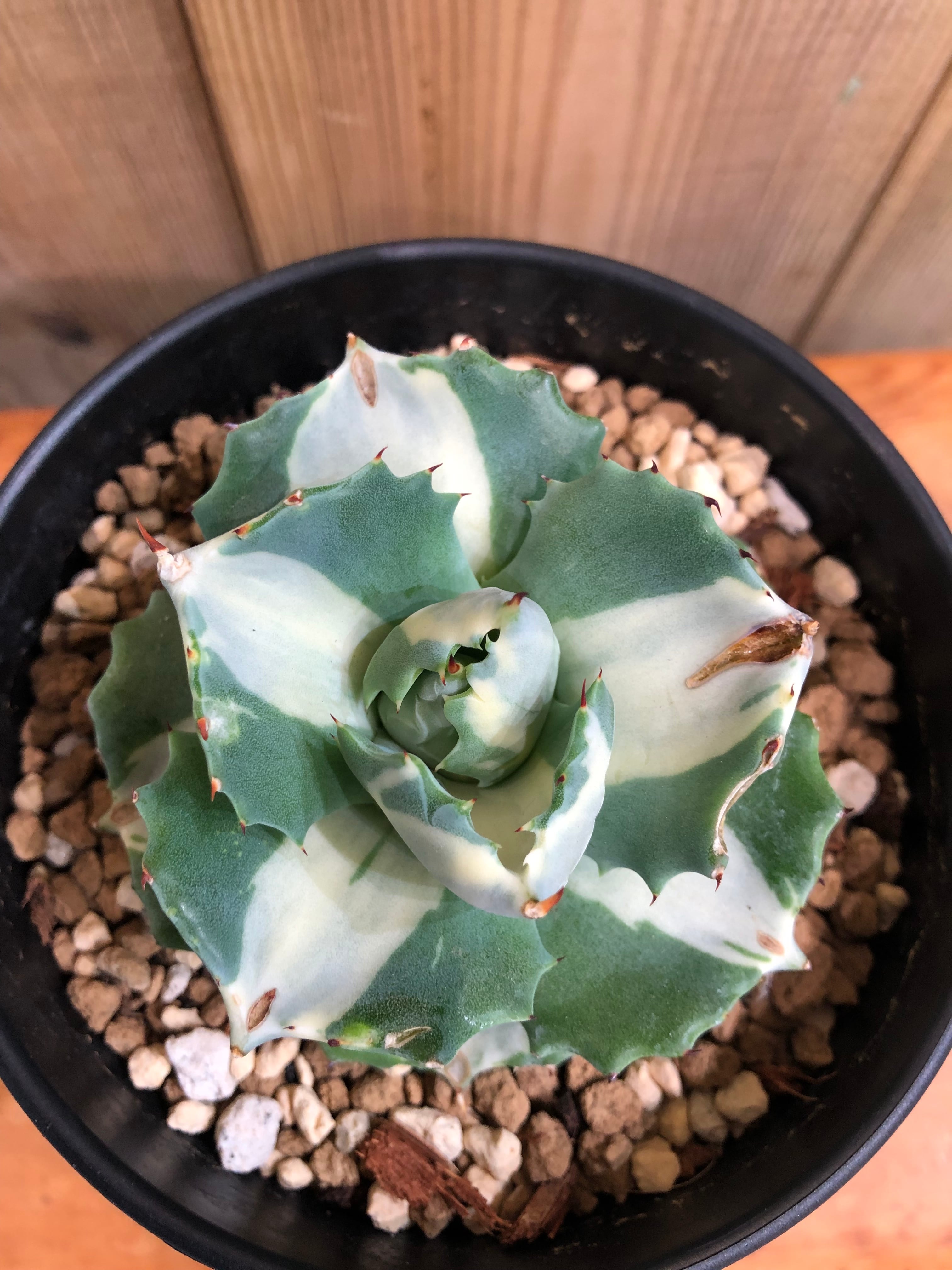 メキシコ原産の可愛い系のアガベです。雷神と違いあまり大きくならずコンパクトで子吹きが多くみられます。