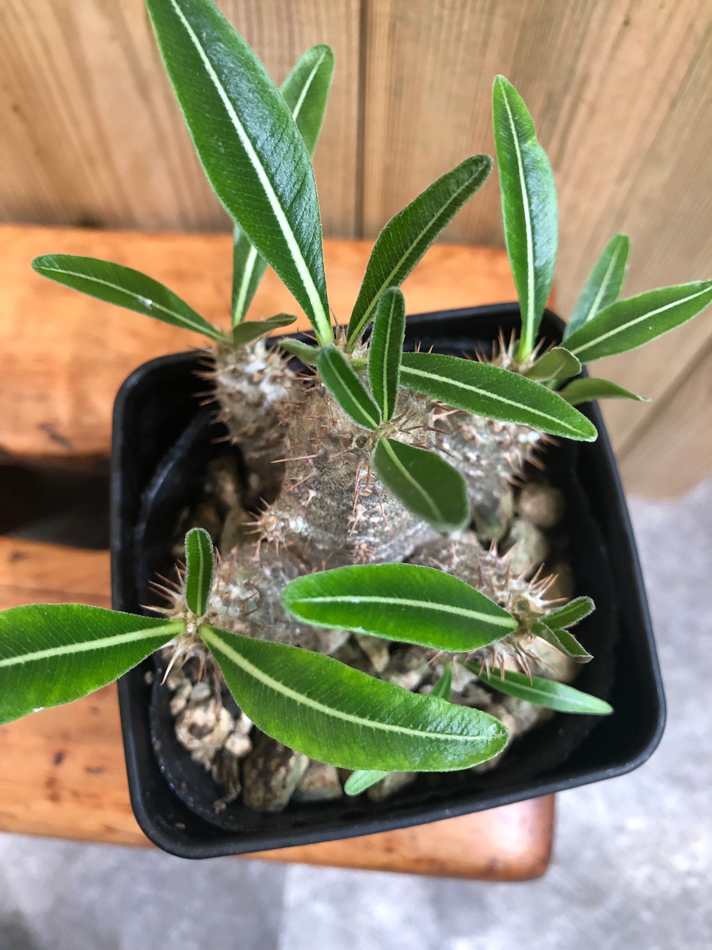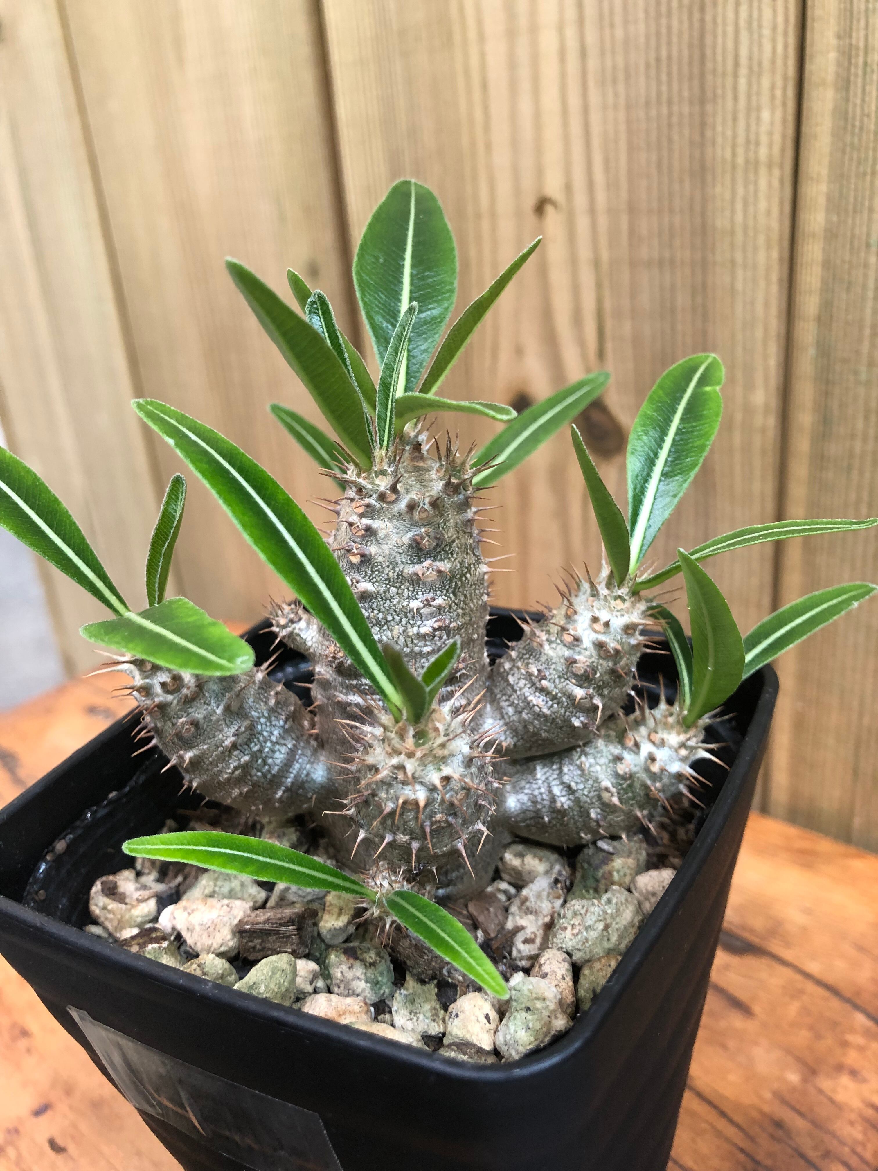 マダガスカル原産の夏型塊根植物で、赤茶色の幹肌に育ちます。グラキリスに比べて塊根部が少し四角く育ちます。春先に黄色い花を咲かせます。