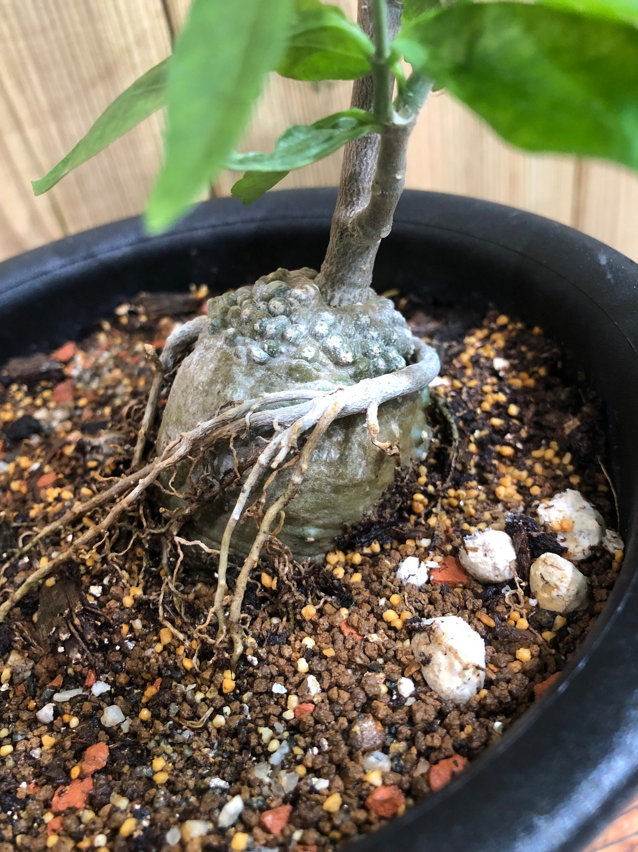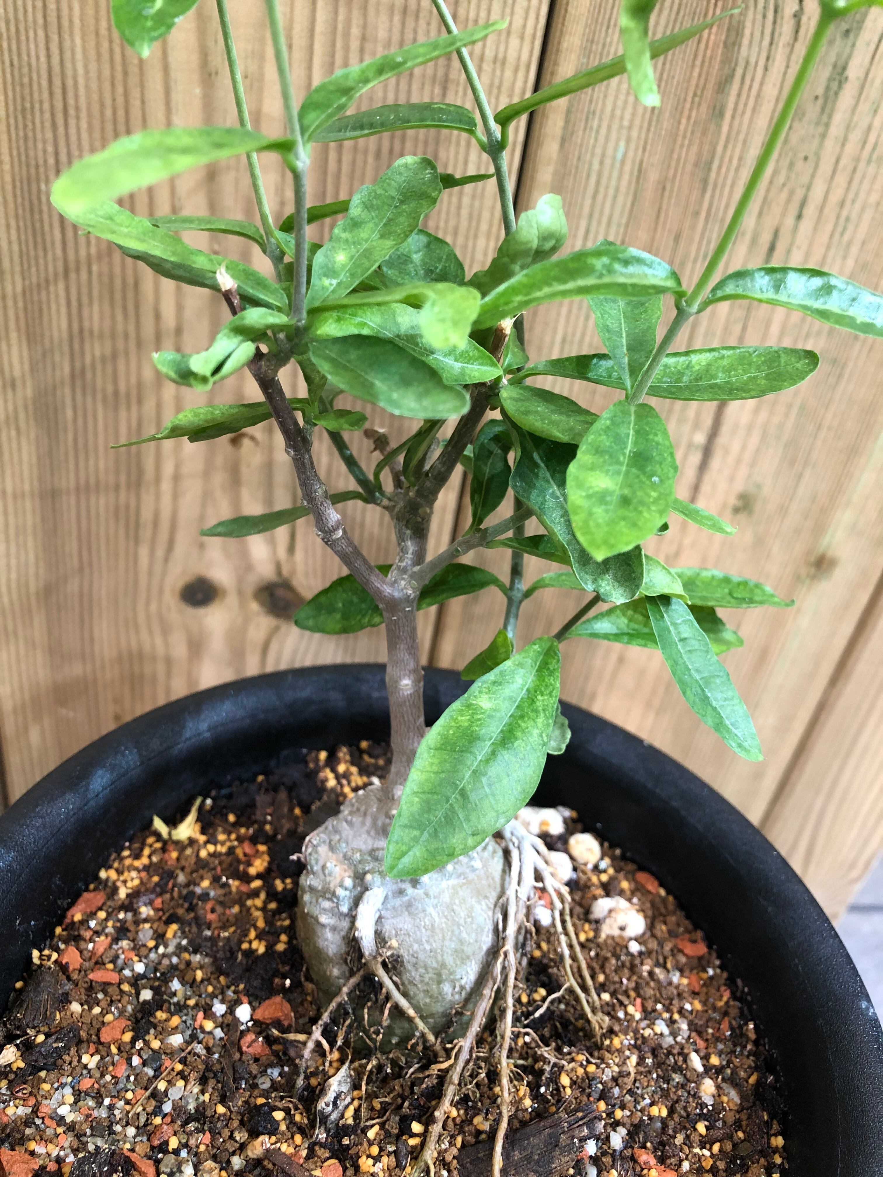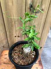 南アフリカ原産の夏型塊根植物で火星人という面白い和名がつけられています。塊根植物の中でもかなりメジャーな品種ですので知っている方も多いと思います。性質はかなり強健で育て易い品種になります。表皮がゴツゴツとした塊根から蔓を伸ばしますが周囲に絡み付くというよりは長くなると自重で垂れ下がって伸びていきます。