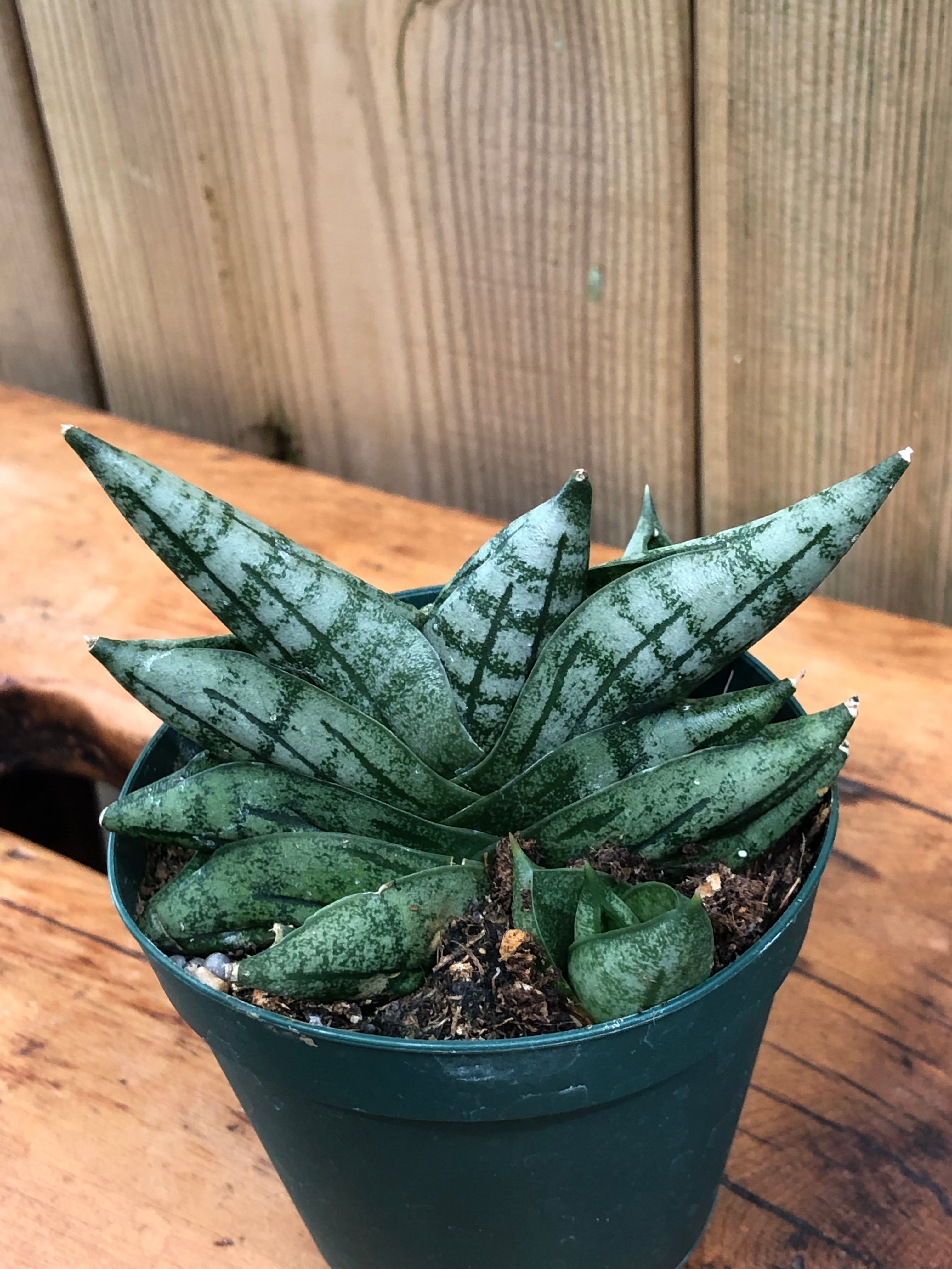 アフリカ原産のボンセレンシスの矮性タイプです。葉は太短くて硬く、縞模様が入っています。子株をよく出し群生します。性質は丈夫で育て易い品種になります。陽当たりの悪い場所に置くと徒長しやすいので陽当たりの良い場所に置きます。