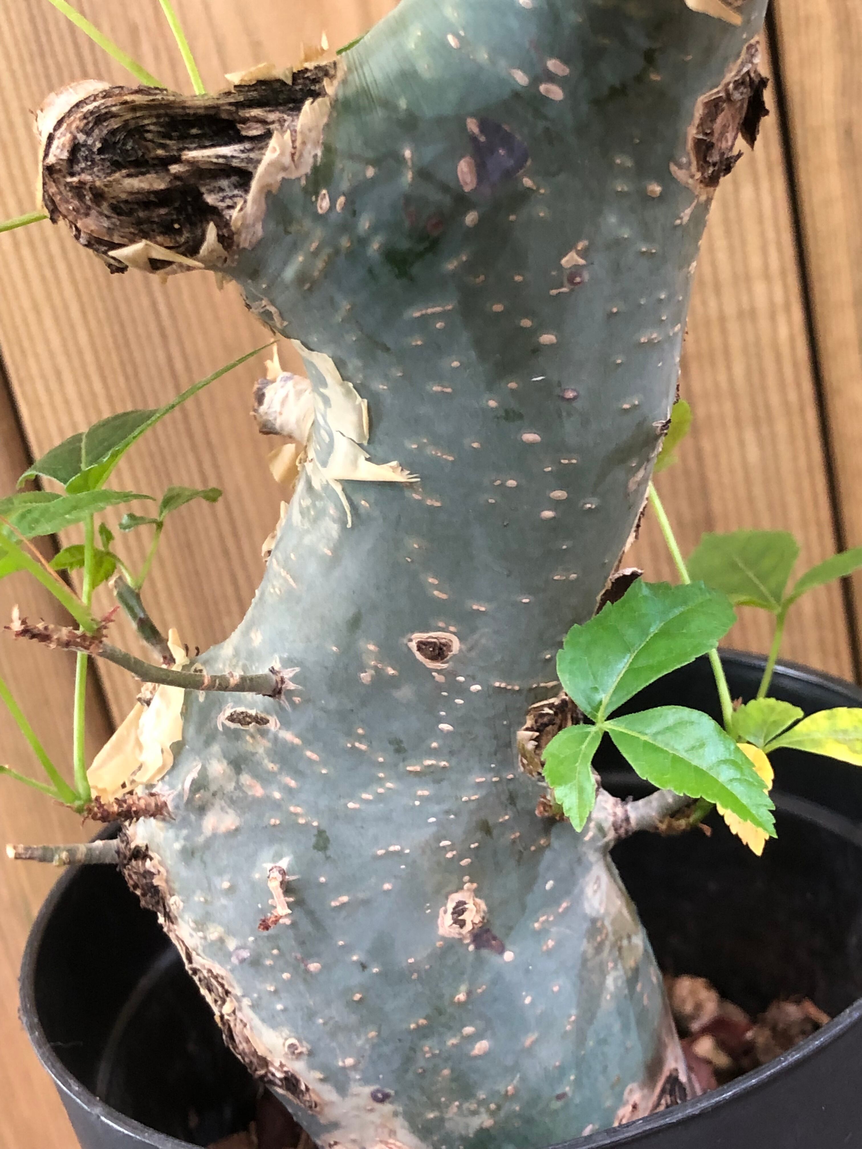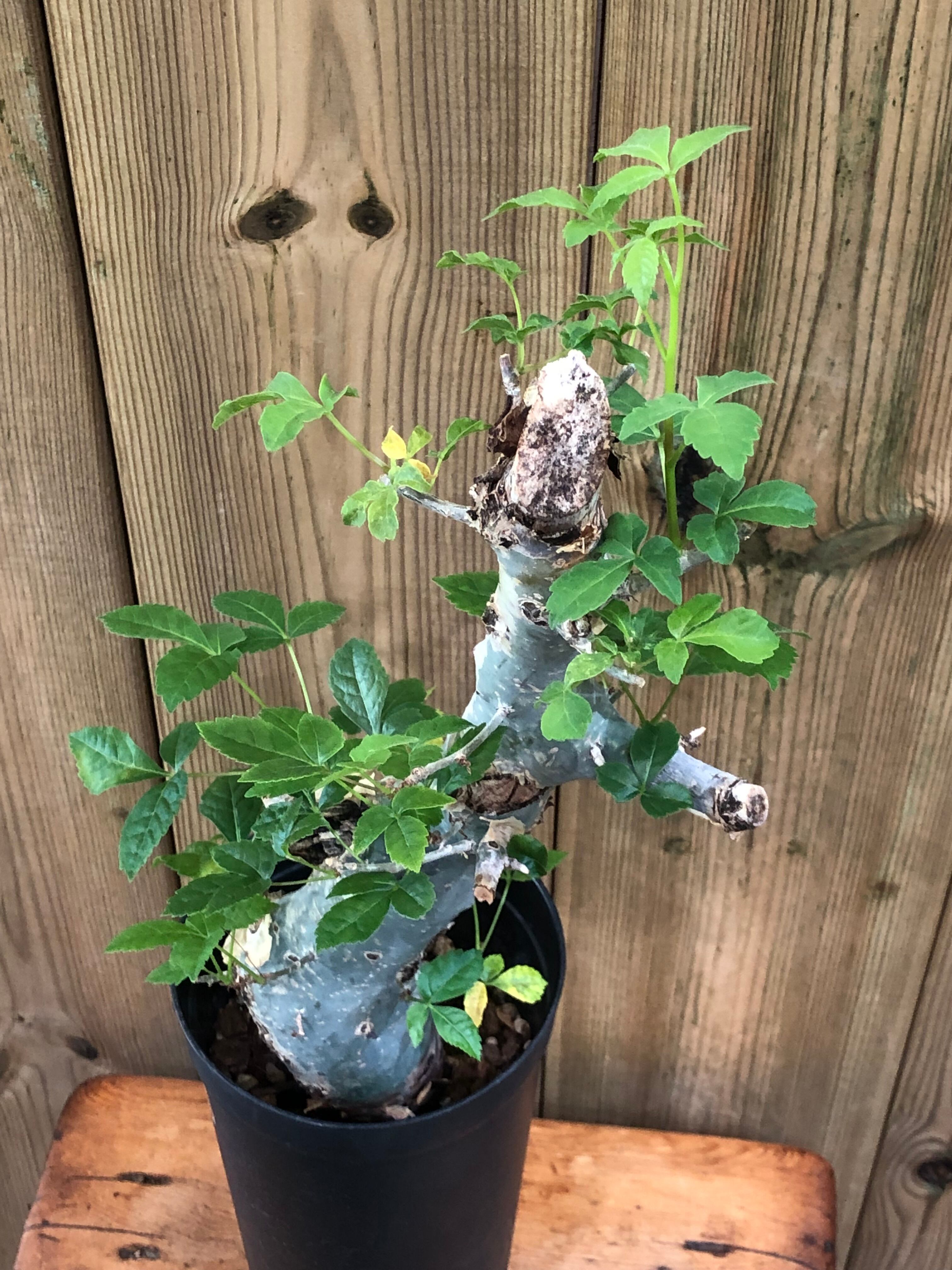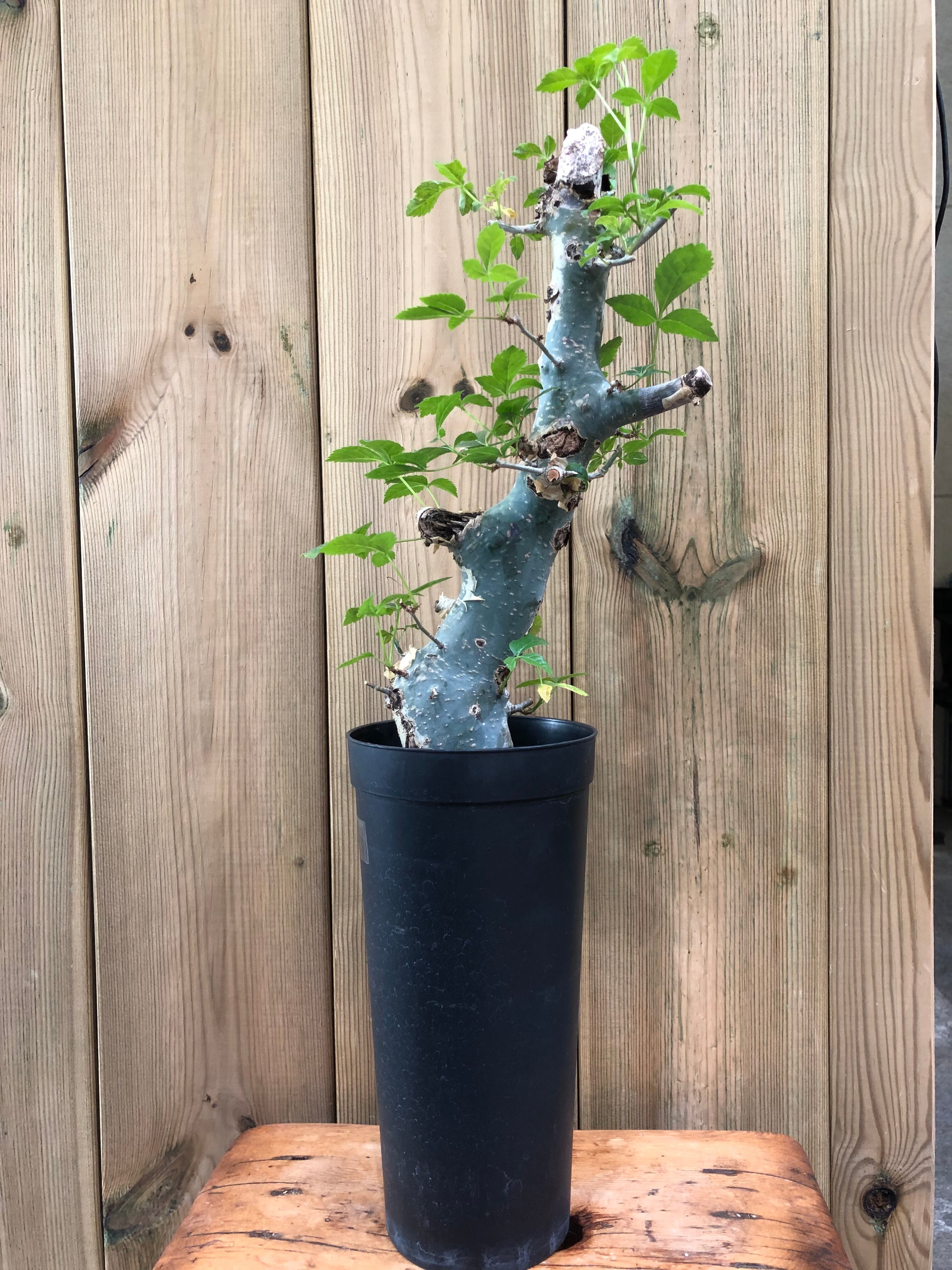 ソマリア原産の灌木系植物です。幹の表皮が成長とともに剥がれ落ちていき独特の模様になっています。葉は薄く、塊根植物の様に水を溜め込む機能がない為、水切れに注意します。水を切らすと葉がポロポロと落葉していきます。