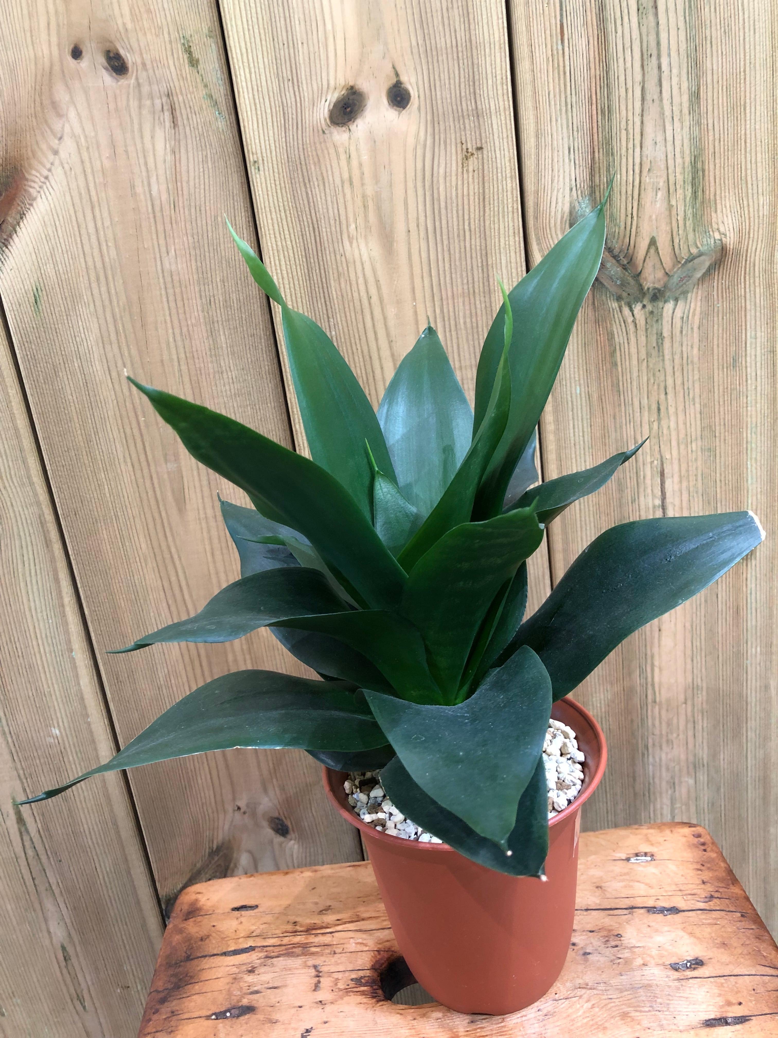 アフリカ原産の丈夫な品種でローレンティーやゼラニカ等と並び、有名な品種です。葉は肉厚で弾力があり少しうねり気味でローレンティーの様に上に伸びずにロゼット形に成長します。成長はサンスベリアの中では速い方ですので動きはよく見てとれます。